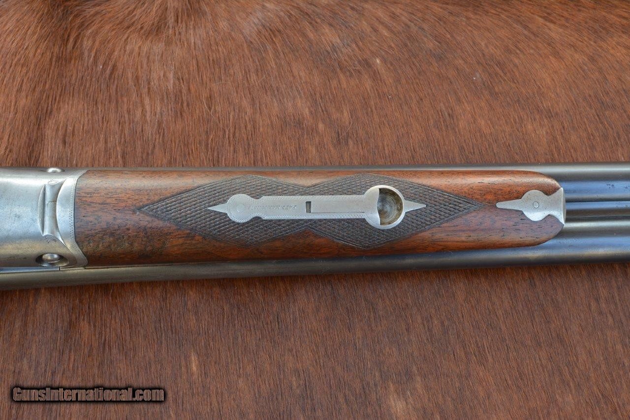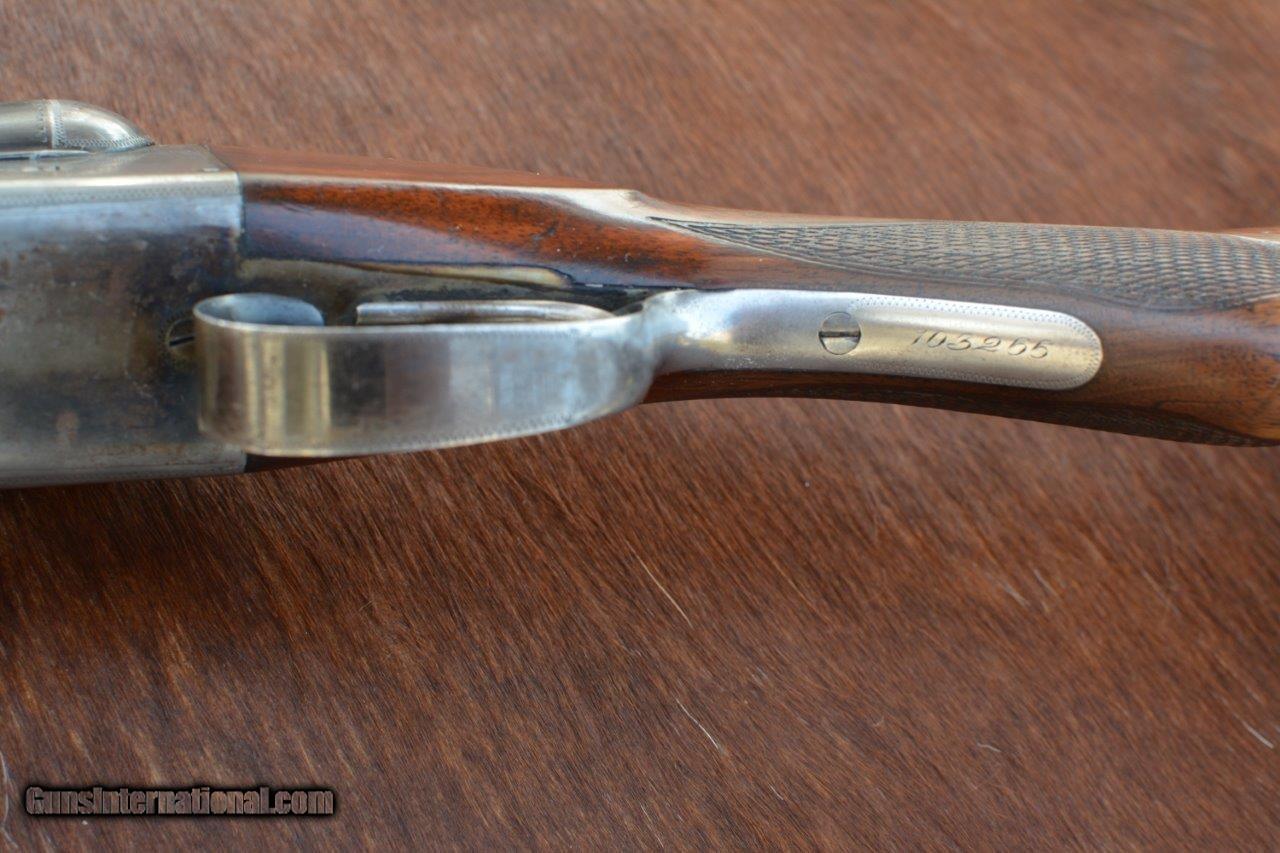 Description: Amazing VH 12g with rare ball grip (very rare on a 12g and a favorite feature of mine on a Parker). This is a nice all original gun. It shoots lights out and anyone would be proud to carry it. $1,950 1901 VH 12g Parker specs 30” Barrels 2 Frame Chambers 2 5/8 Trigger – Double 14 ¼ Drop at comb 1 ½ “ Drop at heel 2 ½ “ Chokes R .024 L .040 Bore R .732” L .732” Barrel Wall Thickness (At thinnest point near muzzle) R .025 L .027 Weight 7 lbs. 9 oz. SOLD Shotgun Gauge: 12 Gauge Manufacturer: Parker Model: VH |