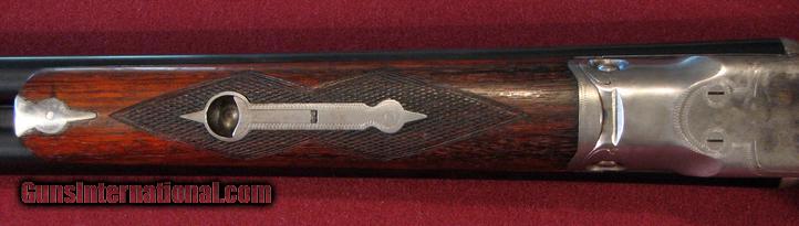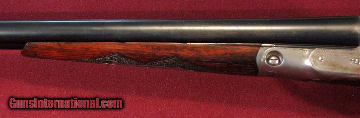 Description: Parker VH Grade 12 gauge with #1 1/2 frame and 30" extractor Vulcan Steel barrels with excellent bores measuring .731 both right and left. Manufactured in 1928. Choked M/M measuring .022 on the right and .026 on the left. Original barrel blue remains at 96% Receiver mostly silver with traces of case colors. Screws are untouched and properly oriented. Pistol grip stock with Parker logo grip cap. 13 1/2" LOP to DHBP. DAC-1 5/8" DAH-25/8" Original stock finish and checkering remain at 80% 7lb 8oz This gun is tight and on face. Barrels ring like a chime. A very nice Parker for collecting or shooting. SOLD |