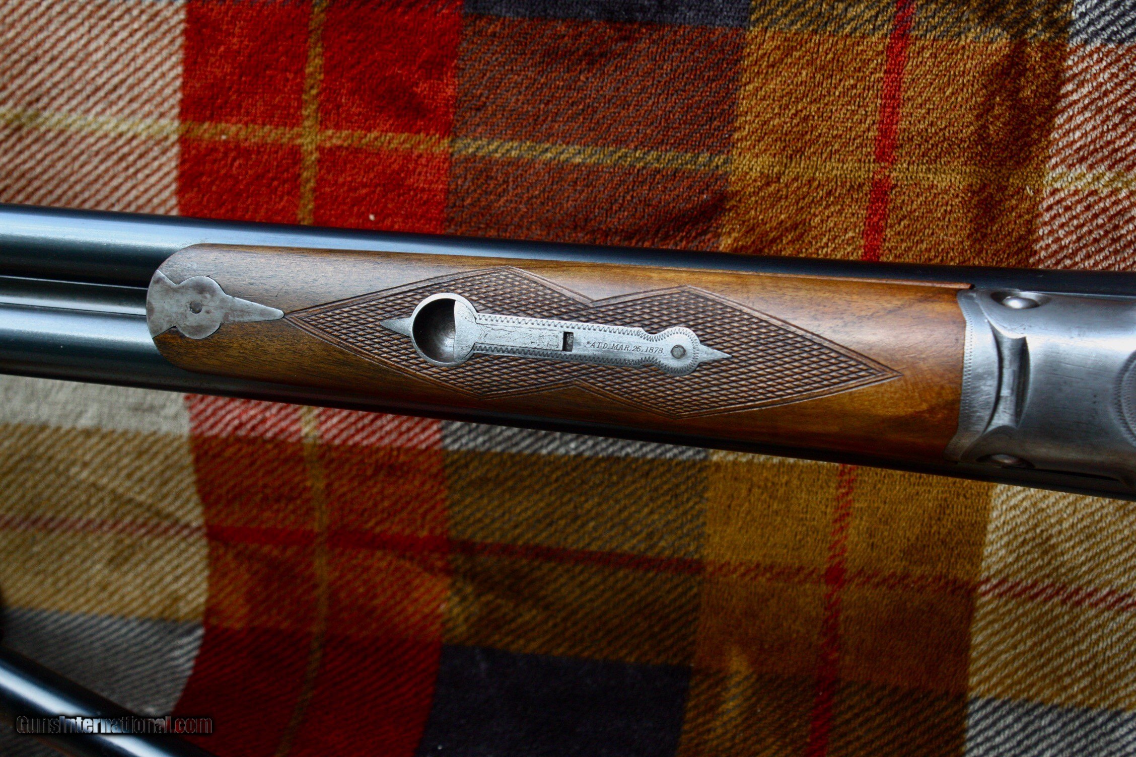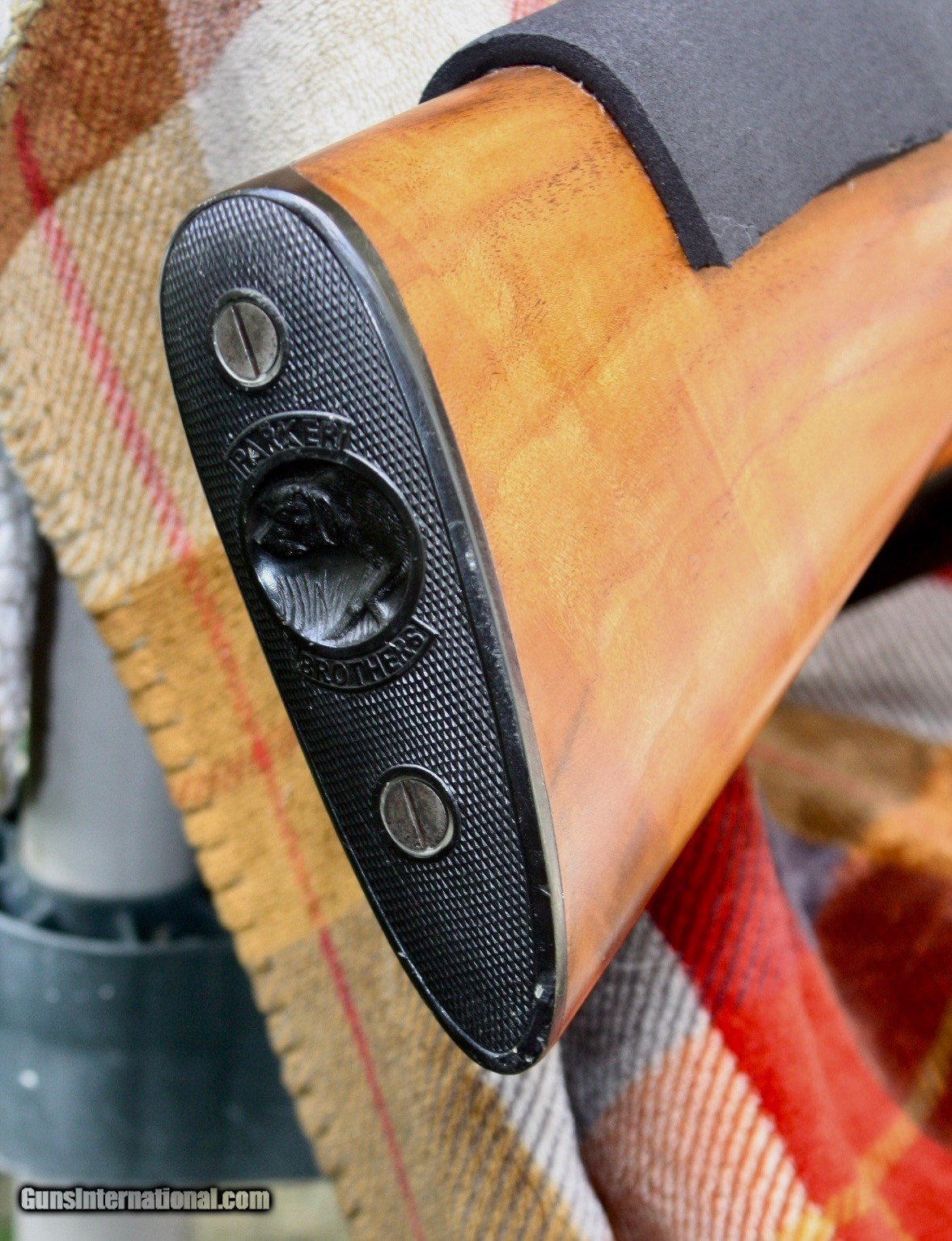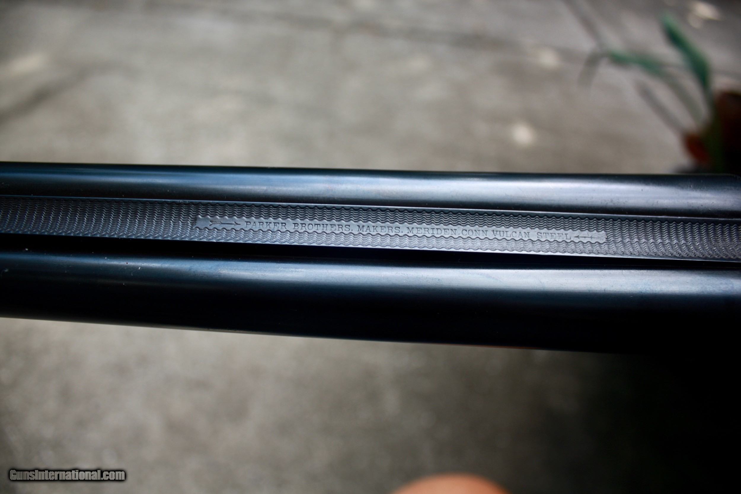 Description: PARKER BROS 12 GAUGE VH IN EXCELLENT CONDITION. GUN WAS BUILT IN 1903 SHOWS LIGHT CASE COLORS LOCKS UP LIKE SWISS VAULT BARRELS ARE 30 INCH FULL AND EXTRA FULL WITH VERY GOOD BLUEING STAMPED PARKER BROS MERIDEN CONN VULCAN STEEL SEE PICTURES. THE BORES ARE EXCELLENT NO DENTS,RUST OR PITTING. THE WOOD IS SOUND WITH NO CRACKS OR DAMAGE LOP 14 1/4 WITH DOGS HEAD BUTTPLATE AND PARKER GRIP CAP. THIS IS A GREAT EXAMPLE OF A CLASSIC PARKER IN EXCELLENT CONDITION. VH GRADE GUNS ARE EXTREAMLY HARD TO FIND IN THIS CONDITION TODAY NICE ENOUGH TO BE PROUD OF BUT NOT TOO NICE TO SHOOT SOLD Manufacturer: PARKER Model: VH Serial Number: 119197 Barrel Length: 30 Bore: FULL & X FULL Chambers: 23/4 Ejectors: NO Condition: EXCELLENT Metal Condition: EXCELLENT Wood Condition: EXCELLENT Bore Condition: EXCELLENT Barrels: VULCAN STEEL Triggers: DOUBLE Manufacture Date: 1903 Choke Left: 45 Choke Right: 40 |