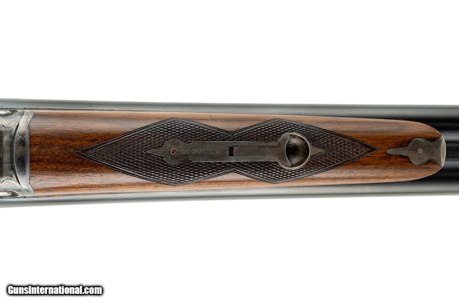 Description: #2 FRAME #178XXX 28" (.021 AND .043) 2 3/4" CHAMBERS DOUBLE TRIGGER EXTRACTORS SPLINTER FOREARM PISTOL GRIP EXCELLENT ORIGINAL CONDITION WITH SOME LIGHT HANDLING MARKS DOGS HEAD BUTT PLATE 7LBS 6 OZ 2 3/8" DAH 1 1/2" DAC 14 5/16" LOP SOLD |