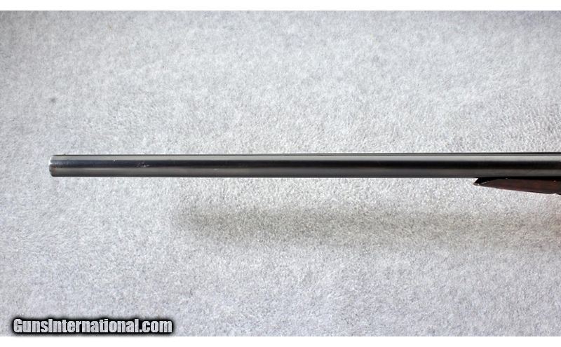 Description: The Parker Brother shotguns are considered one of the best American made shotguns. This V Grade hammerless started life with 30 inch Vulcan Steel barrels according to the Parker Identification and Serial Numbers book. The barrels were cut to 26 inches removing any choke restriction. The barrels are on face with the top lever at center when the action is closed. Manufactured 1899. 12 Gauge SOLD Curio/Relic: Yes Chambers: 2 1/2 inch Metal Condition: "Fair, no case color finish on frame, nicks, scratches and finish wear on the barrels Wood Condition: "Old refinish with scratches, dents and chip repair in toe Bore Condition: Good Barrels: 26 inch Vulcan Steel barrels cut down from 30 inches Triggers: Double triggers Stock Dimensions: "14 1/8 in. LOP, 1 3/4 in. DAC, 3 in. DAH Fore End: Splinter Butt Pad: Parker Dogs head plate with chipped toe Weight: 7 Lbs. 4 Oz. Sights: Concave rib with double beads Chokes: Cylinder and cylinder Item Location: Lehi, UT |