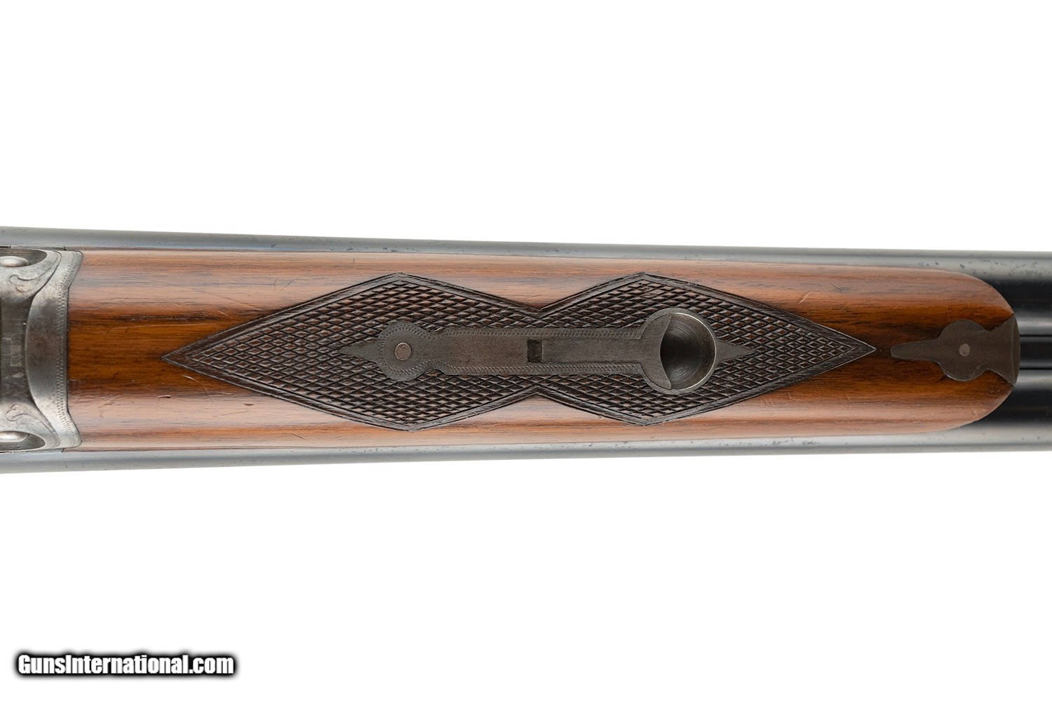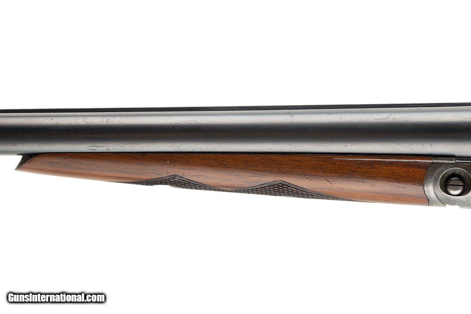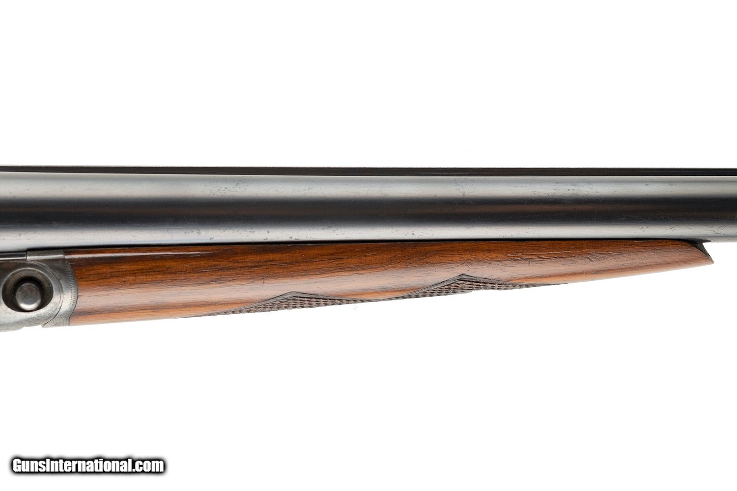 Description: #222XXX 1 1/2 FRAME 30" SOLID RIB BARRELS (.022 AND .037 CONSTRICTIONS) 2 3/4" CHAMBERS DOUBLE TRIGGERS EXTRACTORS SPLINTER FOREARM CAPPED PISTOL GRIP GREAT CONDITION WITH SOME LIGHT HANDLING DOGS HEAD BUTT PLATE 7LBS 8 OZ 2 5/8" DAH 1 1/2" DAC 14 3/8" LOP SOLD |