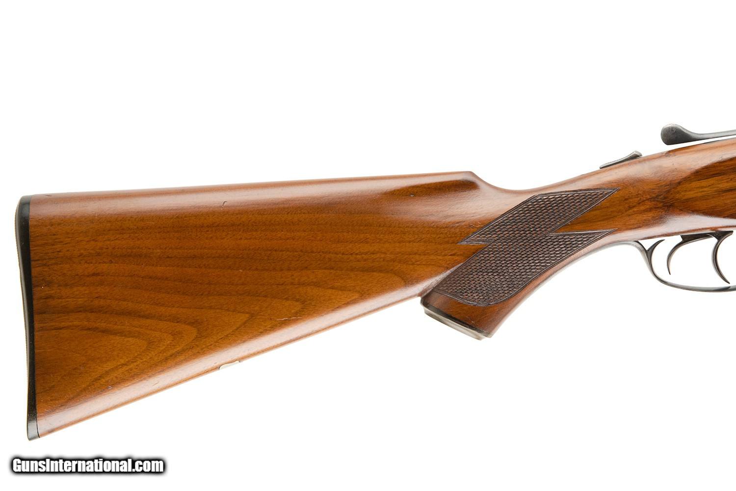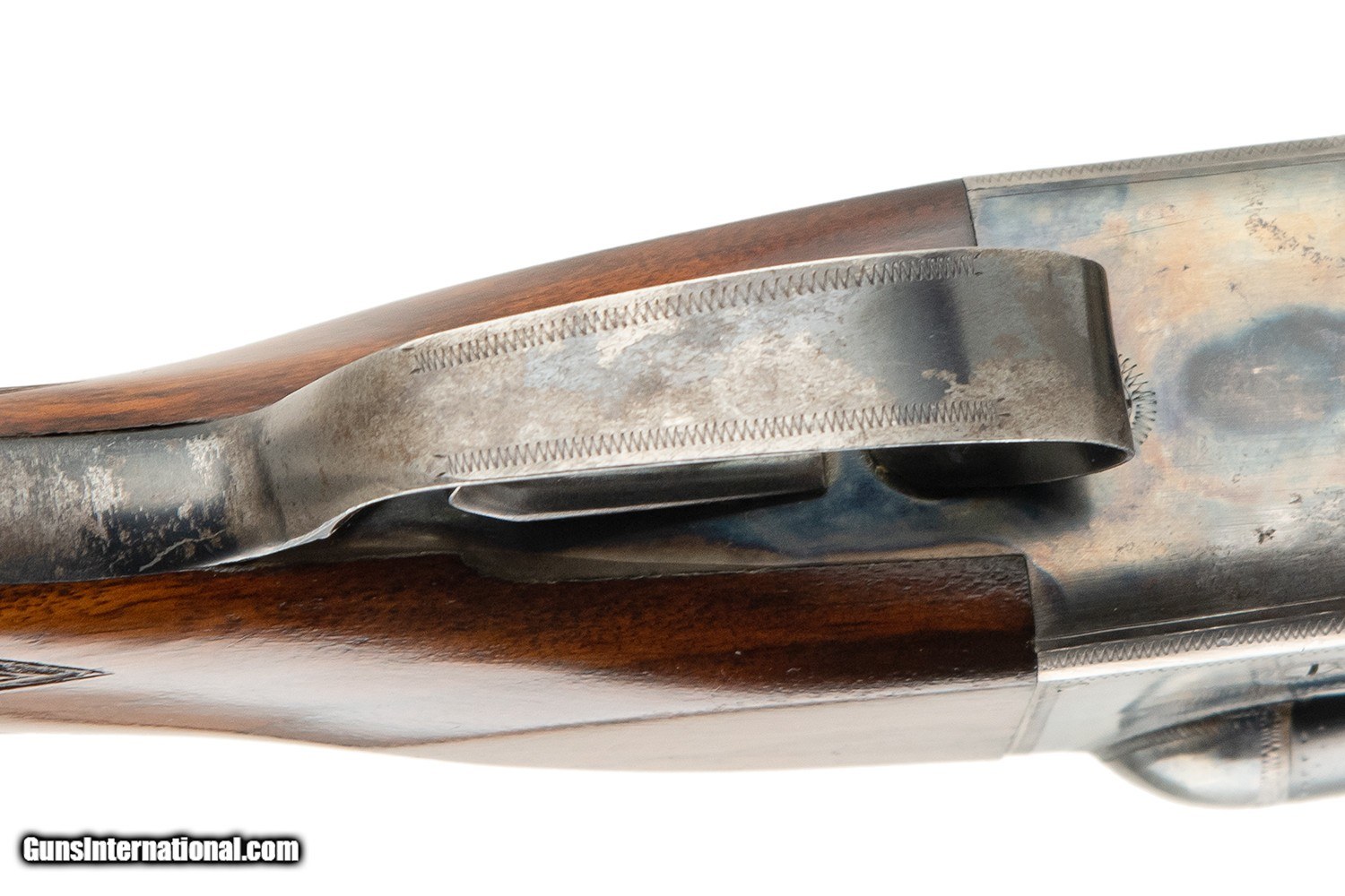 Description: #231278 1 1/2 FRAME 28 " FULL AND FULL 2 3/4 033 AND 040 CONSTRICTION DOUBLE TRIGGER EXTRACTORS SPLINTER FOREARM PISTOL GRIP DOGS HEAD BUTT EXCELLENT CONDITION WITH LIGHT WEAR IN WOOD MINOR EXTERIOR PITTING AT REAR FENCE AND LEFT MUZZLE 7LBS 1 OZ 2 3/4 DAH 1 1/2 DAC 14 1/4 LOP SOLD |