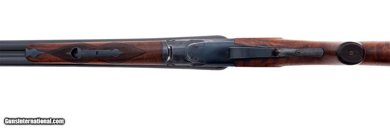 Description: Parker - VH - 16 ga - Item Number: PAR127300 Shotgun type: SxS Action: Boxlock Ejectors: No Trigger: Double Grip: Pistol Grip Forend: Checkered Lop: 14 1/8 " Pad thickness: 0.25 " Type of butt: Plastic Buttplate Drop comb: 1 1/2 " Drop heel: 2 5/8 " Cast amount: 1/8 " Cast: Off Weight: 6 lbs, 4 oz Manufactured in: USA Manufacture Year: Finish: Blue Overall condition: Good Stock condition: Good Metal condition: Good Stock: Original finish Metal: Original finish Type of Case: none Extra barrels: 0 Barrel info: Gauge: 16 ga Chamber: 2 5/8 " Length: 26 " Chokes: F/F Rib type: Concave Comments : "O" frame gun with some light blemishes, non factory butt plate. SG-46 SOLD Curio/Relic: Yes |