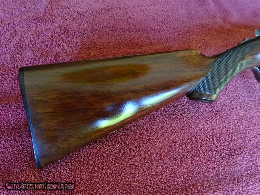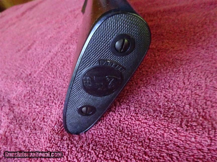 Description: PARKER VH GRADE 16 GAUGE, 28" BARRELS, 0 FRAME. IMCYL. & MODIFIED, VERY GOOD BLUE, BRIGHT BORES, NO DENTS OR DINGS. BRIGHT CASE COLOR IN THE PROTECTED AREAS, TOP LEVER TO THE FAR RIGHT, TIGHT ON FACE, BARRELS RING BEAUTIFULLY. PISTOL GRIP STOCK, SPLINTER FOREARM, VERY GOOD WOOD AND CHECKERING. ORIGINAL GIP CAP AND BUTTPLATE, 1 1/2" X 2 1/2" X 14", 6 1/4 POUNDS. GOOD UPLAND GAME GUN, ALL ORIGINAL FINISH. $3500.00 + $50.00 Insured shipping to an FFL address. See all Pats listings We also have hundreds of pieces of ORIGINAL gun company advertising & memorabilia available for sale. We have no reprints or reproductions. Email for more information. SOLD Curio/Relic: Yes Serial Number: 136xxx |