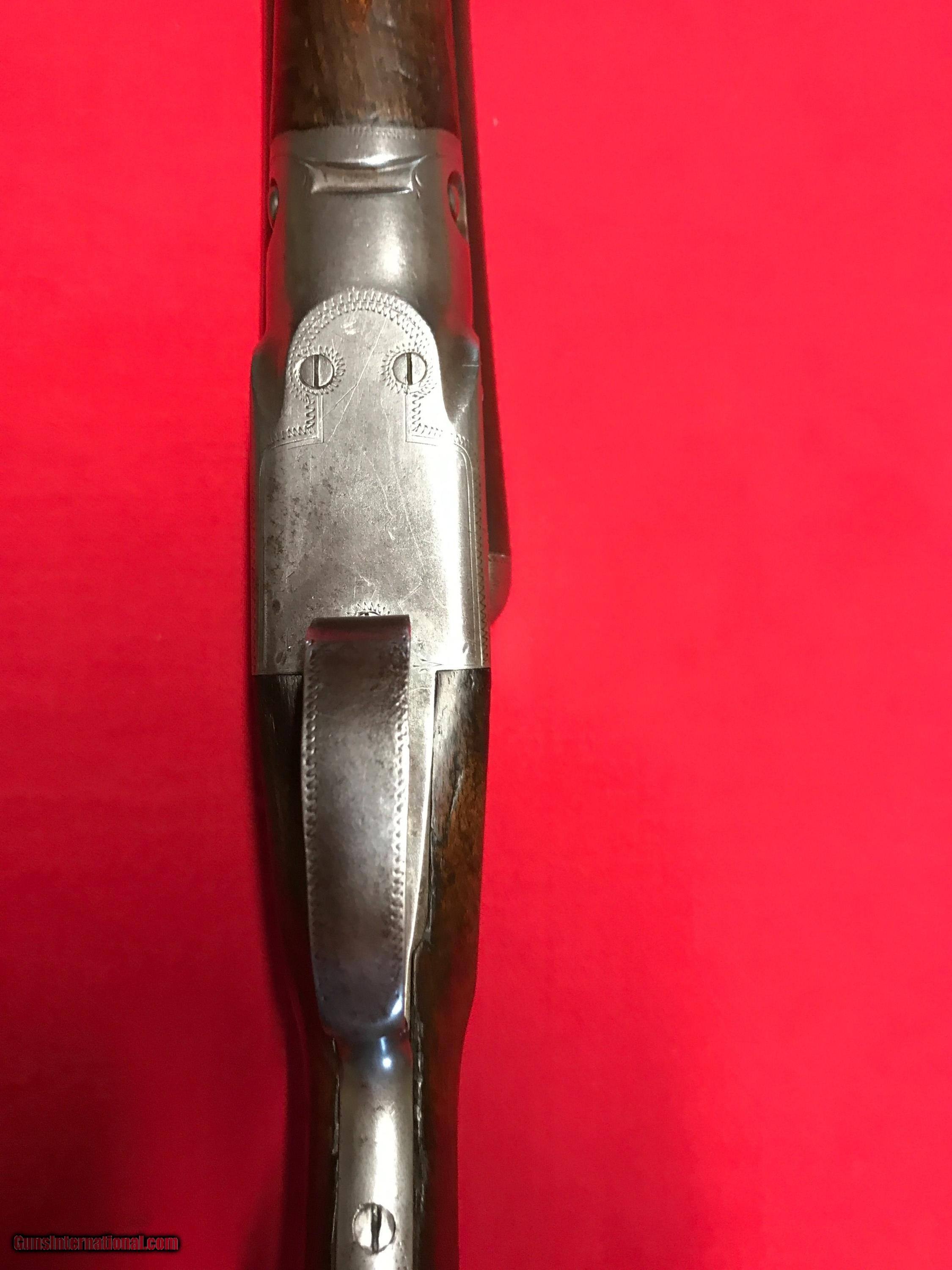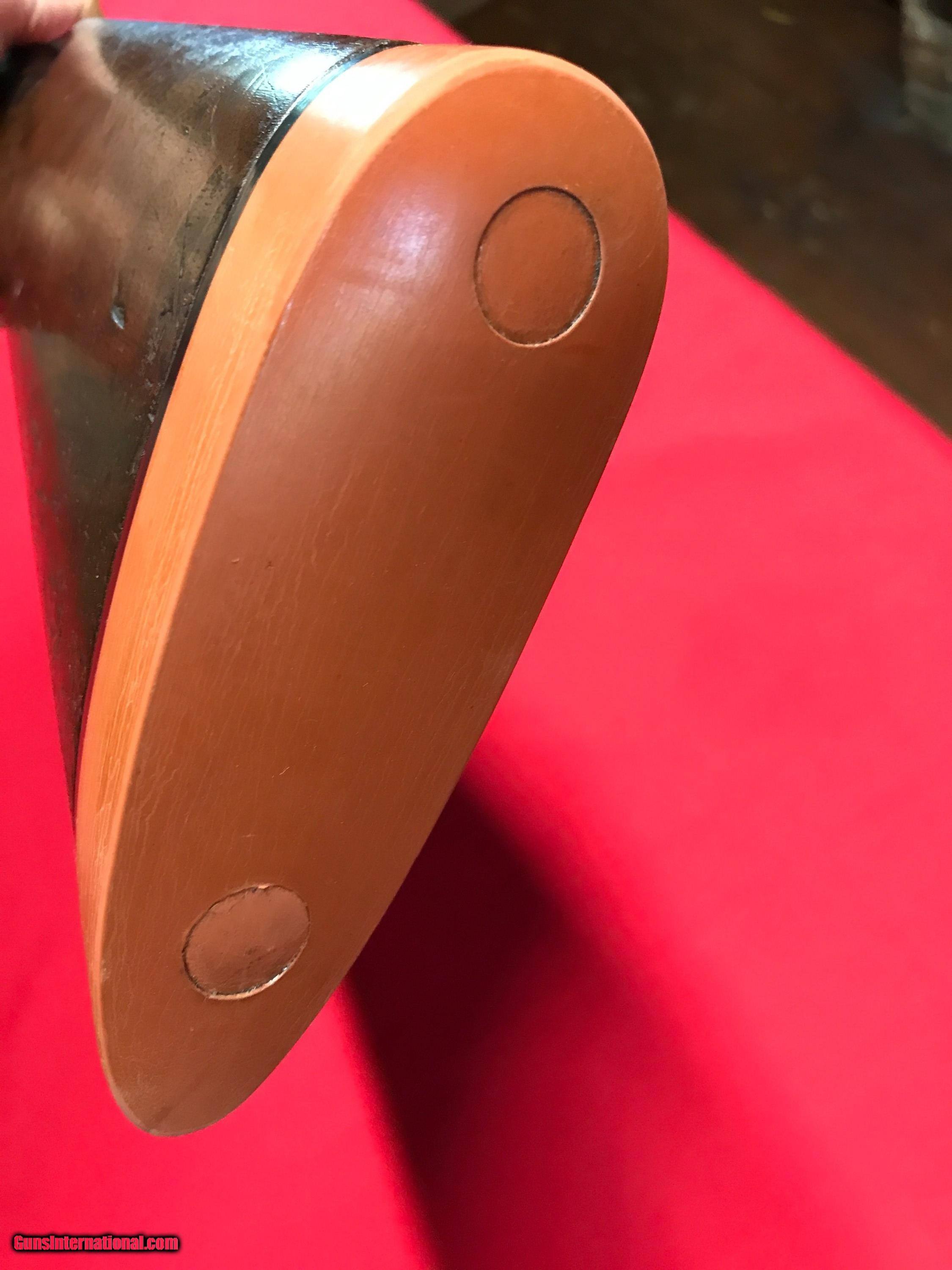 Description: This is a tight old Parker VH 16 gauge veteran grouse gun...The 26" barrels are choked cyl and full. 2 1/2 " chambers with fine bright bores...14 1/4" length of pull over solid red pad. 2 3/4" drop...Weighs 6 5/8 pounds...Serial #155xxx, made circa 1911...Case colors faded away...Barrel blue fading to gray,,,Stock head side panels have been finely checkered. The pad looks too good to be original...Checkering is well worn and needs recutting...Otherwise, looks all original...This aint no closet queen, but it is a classic Parker upland hunting gun that has been used, but not abused...Ship to ffl or c&r... My gunsmith will rechecker wood for $200.... SOLD Curio/Relic: Yes |