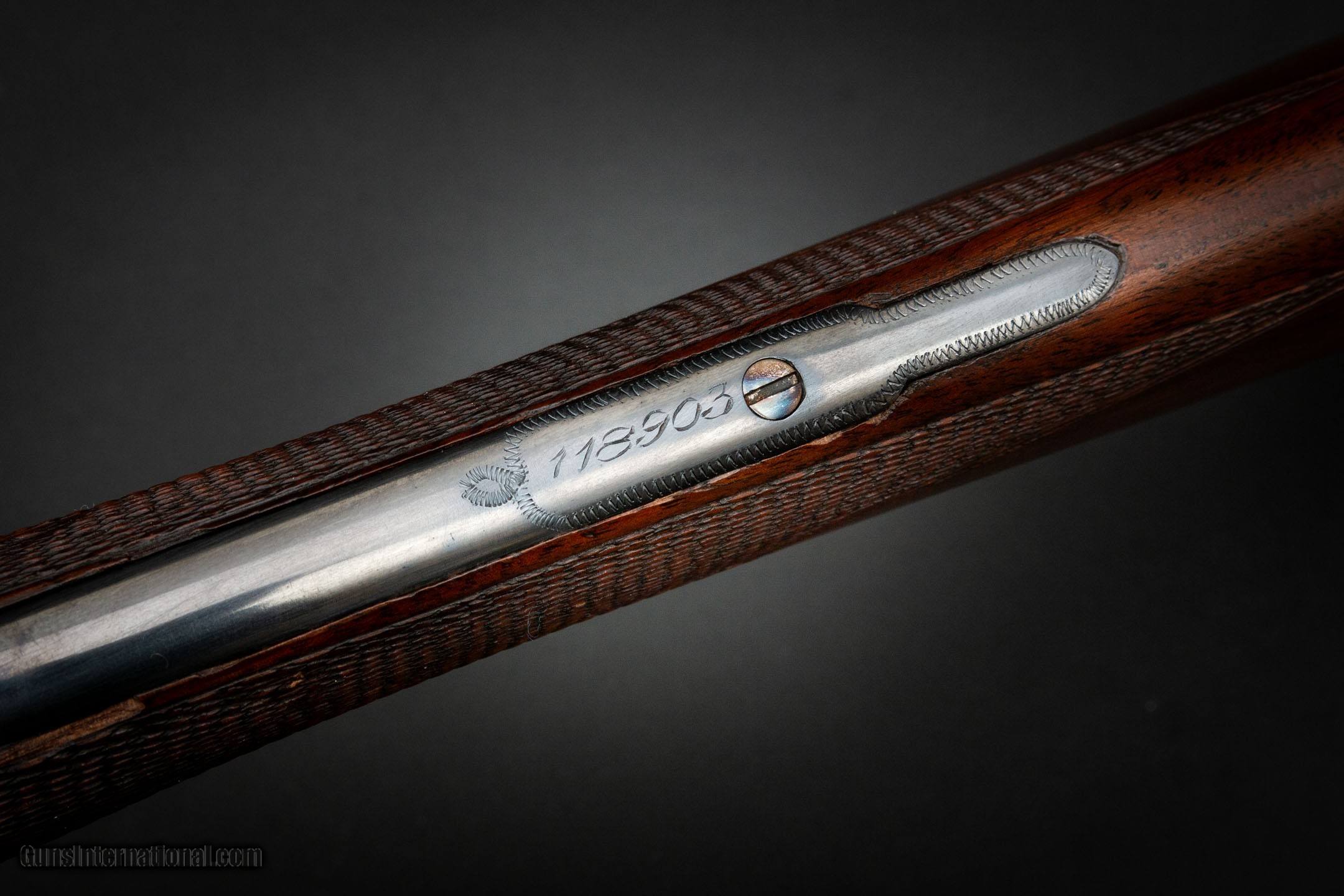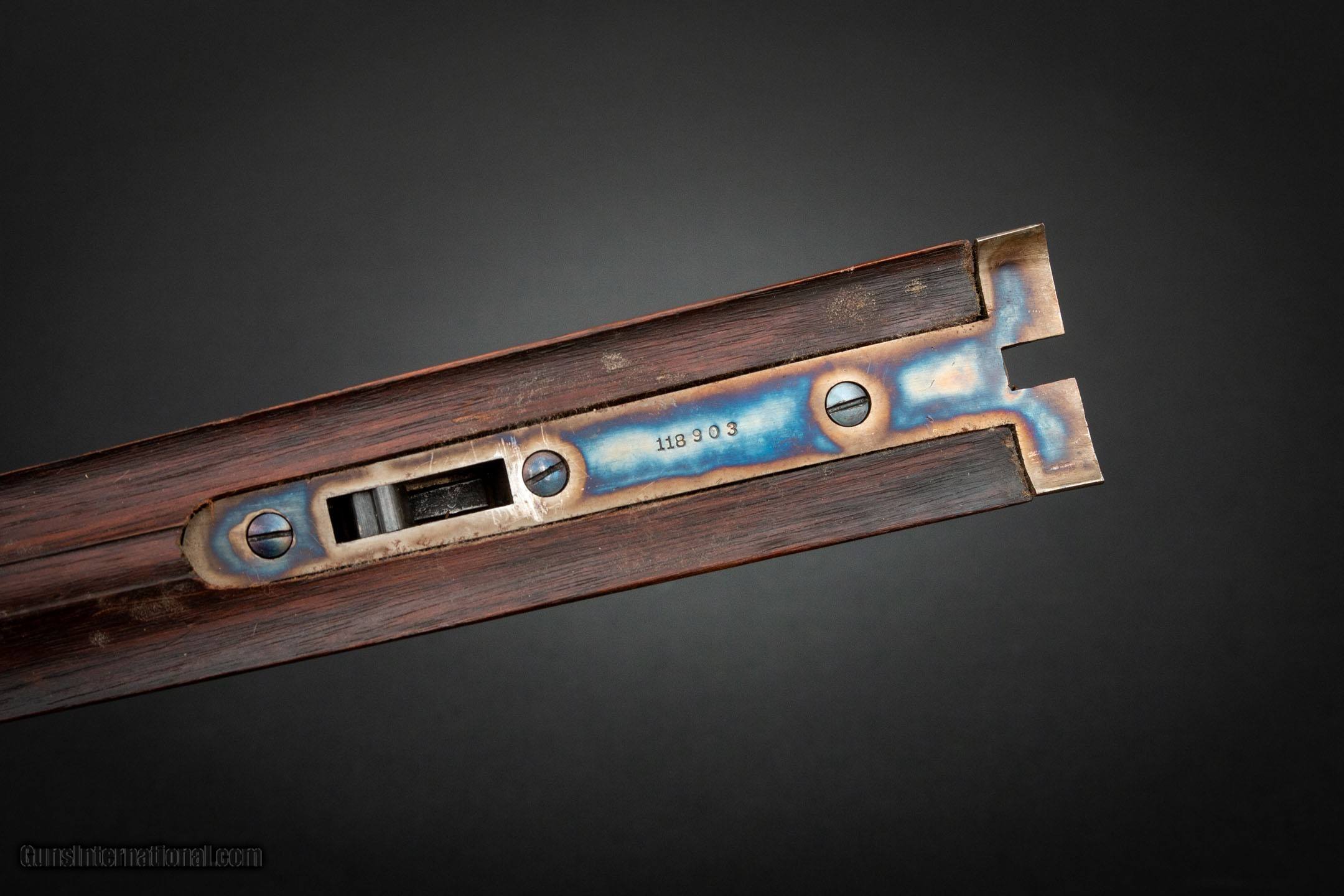 Description: This is a Parker VH 16-gauge shotgun with factory letter. Wearing serial number 118903, this American side-by-side from 1903 features color case hardened action by Turnbull Restoration Co. Other metal and wood finishes performed by Vintage Gun Stock Co. Contact us for more information and additional photographs. SOLD Shotgun Gauge: 16 Gauge Manufacturer: Parker Model: VH Serial Number: 118903 Barrel Length: 28 Chambers: 2-7/8 Action: Boxlock LOP: 15 Manufacture Date: 1903 Choke Left: Full Choke Right: Cyl Item Location: New York - Finger Lakes Region |