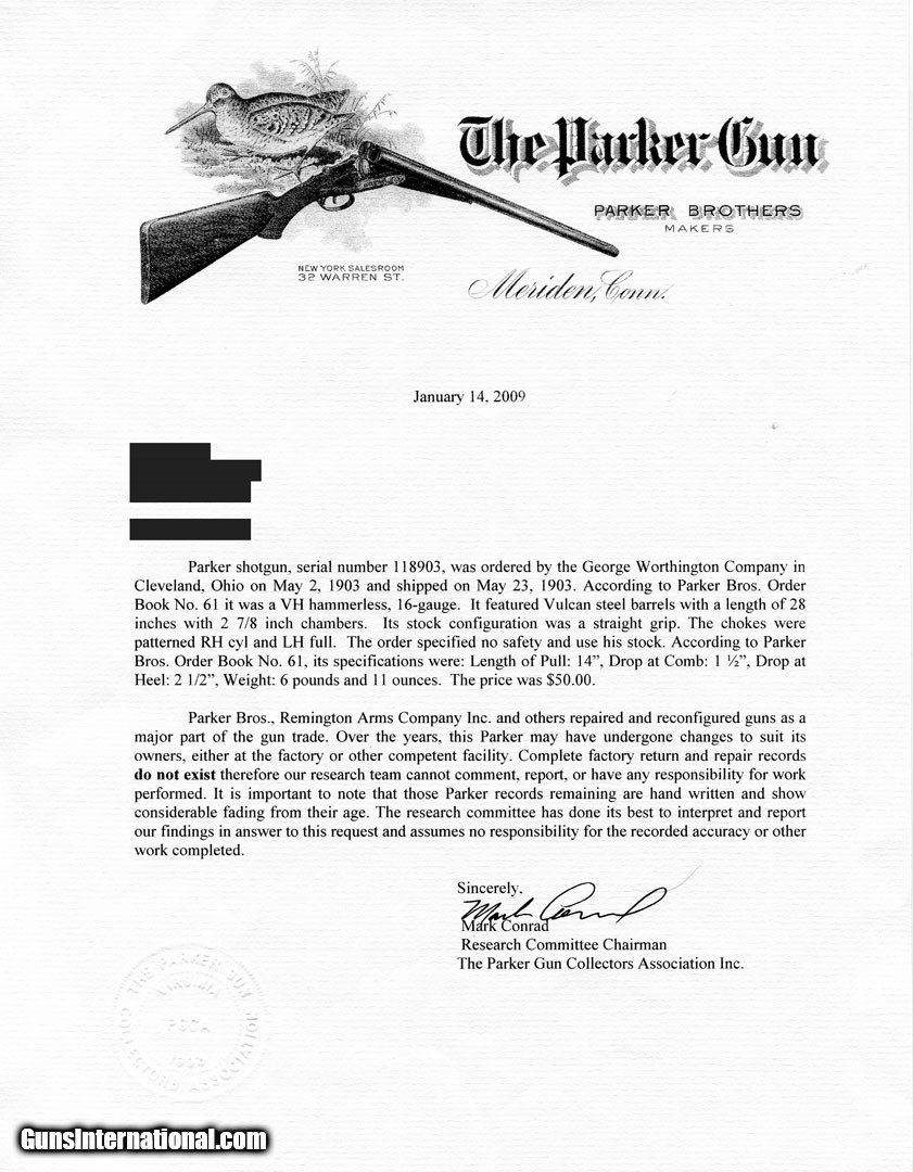 Parker VH 16 Gauge, Factory Letter, Turnbull Finishes