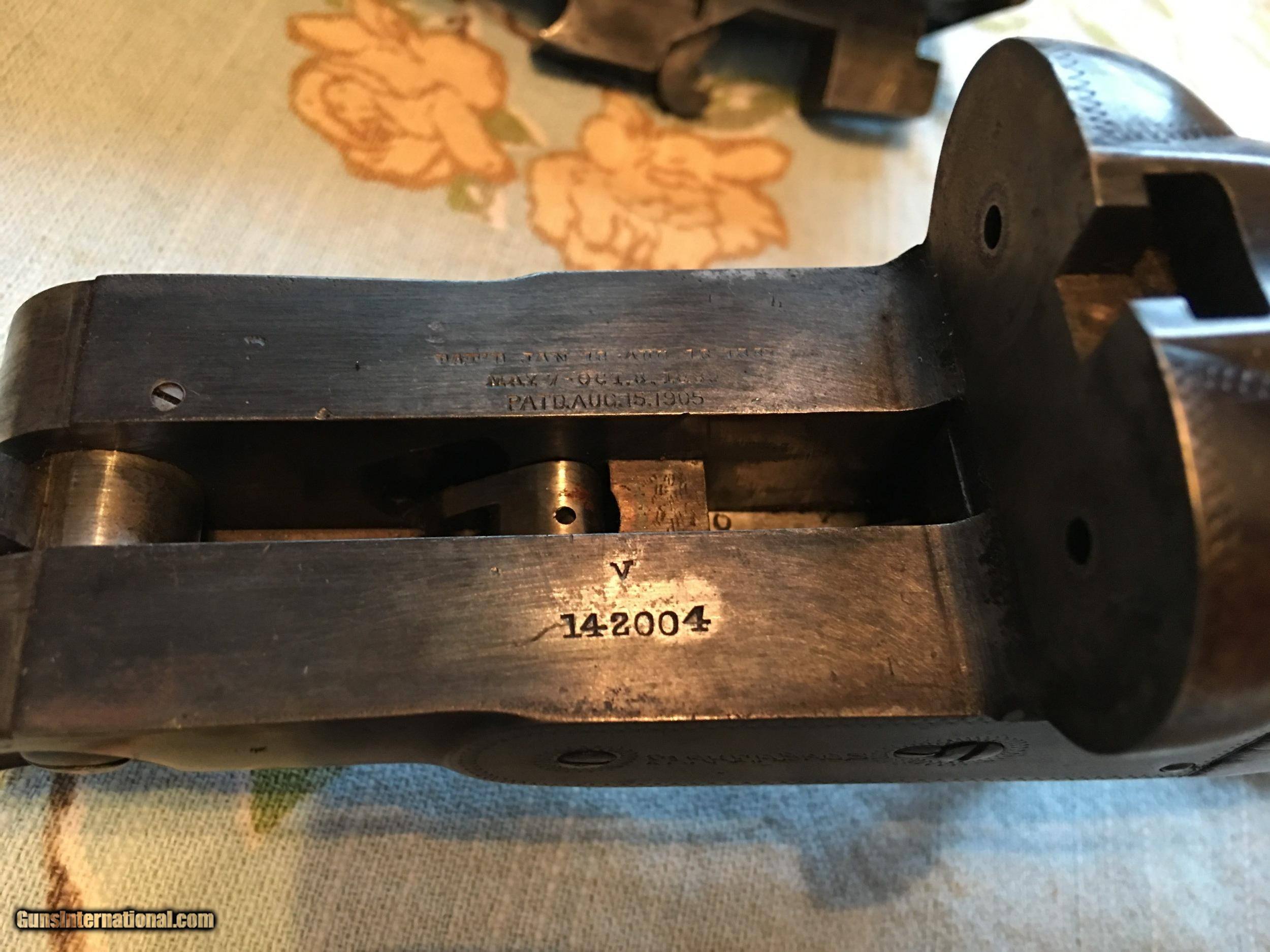 Description: Nice Parker 20 gauge, 0 frame, 25" barrels. Bought new by my grandfather. Everything functions and fits tight, and all serial numbers match. Case coloring is good but shows some wear. Stock has been shortened and does not have original buttpad. SOLD Curio/Relic: Yes Manufacturer: Parker Serial Number: 142004 Manufacture Date: 1907 |