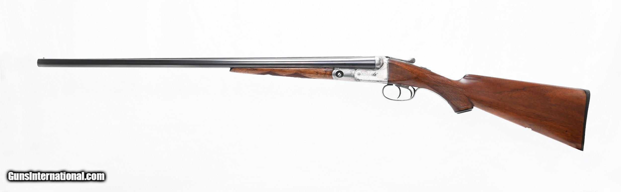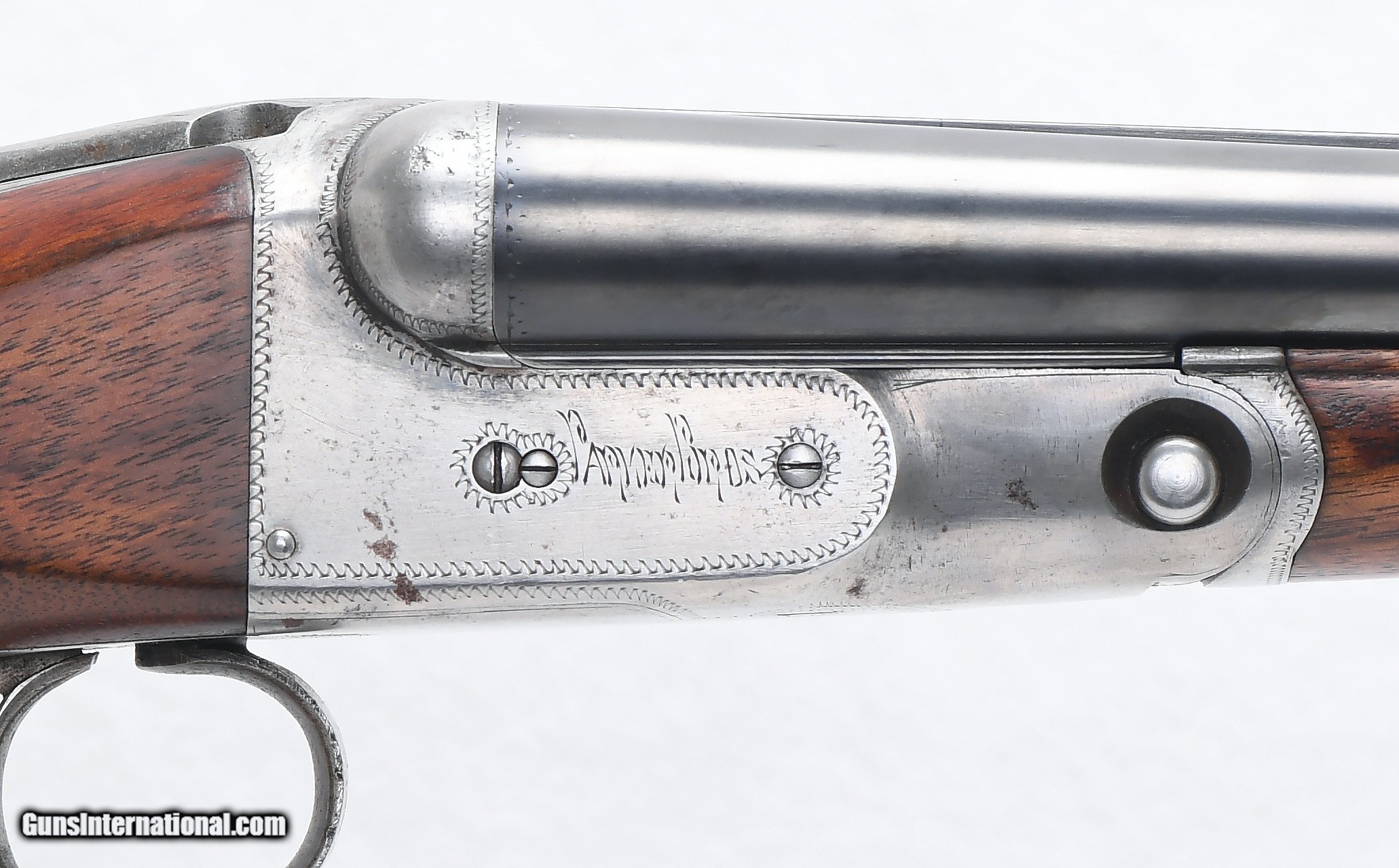 Description: Parker VH 20 SxS shotgun made towards the end of WWI, sometime between 1917 & 1920. This gun is built on the “O” frame with 26” barrels. The right barrel has a .619” bore diameter with Cylinder choke and nominal wall thickness of .032”. The left barrel has a .621” bore diameter with .018” choke (IM) and nominal wall thickness of .029”. Standard bore diameter of a 20 gauge is .615” so both barrels have had the bores polished and the wall thicknesses of both barrels is well above minimums. Chamber length is original 2 9/16”. Double triggers, extractors and automatic safety rounds out the mechanical features. The pistol grip stock and forearm are original, and both have been professionally refinished and have had the checkering recut. The stock has a 14 1/8” LOP to the Dogs Head Buttplate; 1 7/16” DAC and 2 5/8” DAH with ¼” right hand cast. The frame has a trace of case colors but mostly faded to metal. Same with trigger guard..almost no original blue. The barrels were professionally re-blacked and still retain 98% of the new finish. All screws and lettering are “sharp” and clear. Excellent wood to metal fit. Mechanically this gun is tight, crisp/nice triggers and extremely solid…ready to take to the field this fall. The gun weighs 5 lbs. 14 oz. and balances perfectly between the hands. $3,250.00 SN: 191181 SOLD Curio/Relic: Yes |