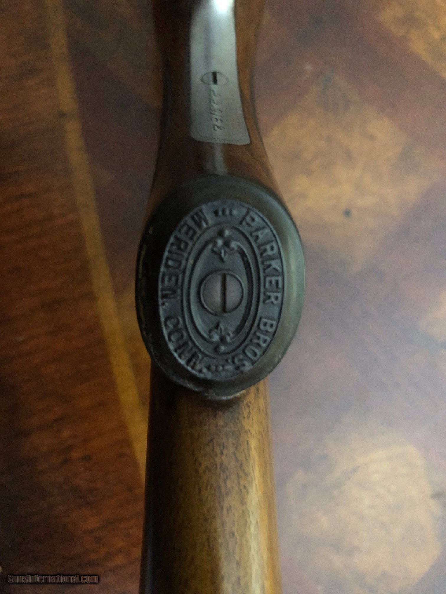 Description: I have a very nice Parker VH 20ga with original 30" barrels and is on a “0” Frame. The gun appears quite nice and original. It has double triggers, capped pistol grip buttstock and splinter forend. The gun has a 14" LOP to what appears to be an original Hawkins pad. The gun has great dimensions with 1-5/8" DAC and 2-3/4" DAH. The gun has perfect mirror shiny bores with 2-3/4" chambers and chokes are .026 (rt) and .028 (left) which is F/F. The gun has about 60% beautiful original case colors, particularly nice on the sides, toned on bottom. Barrel blue is more than 95% original, as is stock finish, which only shows a few minor handling marks. The gun weighs 6lbs 7oz. Top lever is right of center, and the gun is as tight as new. Mechanically perfect. Really a nice rare original small bore Parker that is ideal for shooting and collecting. Priced at $5495 plus shipping to your FFL. Please don't hesitate to email me or Call 704-280-2382 with any questions. Many more photos available. SOLD Curio/Relic: Yes |