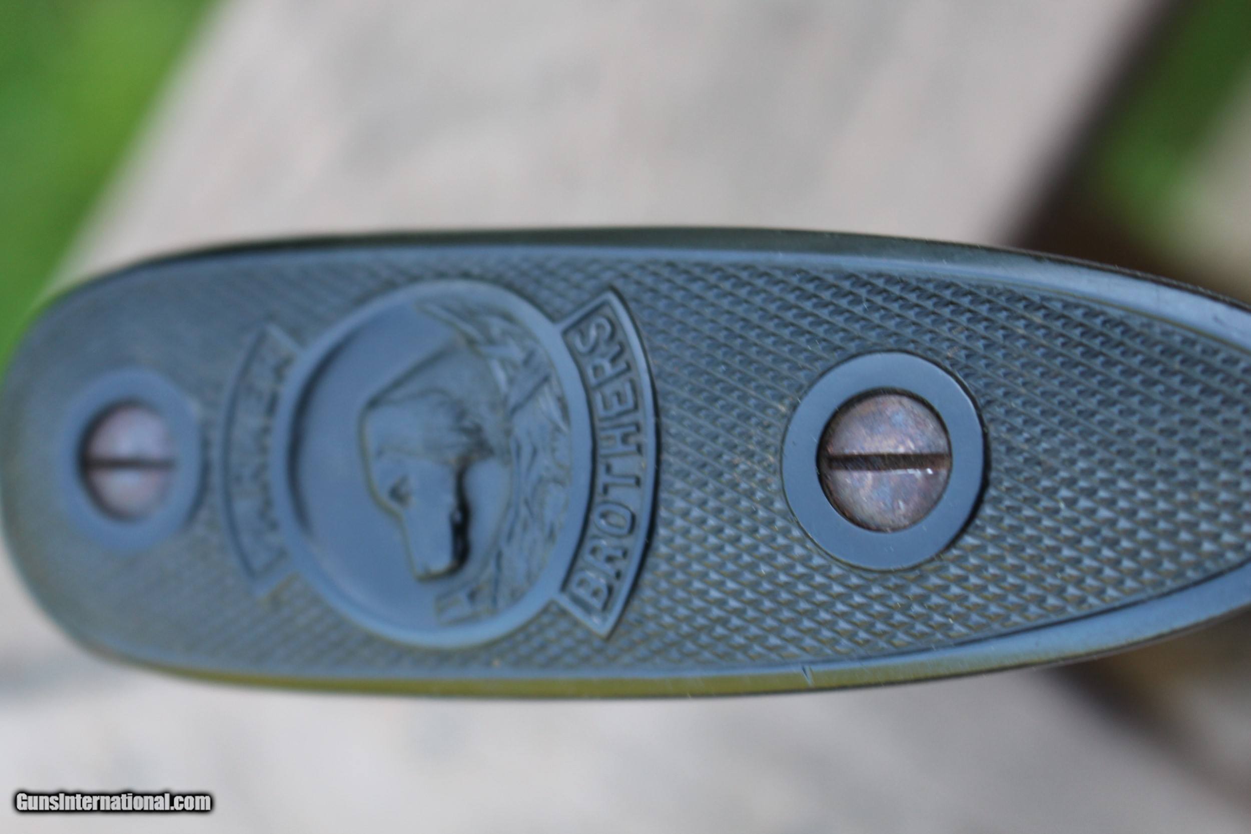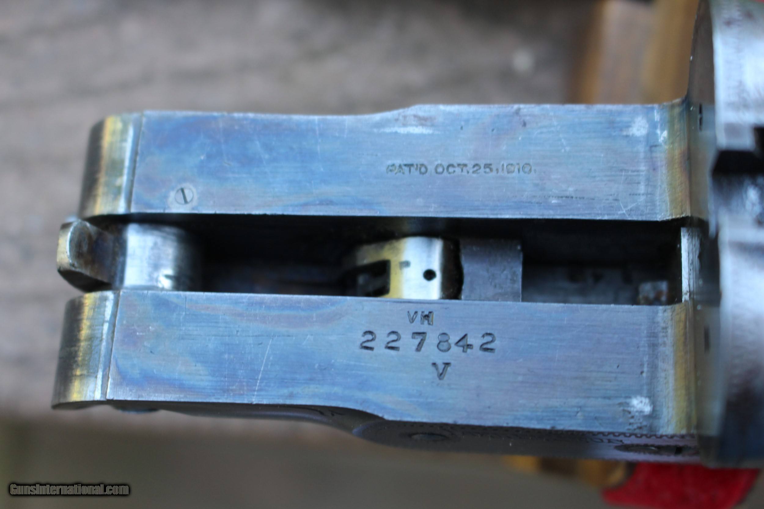 Description: Parker VH.. 20 guage with 2.50" chambers...28" barrels choked F/Imp...Bores shine...70% all round original condition on both wood and metal...Skatered case colors, left side of receiver has about 60% case remaining...LOP 14.25" to end of dogs head butt plate...DAH 3"...O Frame...5.75 lbs...Mfg about 1928 soon to be 100 years old and in great condition...Any questions please e-mail SOLD Curio/Relic: Yes |