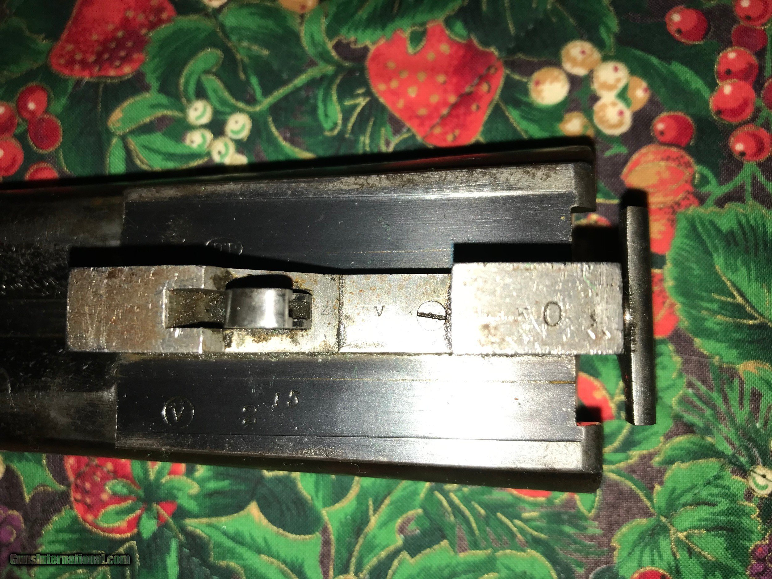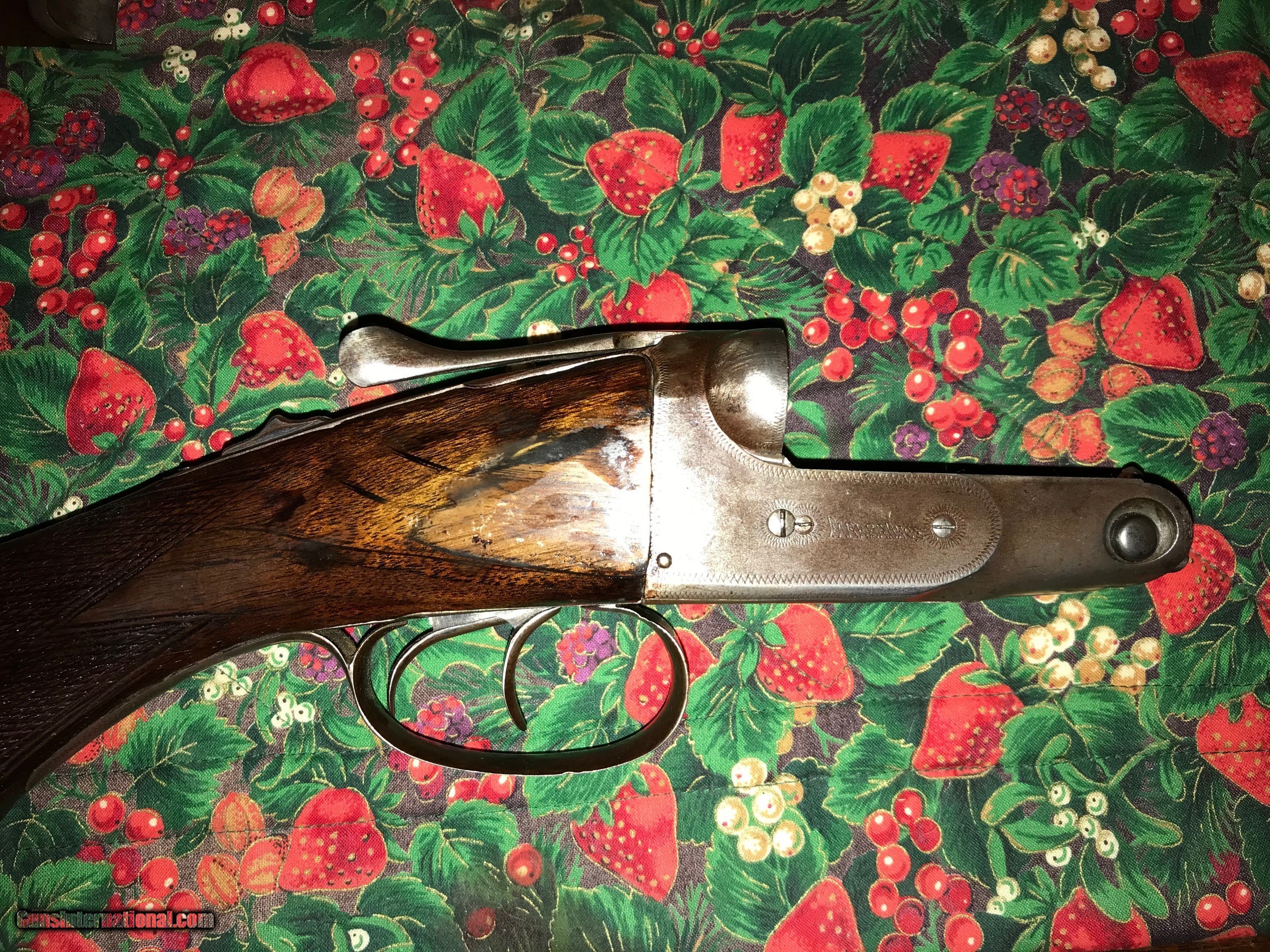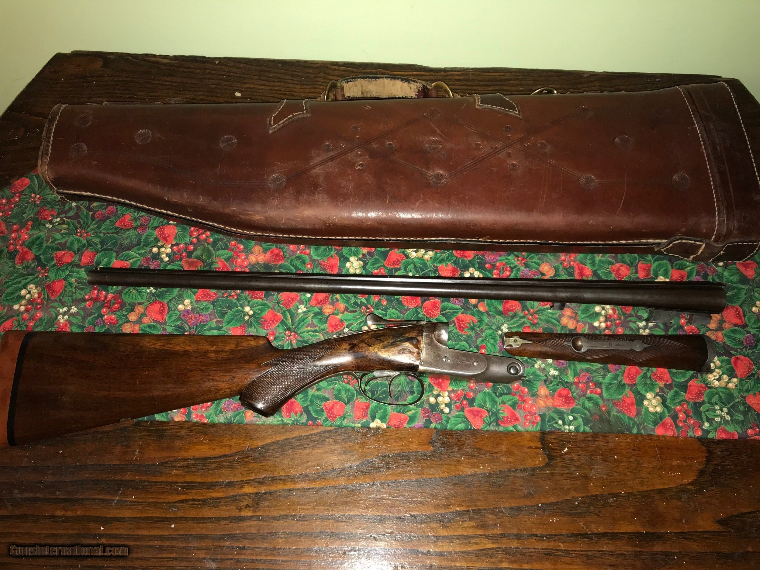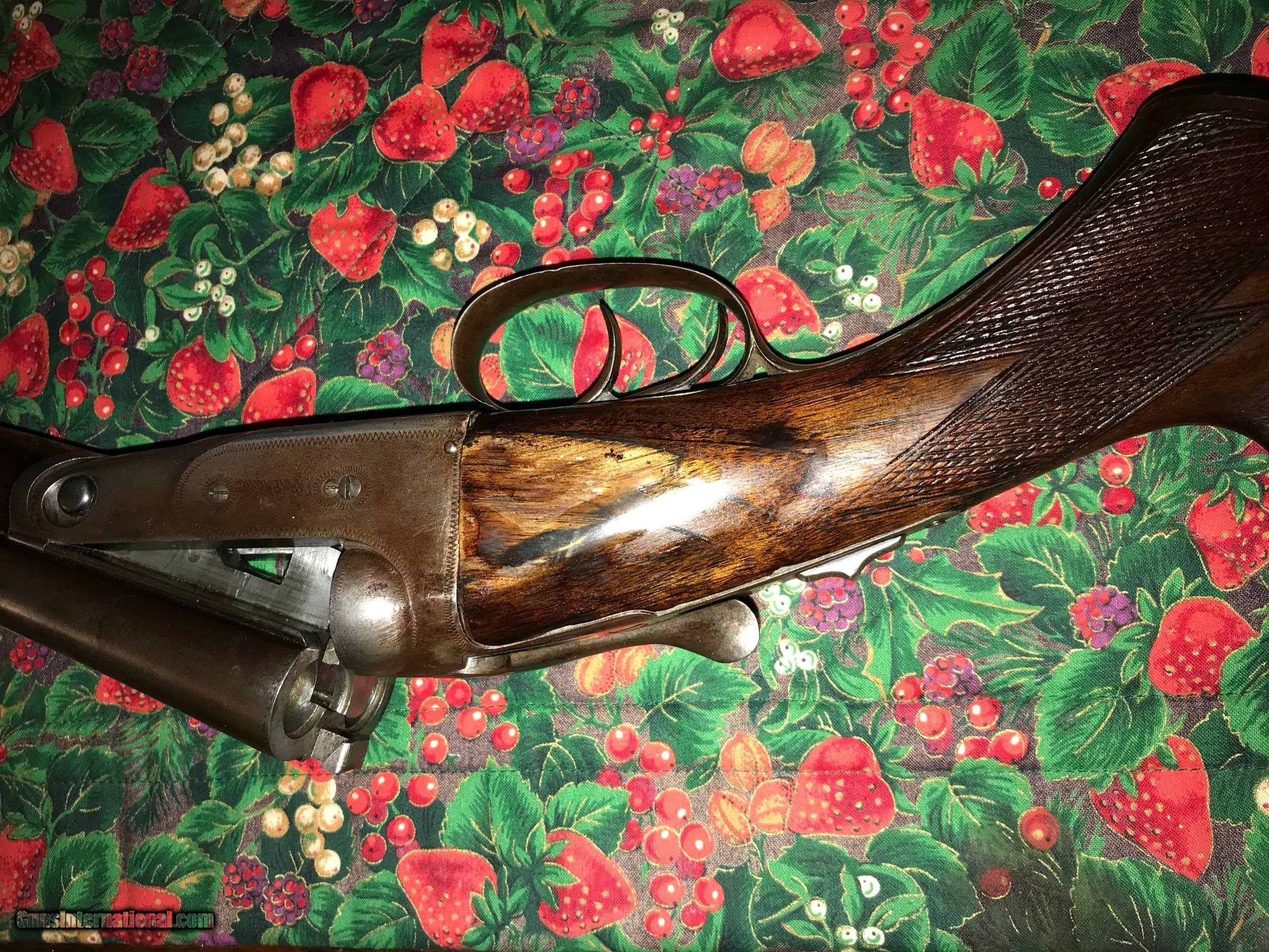 Description: Rare Parker VH 28ga 26" barrels 2 3/4" chambers, choked right - .003, left - .012 on an 0 frame pistol grip LOP 15" front trigger to end of period replacment pad, no cast. There is a repair in the wrist. The barrels do show pitting - but have been inspected by a gunsmith who recommended leaving them as is as it does not effect guns functionality. It is a great grouse gun, mechanical solid, locks up tight. Lever is right of center, barrels still retain some blueing - please see pictures for condition. SN# 154XXX manfactured ~ 1910. SOLD Shotgun Gauge: 28 Gauge Manufacturer: Parker Model: VH Serial Number: 154038 Condition: Good Metal Condition: Good Bore Condition: Pitted |