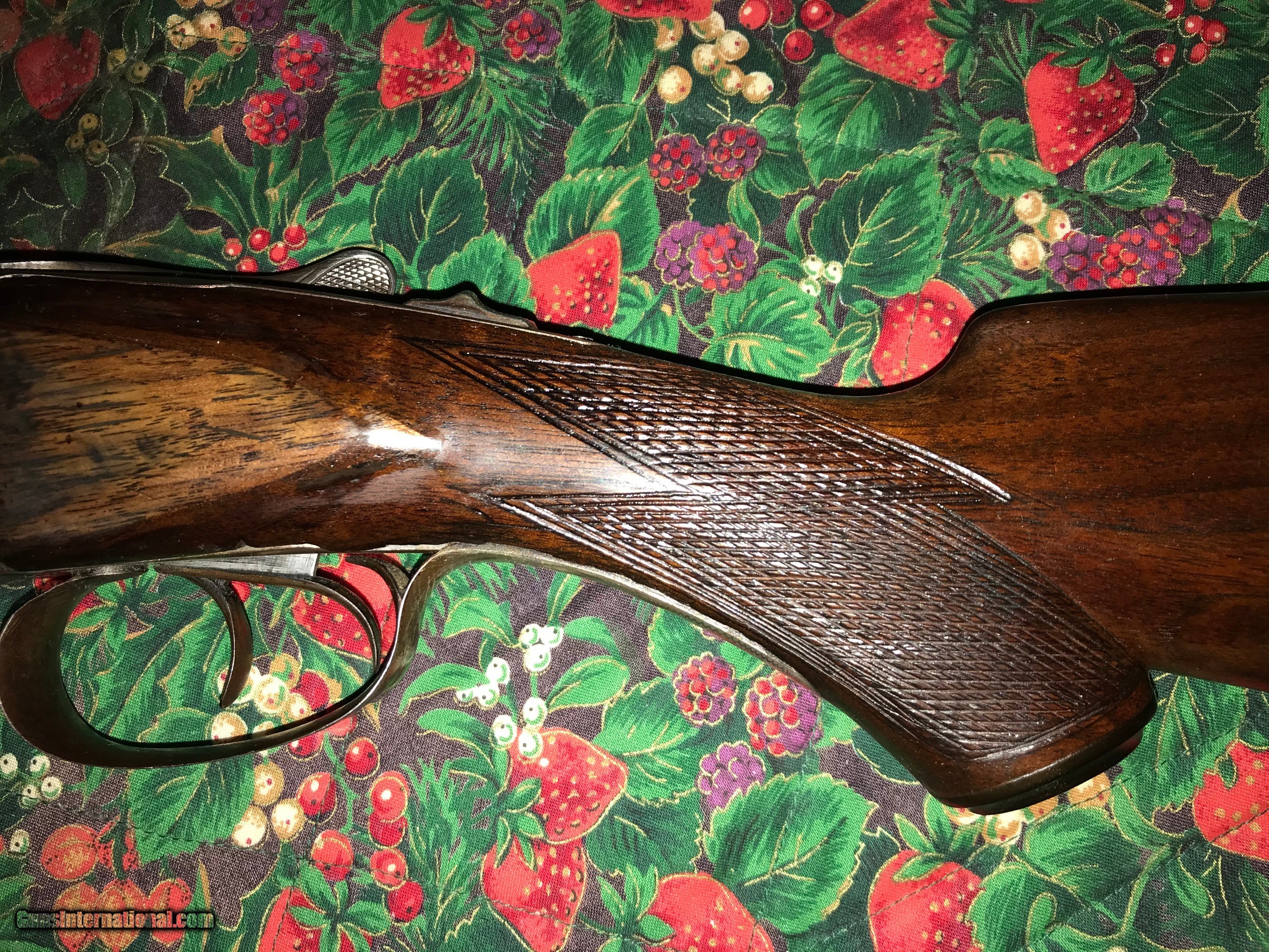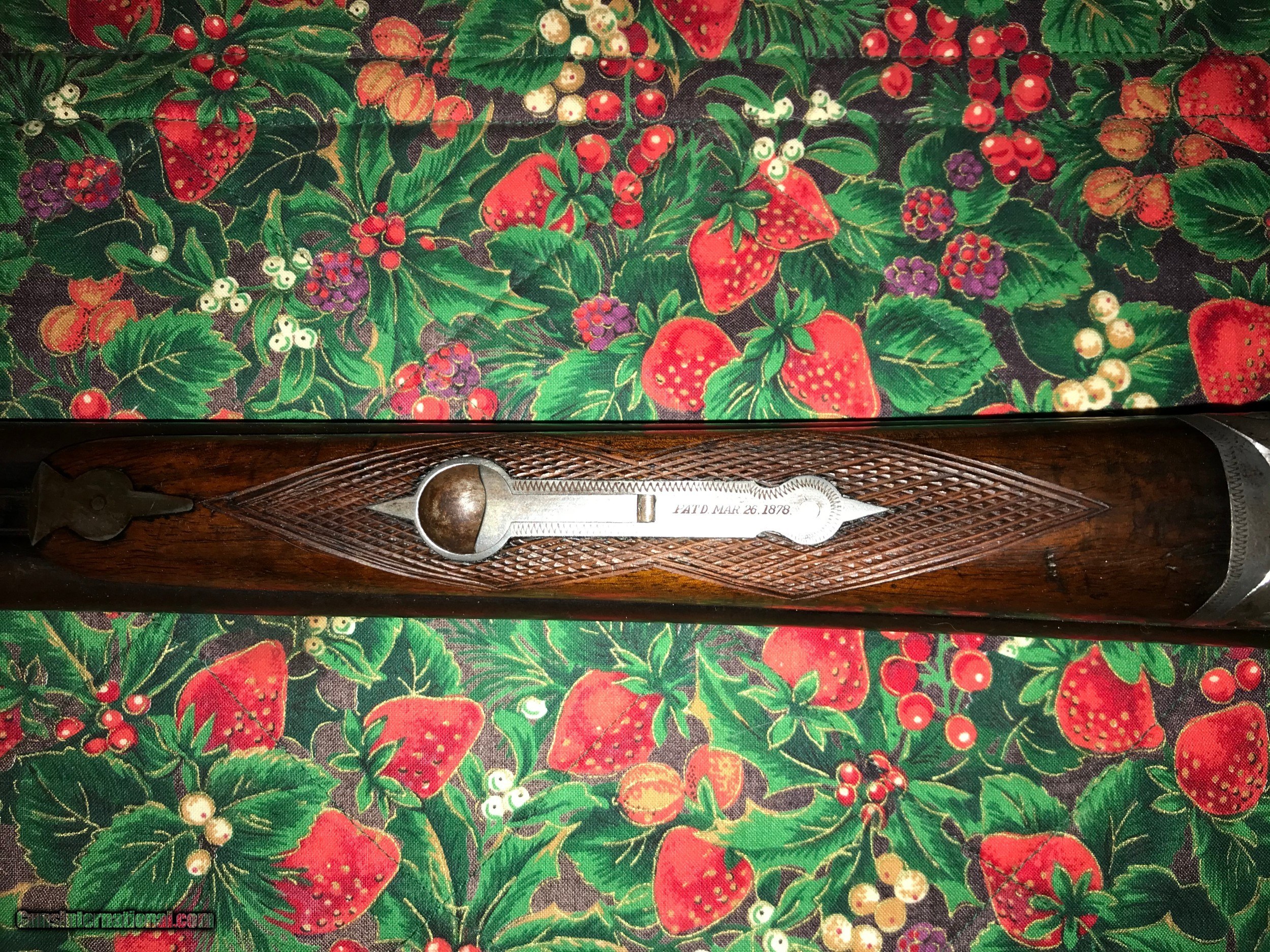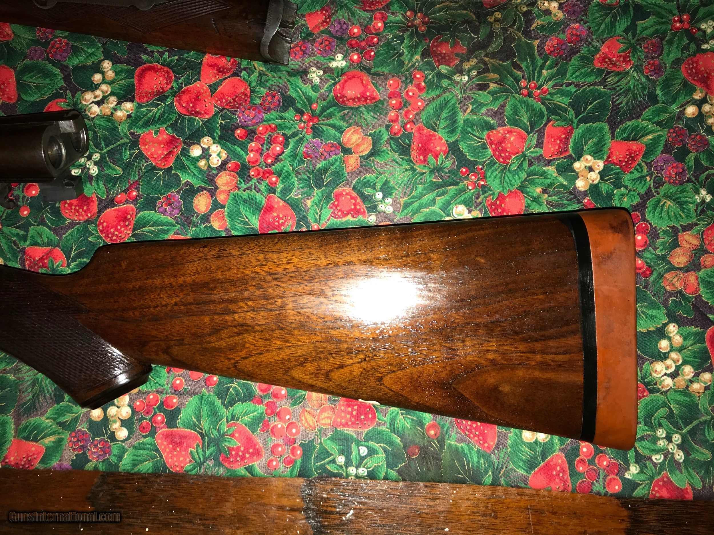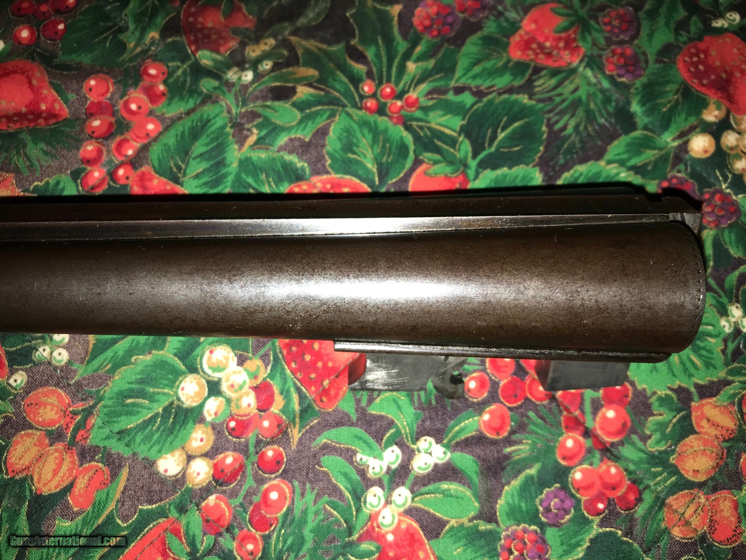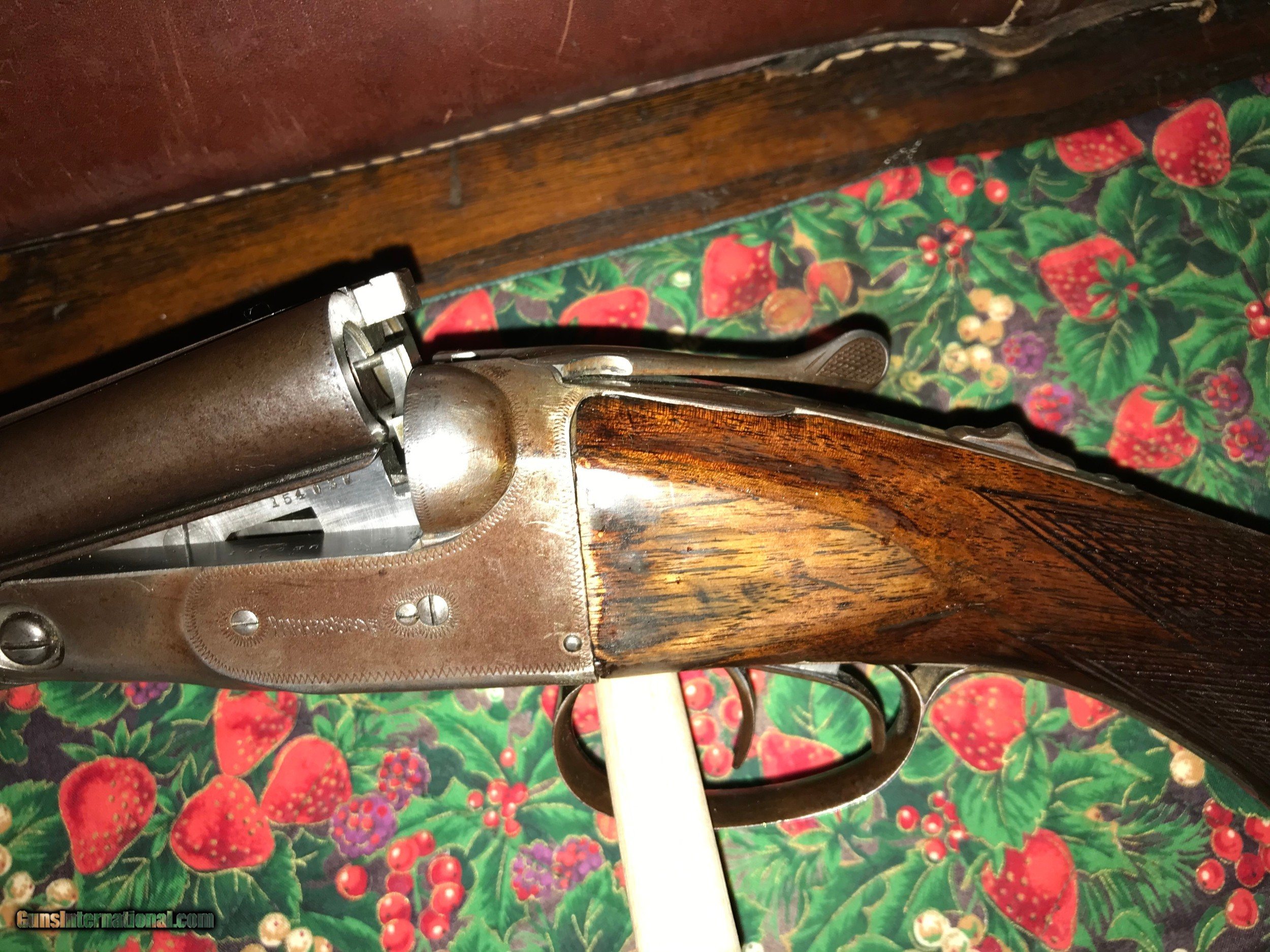 Description: Rare Parker VH 28ga 26" barrels 2 3/4" chambers, choked right - .003, left - .012 on an 0 frame pistol grip LOP 15" front trigger to end of period replacment pad, no cast. There is a repair in the wrist. The barrels do show pitting - but have been inspected by a gunsmith who recommended leaving them as is as it does not effect guns functionality. It is a great grouse gun, mechanical solid, locks up tight. Lever is right of center, barrels still retain some blueing - please see pictures for condition. SN# 154XXX manfactured ~ 1910. SOLD Shotgun Gauge: 28 Gauge Manufacturer: Parker Model: VH Serial Number: 154038 Condition: Good Metal Condition: Good Bore Condition: Pitted |