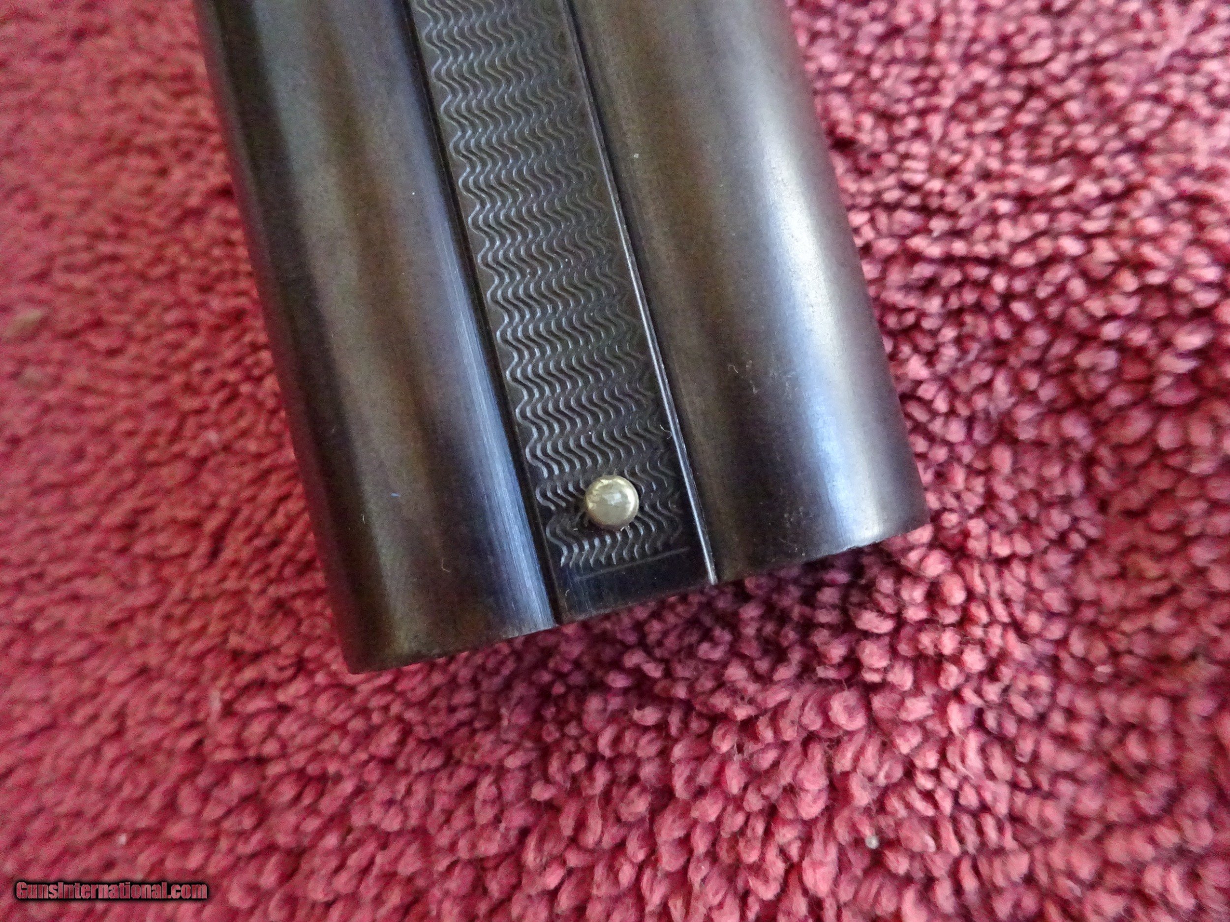Description: PARKER VH GRADE 12 GAUGE, 30" VULCAN STEEL BARRELS, EXCELLENT BLUE, MIRROR BRIGHT BORES, MODIFIED AND FULL, ORIGINAL 2 1/2" CHAMBERS, SINGLE SIGHT, JIM GARY STAMP, BARRELS RING BEAUTIFULLY. NUMBER 1 1/2 FRAME, CASE COLOR IN THE PROTECTED AREAS, TOP LEVER SLIGHTLY TO THE RIGHT, TIGHT ON FACE. PISTOL GRIP STOCK, SPLINTER FOREARM, EXCELLENT WOOD AND CHECKERING. ORIGINAL GRIP CAP AND DOGHEAD BUTTPLATE, HIGH DIMENSIONS, 1 1/4" X 2 1/4" X 14 1/4", 7 POUNDS 4 OUNCES. MADE IN 1916. NICE OLD PARKER, NO DINGS, DENTS OR REPAIRS. GREAT TURKEY GUN. $1695.00 + $60.00 Insured shipping to an FFL address. See all Pats gun listings on this site! We also have hundreds of pieces of ORIGINAL gun company advertising & memorabilia available for sale on our site SPORTINGCOLLECTIBLES. We have no reprints or reproductions. Email for more information. SOLD Curio/Relic: Yes |