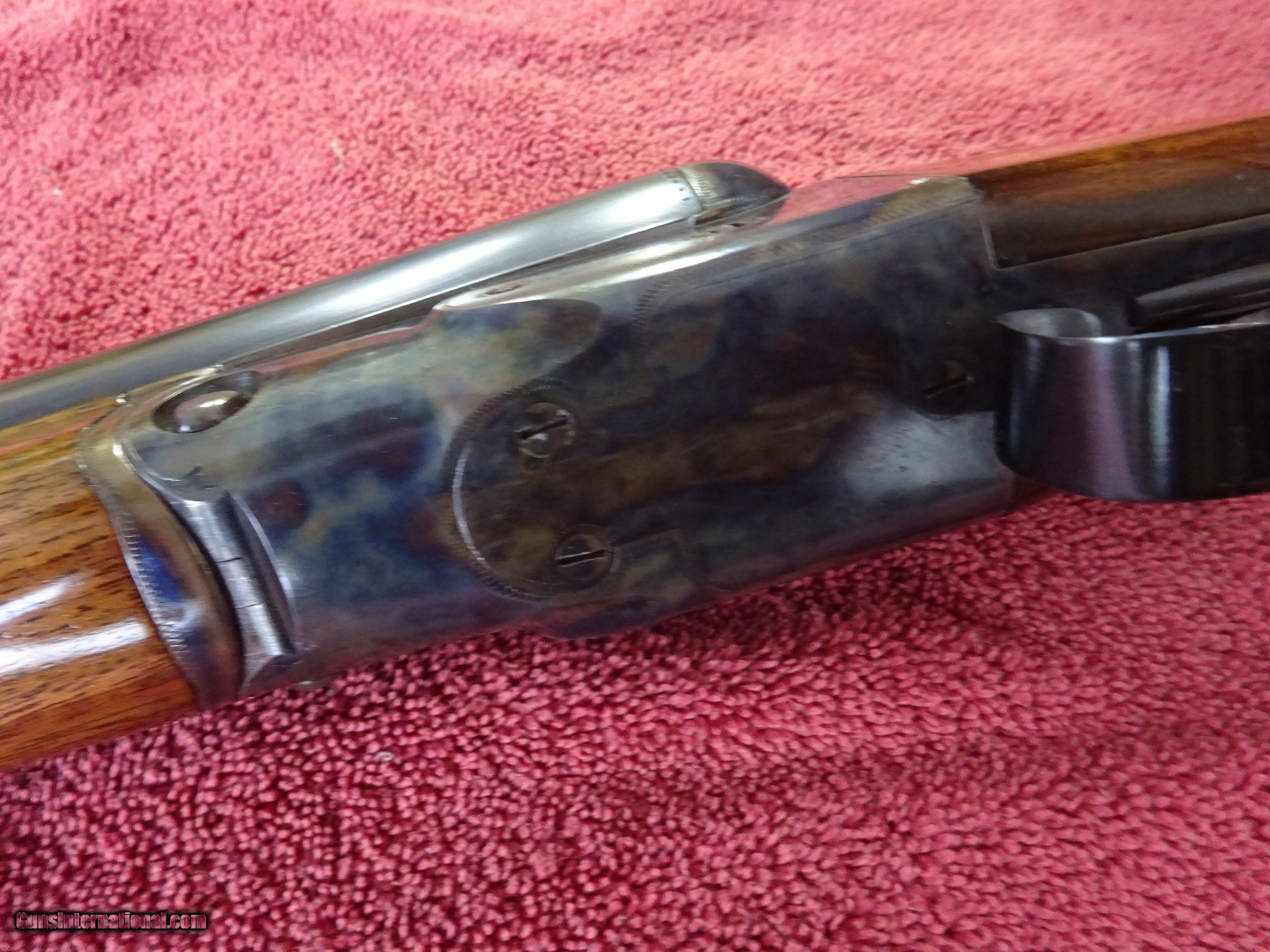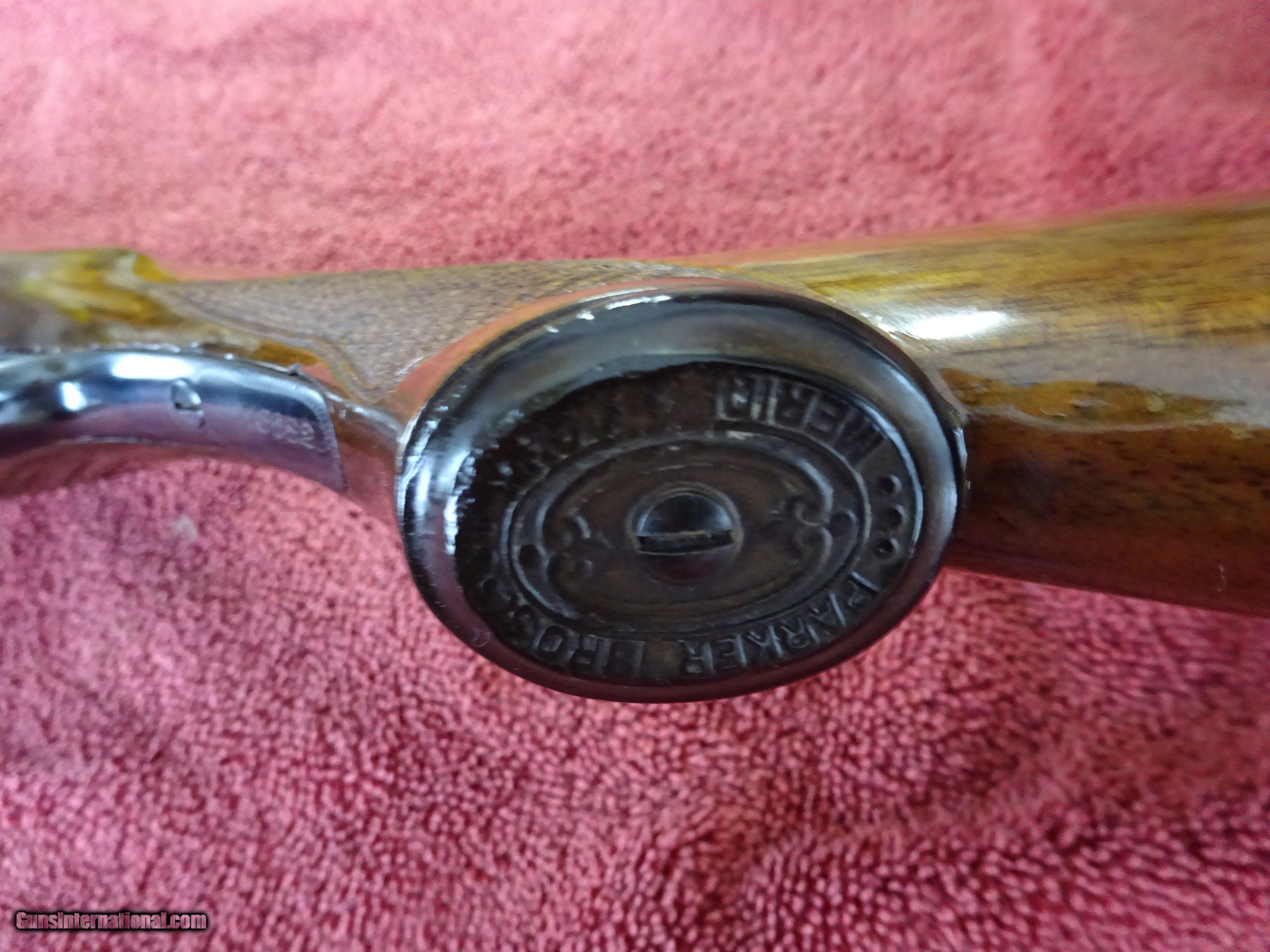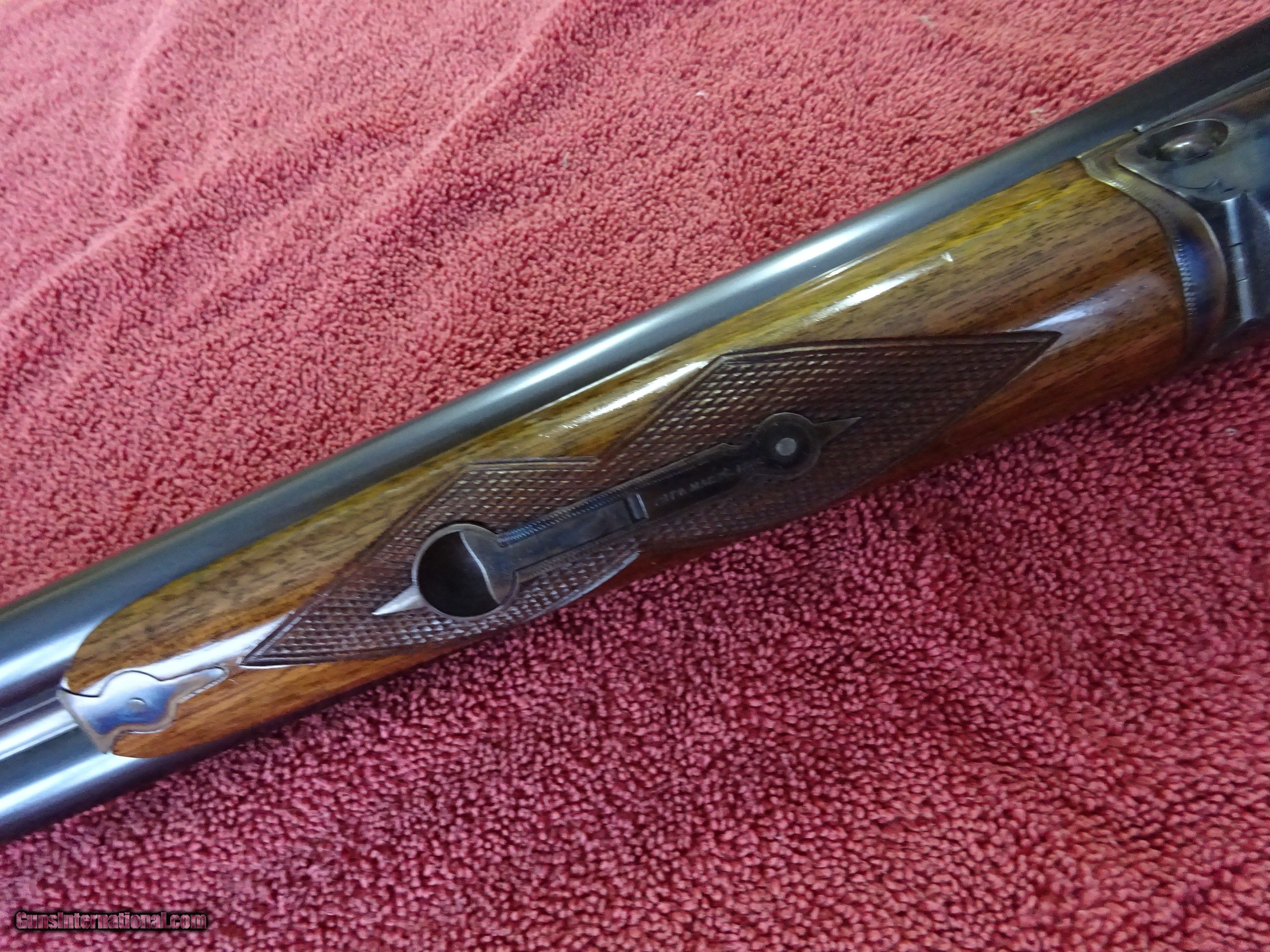 Description: PARKER VH GRADE 12 GAUGE. 30" VULCAN STEEL BARRELS, MODIFIED (.020) AND FULL (.040), 2 3/4" CHAMBERS, SINGLE BEAD SIGHT, MIRROR PERFECT BORES, EXTRACTORS. AUTO SAFETY, NUMBER TWO FRAME, 100% VIVID CASE COLOR ON FRAME AND FOREARM PARTS, PERFECT SCREWS. PISTOL GRIP STOCK, SPLINTER FOREARM, 100% BARREL AND TRIGGERGUARD BLUE. PERFECT CHECKERING, A FEW HANDLING MARKS IN THE VARNISH, 1 3/4" X 3" X 14 1/4", 7 POUNDS 13 OUNCES. THE GUN WAS PROFESSIONALLY RESTORED, OUTSTANDING WORK. MADE IN 1903. $1350.00 + $70.00 Insured shipping to an FFL address. Layaway is available. See all Pats gun listings on this site! We also have hundreds of ORIGINAL gun company advertising & memorabilia pieces available for sale on our site SPORTINGCOLLECTIBLES. We have no reprints or reproductions. Email for more information. If you need to call, morning or evening is best, and please note the Seller's Inventory number. SOLD Curio/Relic: Yes |