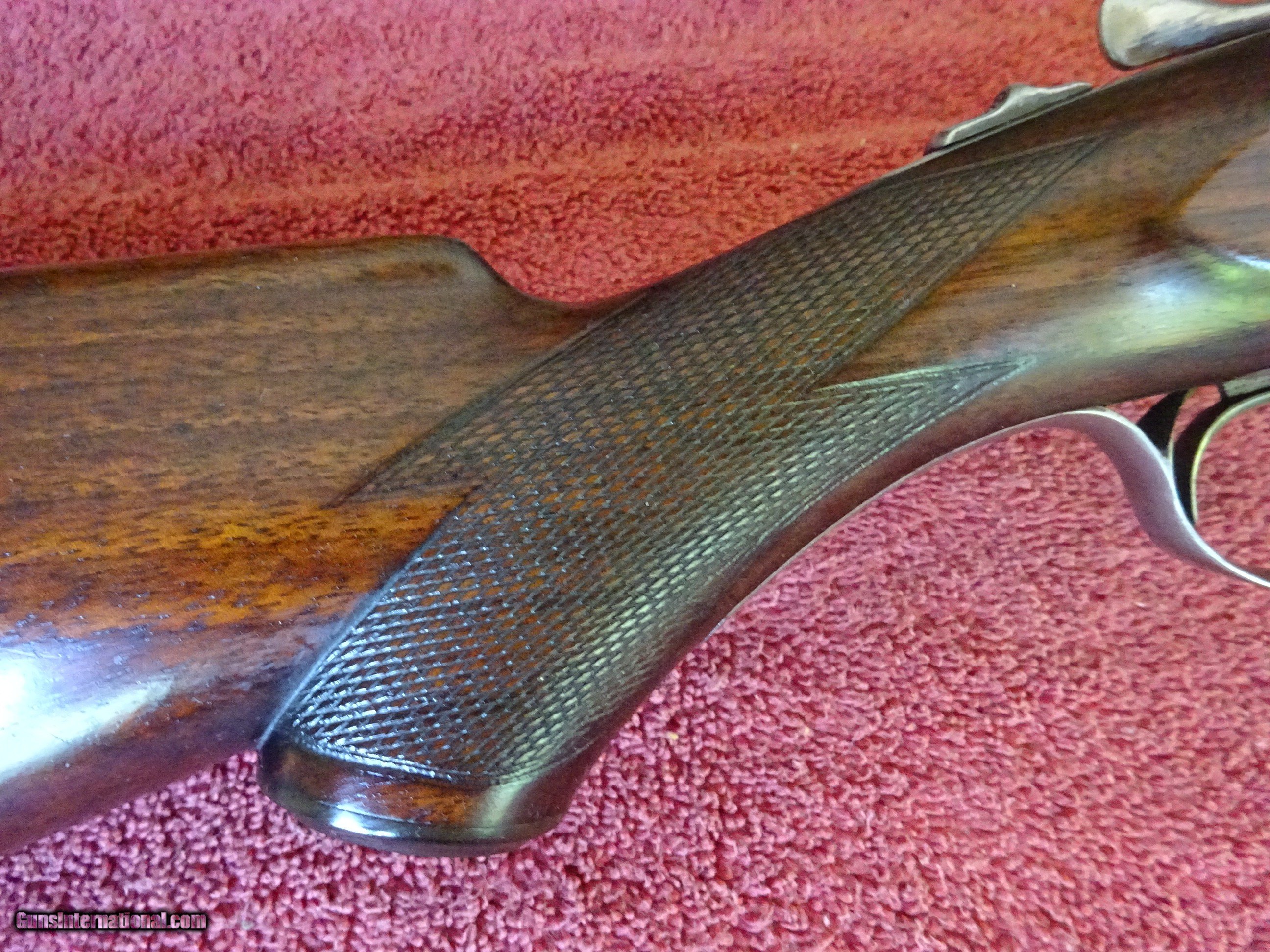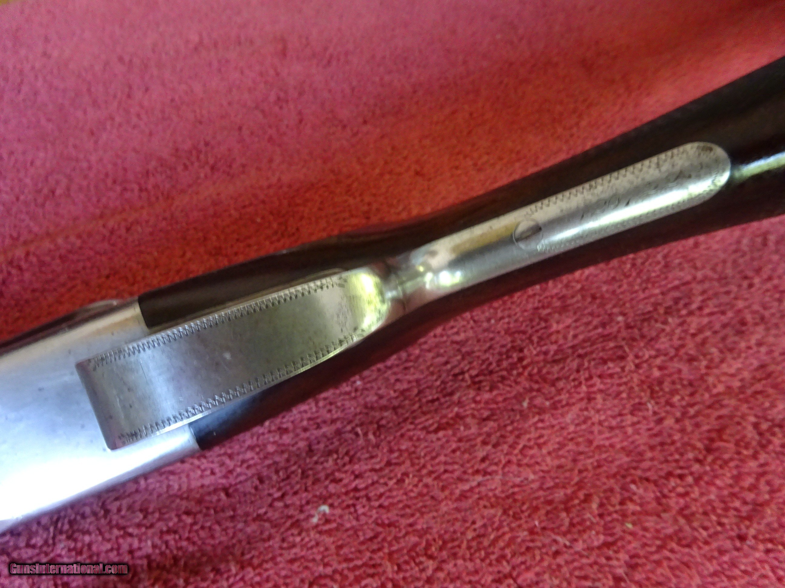 Description: PARKER VH GRADE 16 GAUGE, 0 FRAME. VULCAN STEEL 28" BARRELS, EXCELLENT BLUE, MIRROR-PERFECT BORES, IMCYL. (.005) AND MODIFIED (.015), 2 3/4" CHAMBERS, SINGLE BEAD SIGHT, BARRELS RING LIKE A BELL. BOXLOCK FRAME WITH LIGHT BORDER ENGRAVING, CASE COLOR IN THE PROTECTED AREAS, PERFECT UNTURNED SCREWS, TIGHT ON FACE. PISTOL GRIP STOCK, SPLINTER FOREARM, VERY GOOD WOOD AND CHECKERING. ORIGINAL GRIP CAP AND DOGHEAD BUTTPLATE, SILVER STOCK SHIELD NOT ENGRAVED, 1 1/2" X 2 1/2" X 13 3/4", 6 POUNDS 7 OUNCES. MADE IN 1903, 100% ORIGINAL CONDITION. NICE LITTLE UPLAND GAME GUN. $3500.00 + $70.00 Insured shipping to an FFL address. Layaway is available. See all Pats gun listings on this site! We also have hundreds of ORIGINAL gun company advertising & memorabilia pieces available for sale on our site SPORTINGCOLLECTIBLES. We have no reprints or reproductions. Email for more information. SOLD Curio/Relic: Yes |
