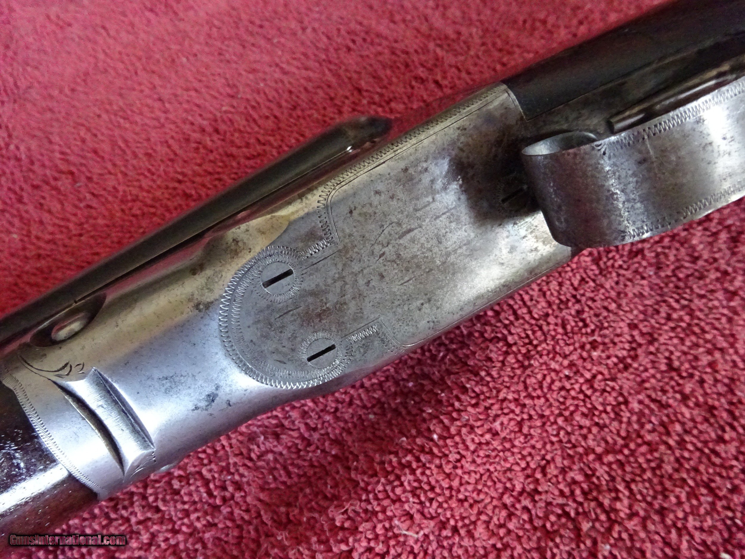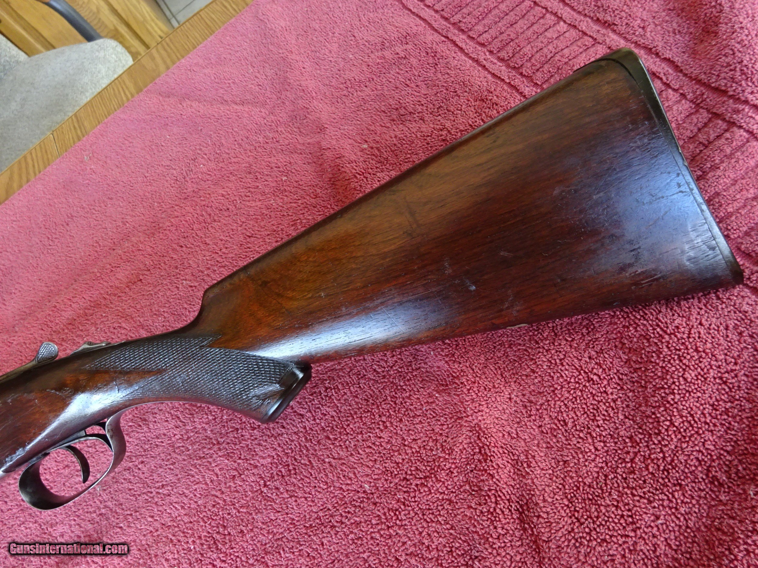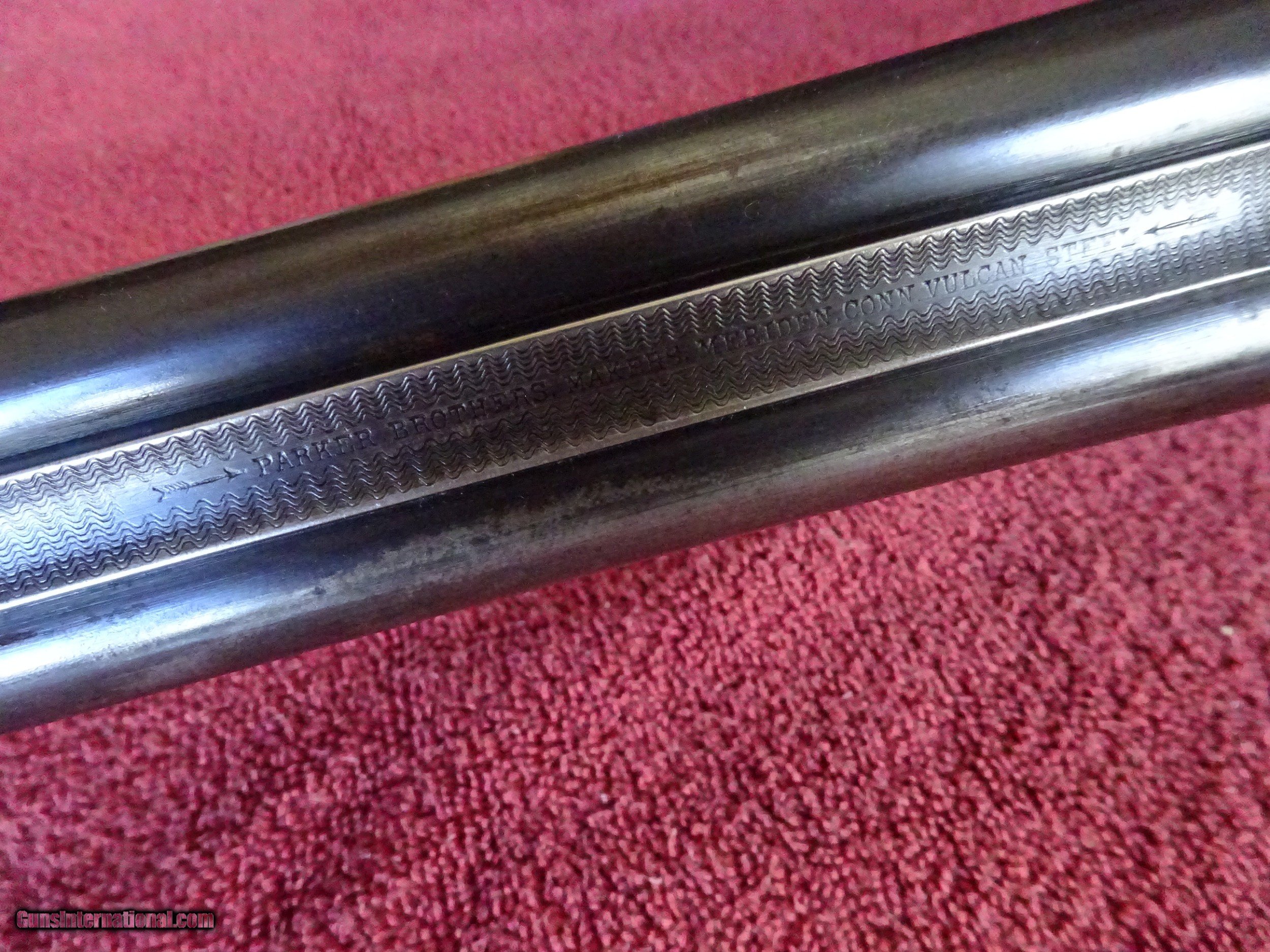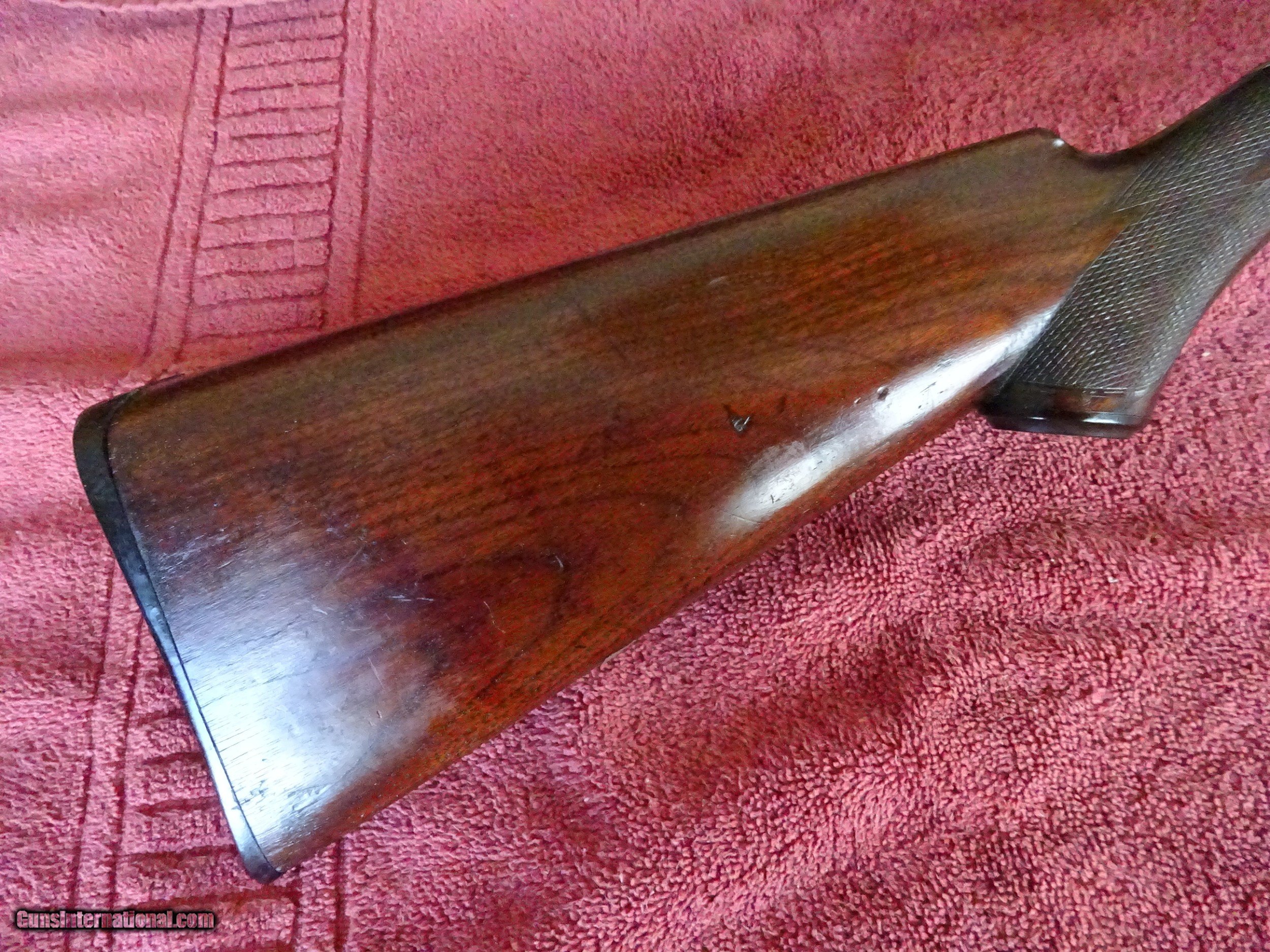 Description: PARKER VH GRADE 16 GAUGE. NUMBER 0 FRAME, 27" BARRELS, IMCYL. (.06) AND MODIFIED (.012), MIRROR BRIGHT BORES WITH NO DINGS OR DENTS, VERY GOOD BLUE, TWIN SIGHTS, JIM GARY STAMP, BARRELS RING NICELY. TOP LEVER TO THE FAR RIGHT, TIGHT ON FACE, PERFECT UNTURNED SCREWS, SOME BRIGHT CASE COLOR. PISTOL GRIP STOCK, SPLINTER FOREARM, VERY GOOD WOOD AND CHECKERING, DING IN THE GRIP ON LEFT SIDE. ORIGINAL GRIP CAP AND DOGHEAD BUTTPLATE, 1 1/2" X 2 3/4" X 14 1/4", 5 POUNDS 12 OUNCES. I ASSUME THE BARRELS LENGTH WAS ORIGINALLY 28". GREAT LITTLE RAINY DAY UPLAND GAME GUN, MADE IN 1917. $1950.00 + $50.00 Insured shipping to an FFL address. See all Pats gun listings on this site! We also have hundreds of pieces of ORIGINAL gun company advertising & memorabilia available for sale on our site SPORTINGCOLLECTIBLES. We have no reprints or reproductions. Email for more information. SOLD Curio/Relic: Yes |