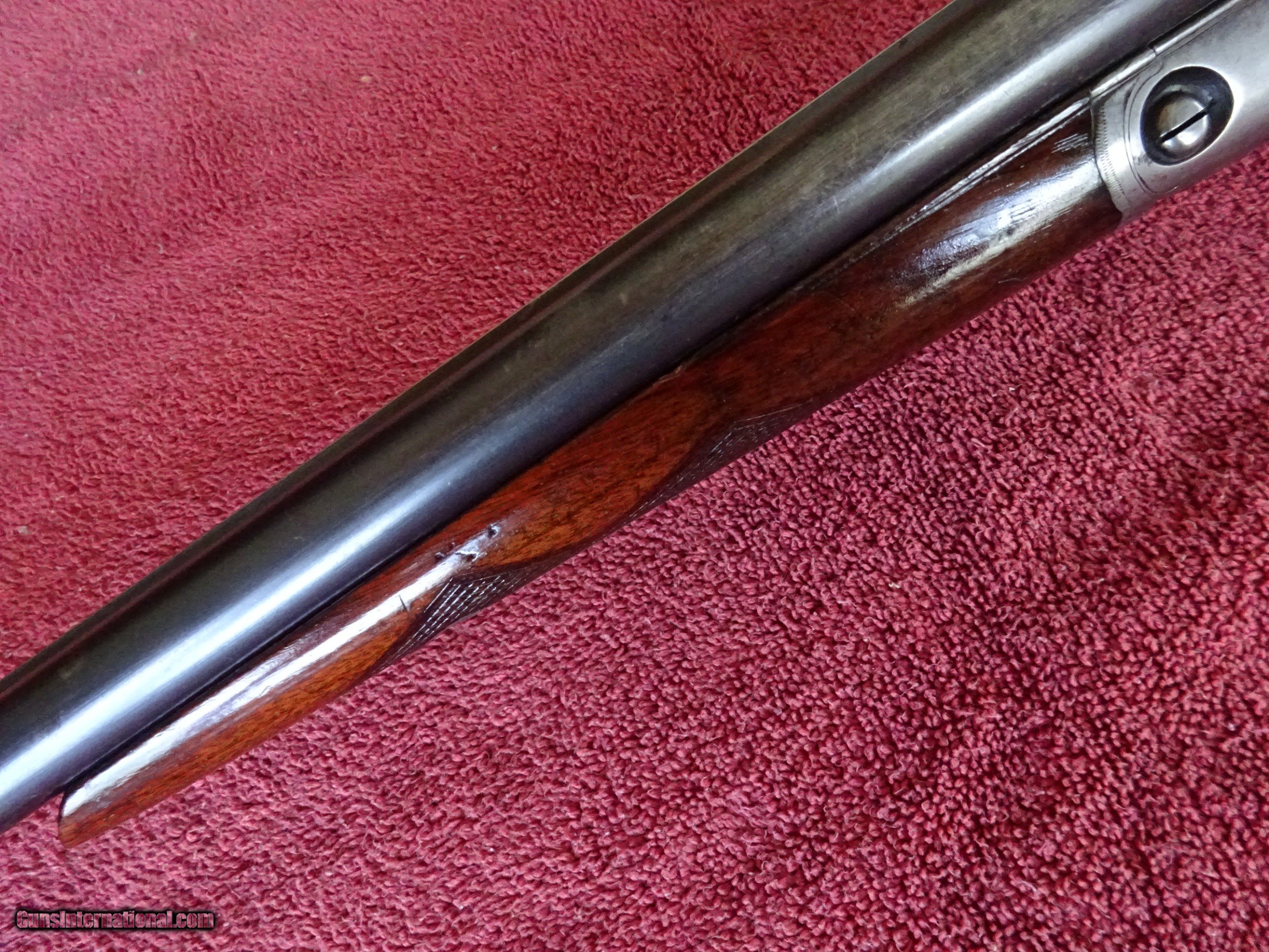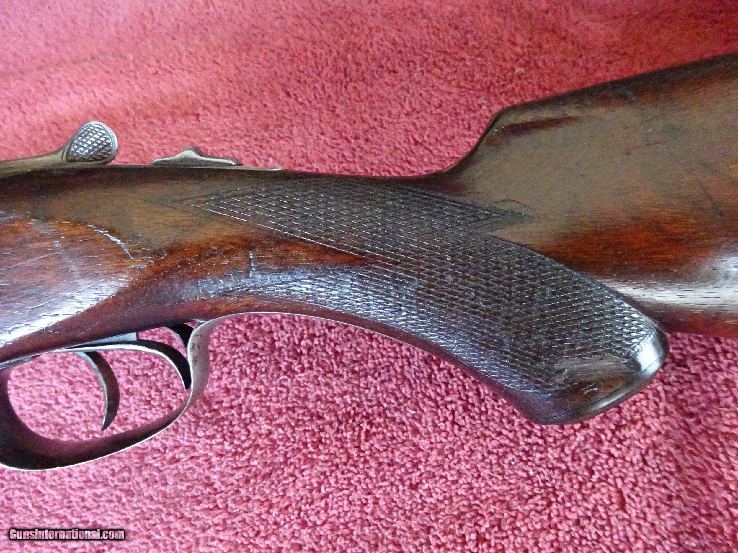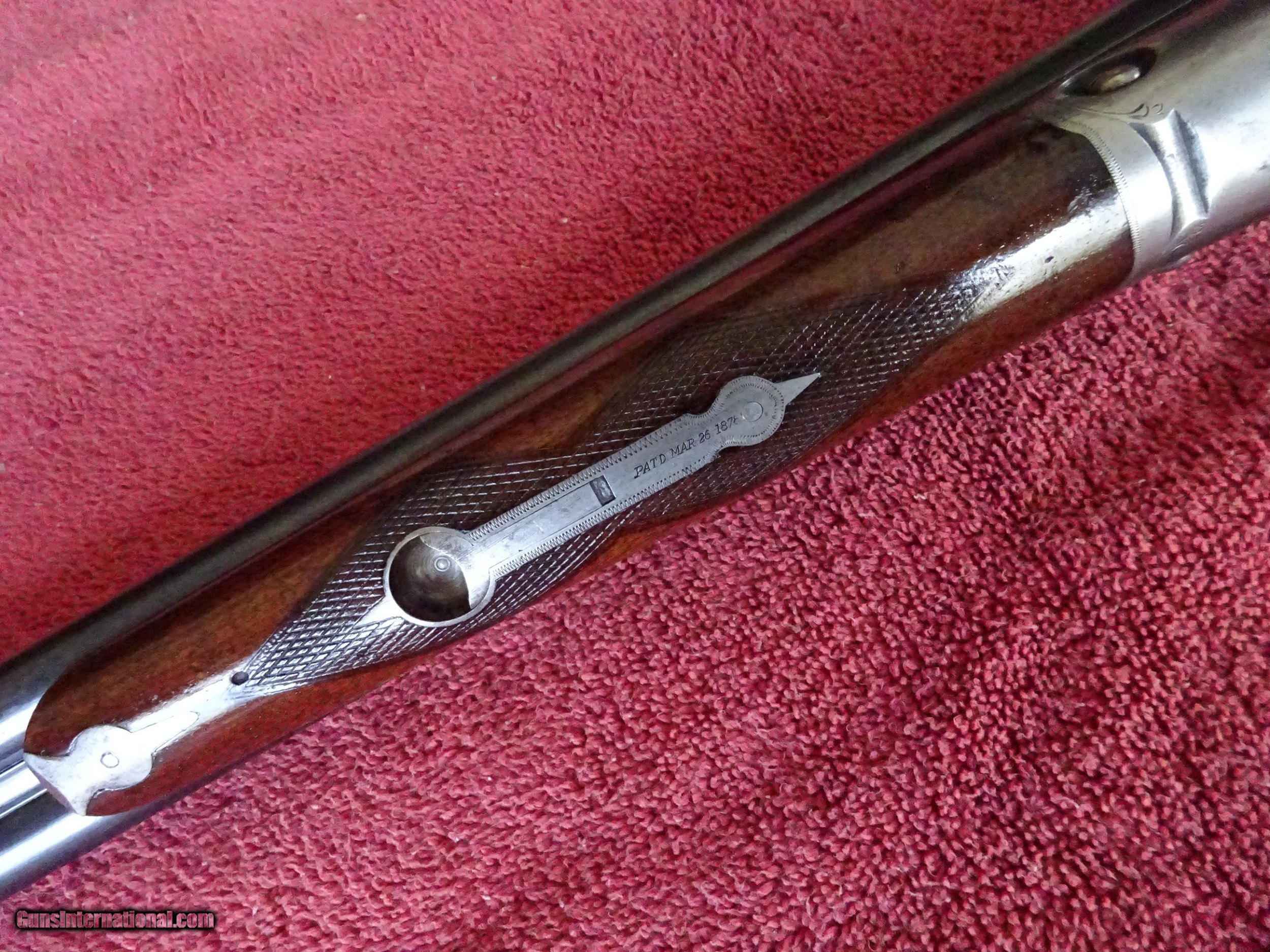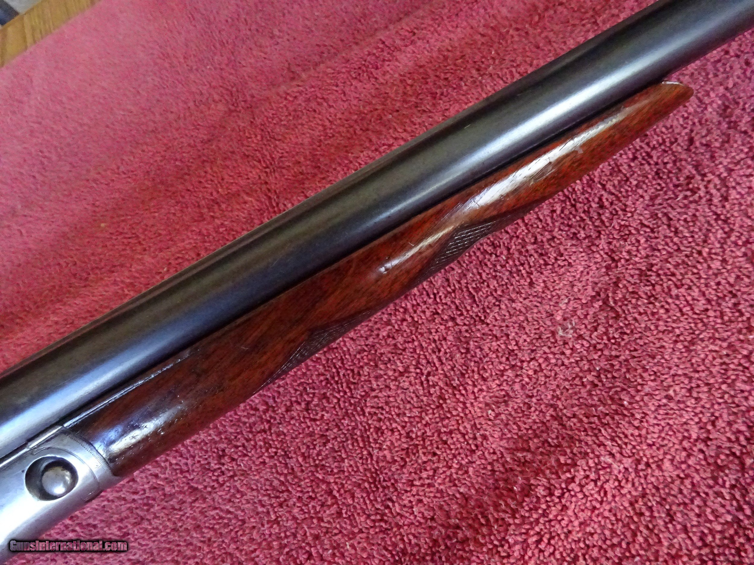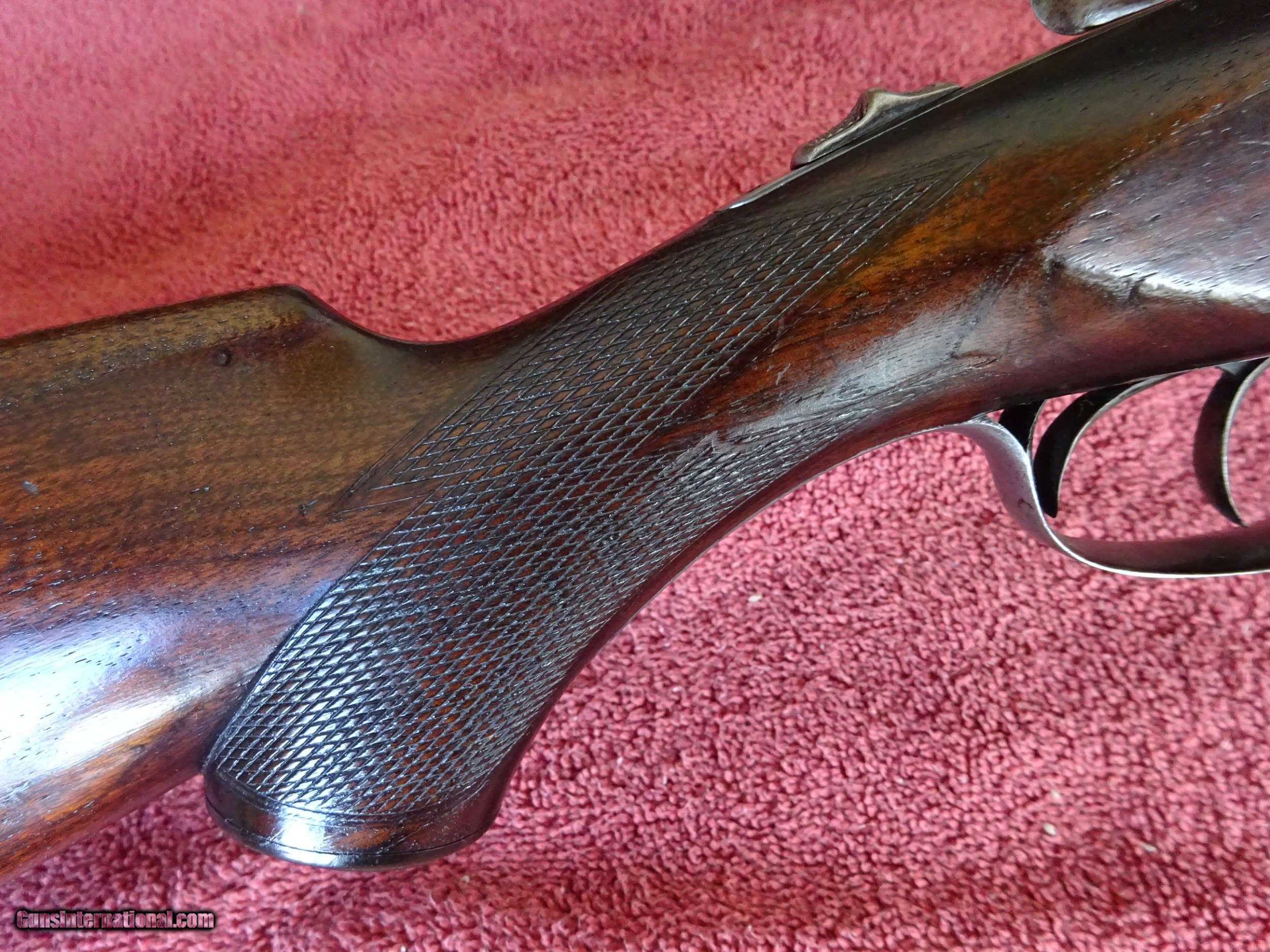 Description: PARKER VH GRADE 16 GAUGE. NUMBER 0 FRAME, 27" BARRELS, IMCYL. (.06) AND MODIFIED (.012), MIRROR BRIGHT BORES WITH NO DINGS OR DENTS, VERY GOOD BLUE, TWIN SIGHTS, JIM GARY STAMP, BARRELS RING NICELY. TOP LEVER TO THE FAR RIGHT, TIGHT ON FACE, PERFECT UNTURNED SCREWS, SOME BRIGHT CASE COLOR. PISTOL GRIP STOCK, SPLINTER FOREARM, VERY GOOD WOOD AND CHECKERING, DING IN THE GRIP ON LEFT SIDE. ORIGINAL GRIP CAP AND DOGHEAD BUTTPLATE, 1 1/2" X 2 3/4" X 14 1/4", 5 POUNDS 12 OUNCES. I ASSUME THE BARRELS LENGTH WAS ORIGINALLY 28". GREAT LITTLE RAINY DAY UPLAND GAME GUN, MADE IN 1917. $1950.00 + $50.00 Insured shipping to an FFL address. See all Pats gun listings on this site! We also have hundreds of pieces of ORIGINAL gun company advertising & memorabilia available for sale on our site SPORTINGCOLLECTIBLES. We have no reprints or reproductions. Email for more information. SOLD Curio/Relic: Yes |