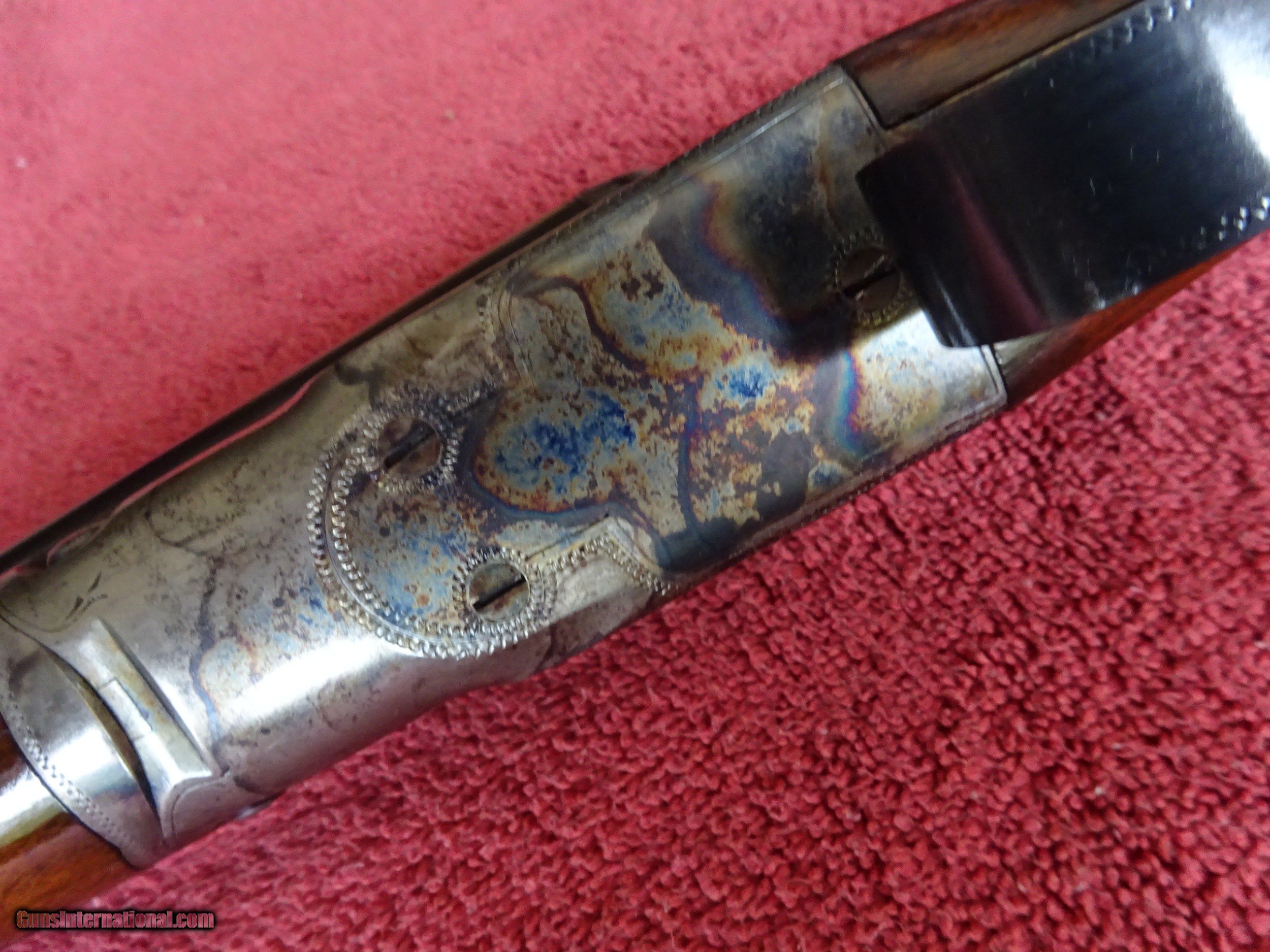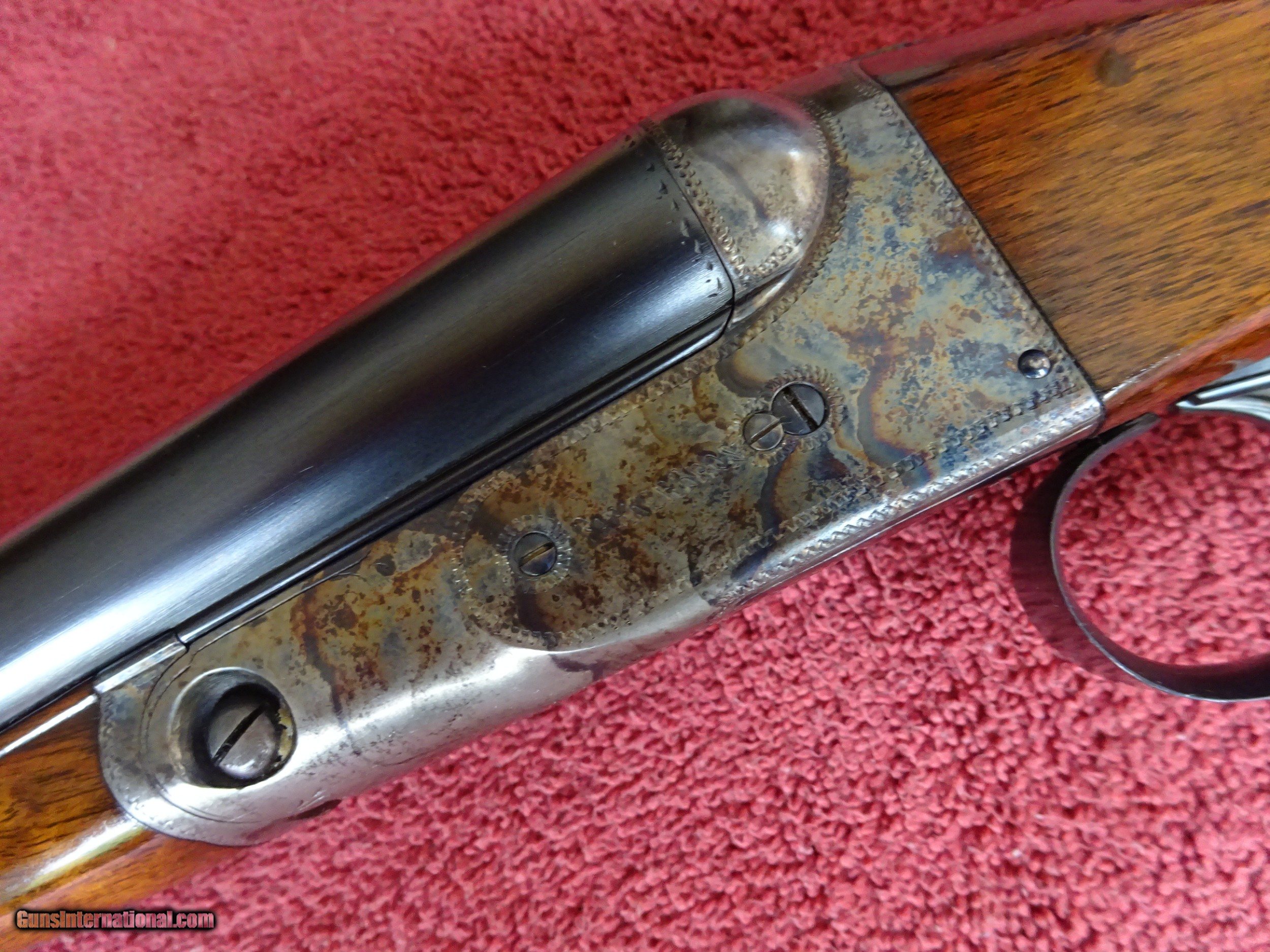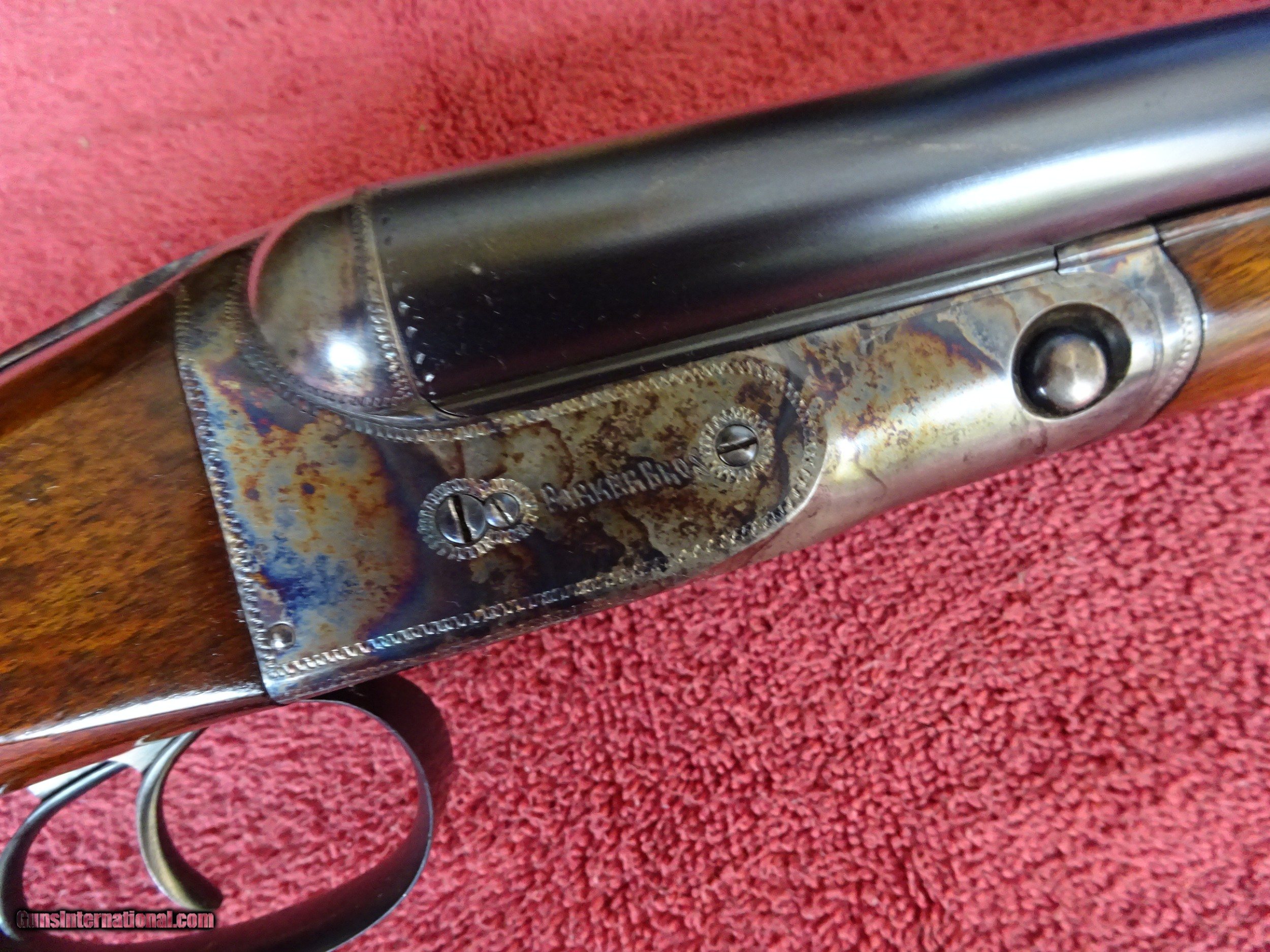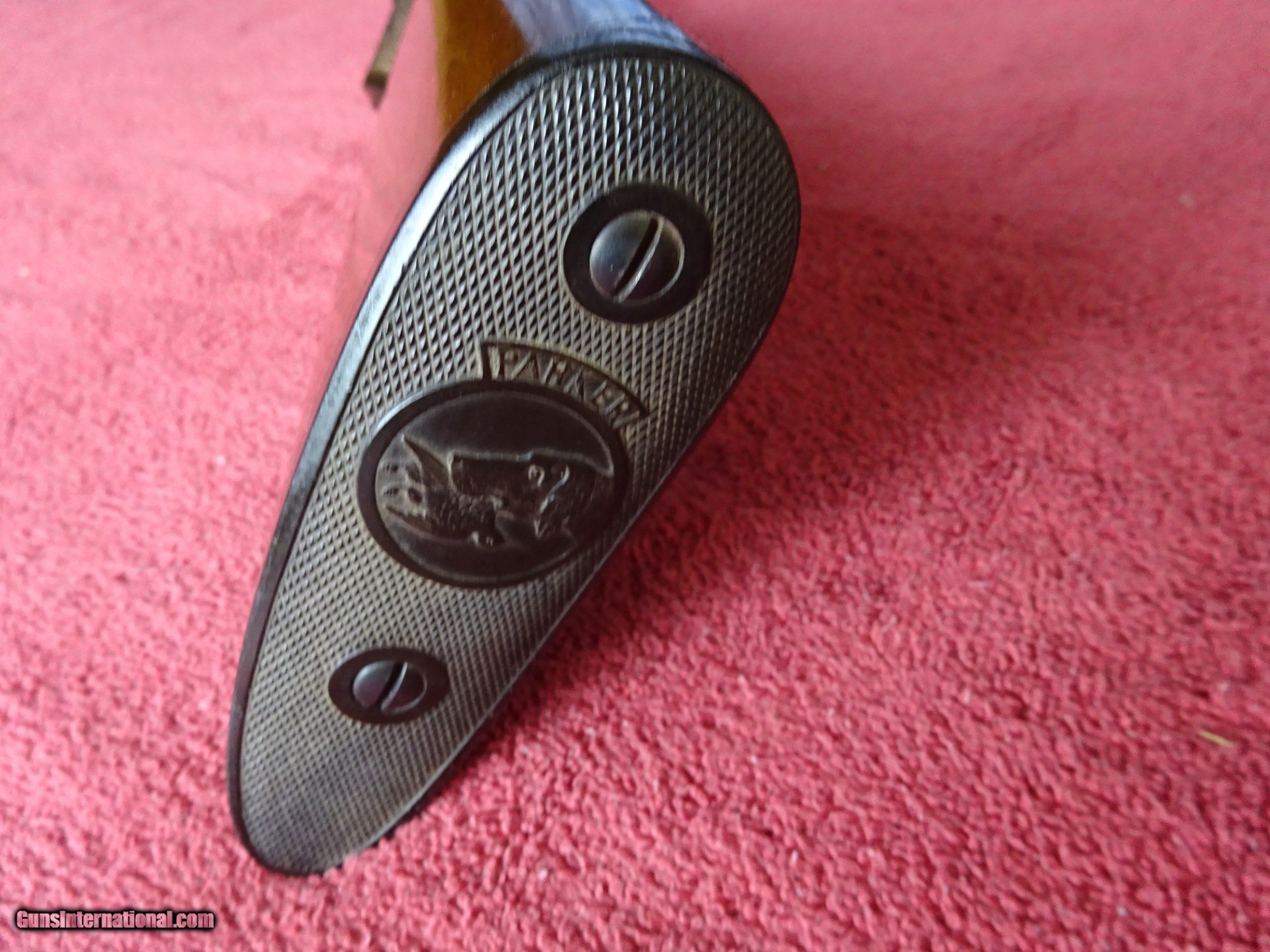 Description: PARKER VH GRADE 16 GAUGE, O FRAME, 28" BARRELS, FULL AND MODIFIED, 2 3/4" CHAMBERS, 100% BRIGHT BLUE, MIRROR PERFECT BORES, WALTER KING STAMP, BARRELS RING LIKE A BELL. VIRTUALLY PERFECT MARKINGS AND SCREWS. BOLD VIVID CASE COLOR, TOP LEVER TO THE FAR RIGHT, TIGHT AS NEW. WOOD TO METAL FIT IS PERFECT. PISTOL GRIP STOCK, SPLINTER FOREARM, EXCELLENT WOOD AND CHECKERING, ORIGINAL GRIP CAP AND DOGHEAD BUTTPLATE. GREAT DIMENSIONS, 1 1/2" X 2 3/8" X 14 1/4", 6 POUNDS 3 OUNCES. THE GUN WAS PROFESSIONALLY RESTORED, IT SHOWS NO SIGN OF USE. THE COST TODAY OF THIS TYPE OF RESTORATION WOULD BE $5000.00 PLUS. MADE IN 1910. $3500.00 + $50.00 Insured shipping to an FFL address. See all Pats listings We also have hundreds of pieces of ORIGINAL gun company advertising & memorabilia available for sale. We have no reprints or reproductions. Email for more information. SOLD Curio/Relic: Yes Serial Number: 149xxx |