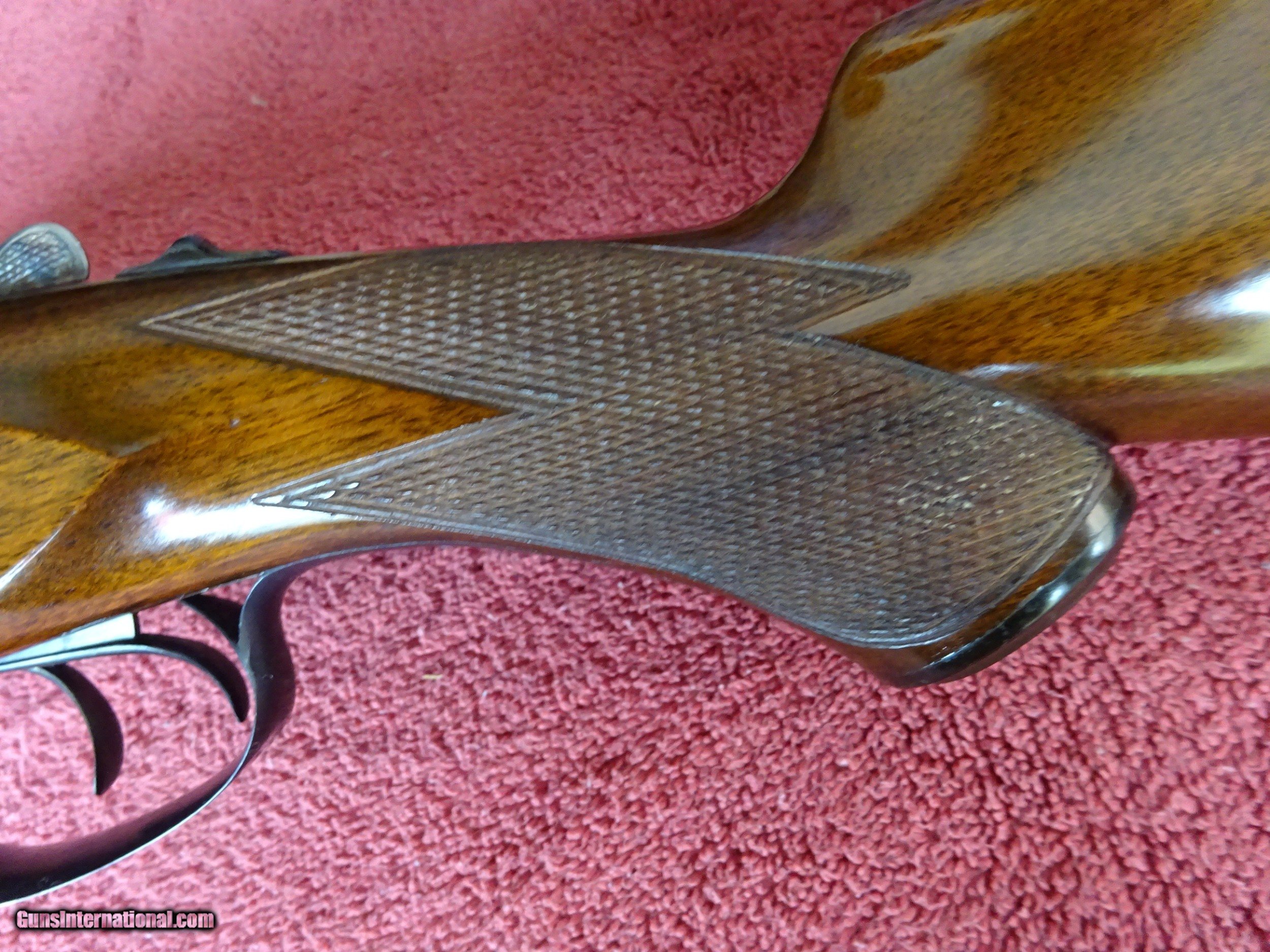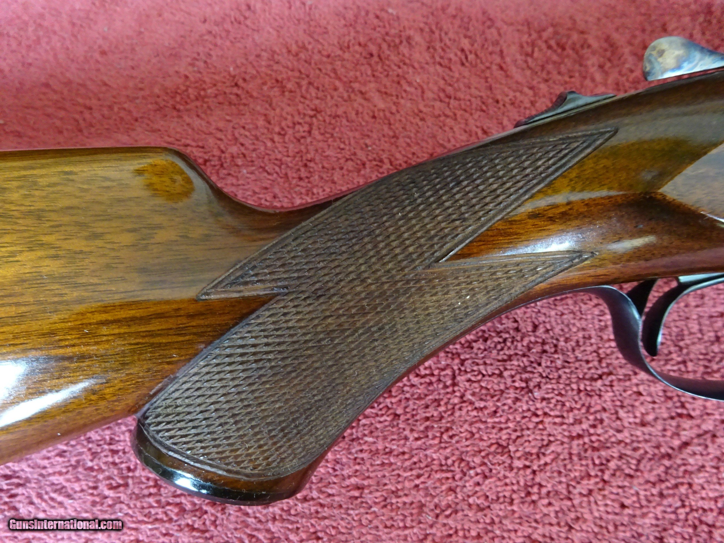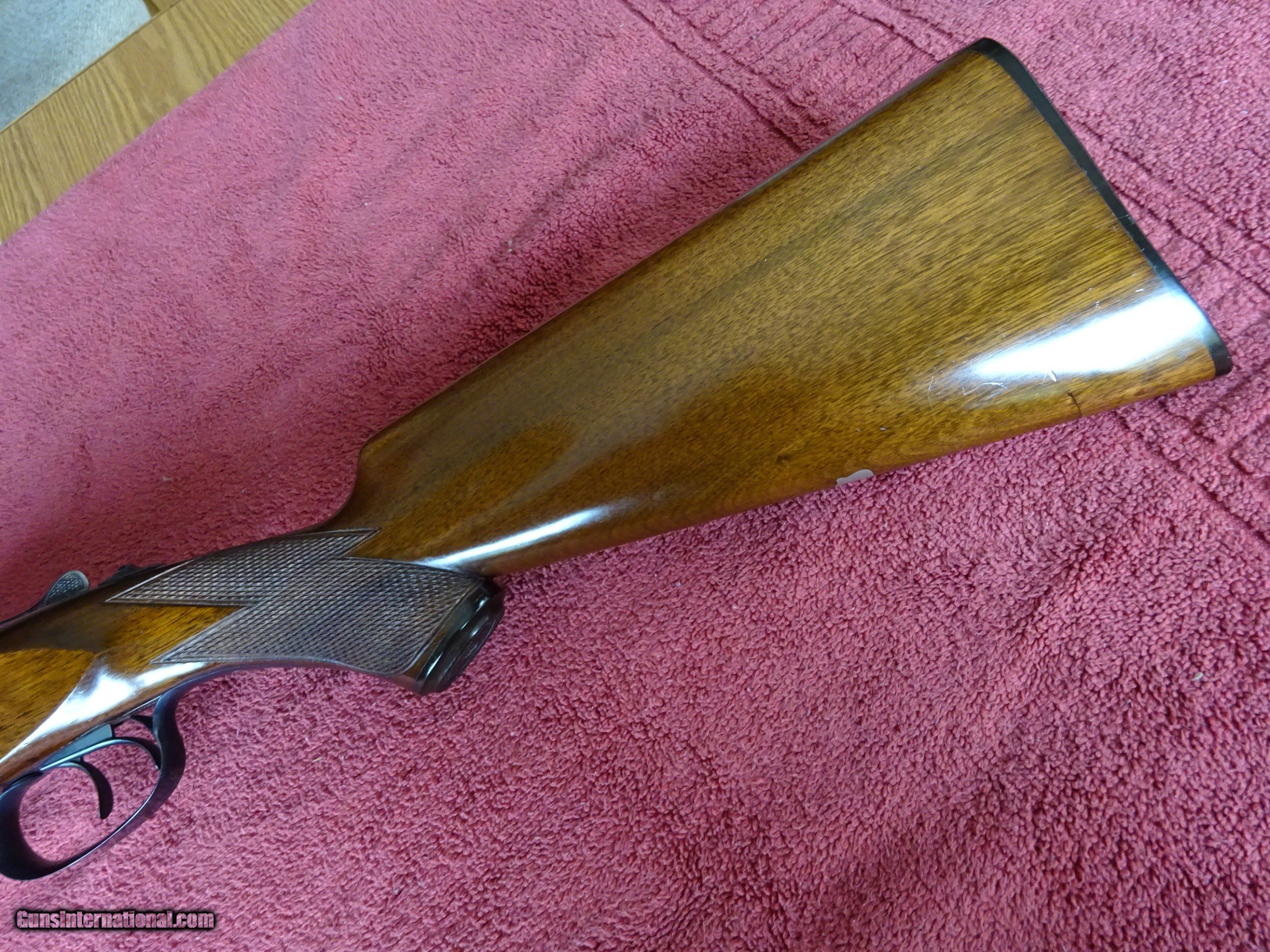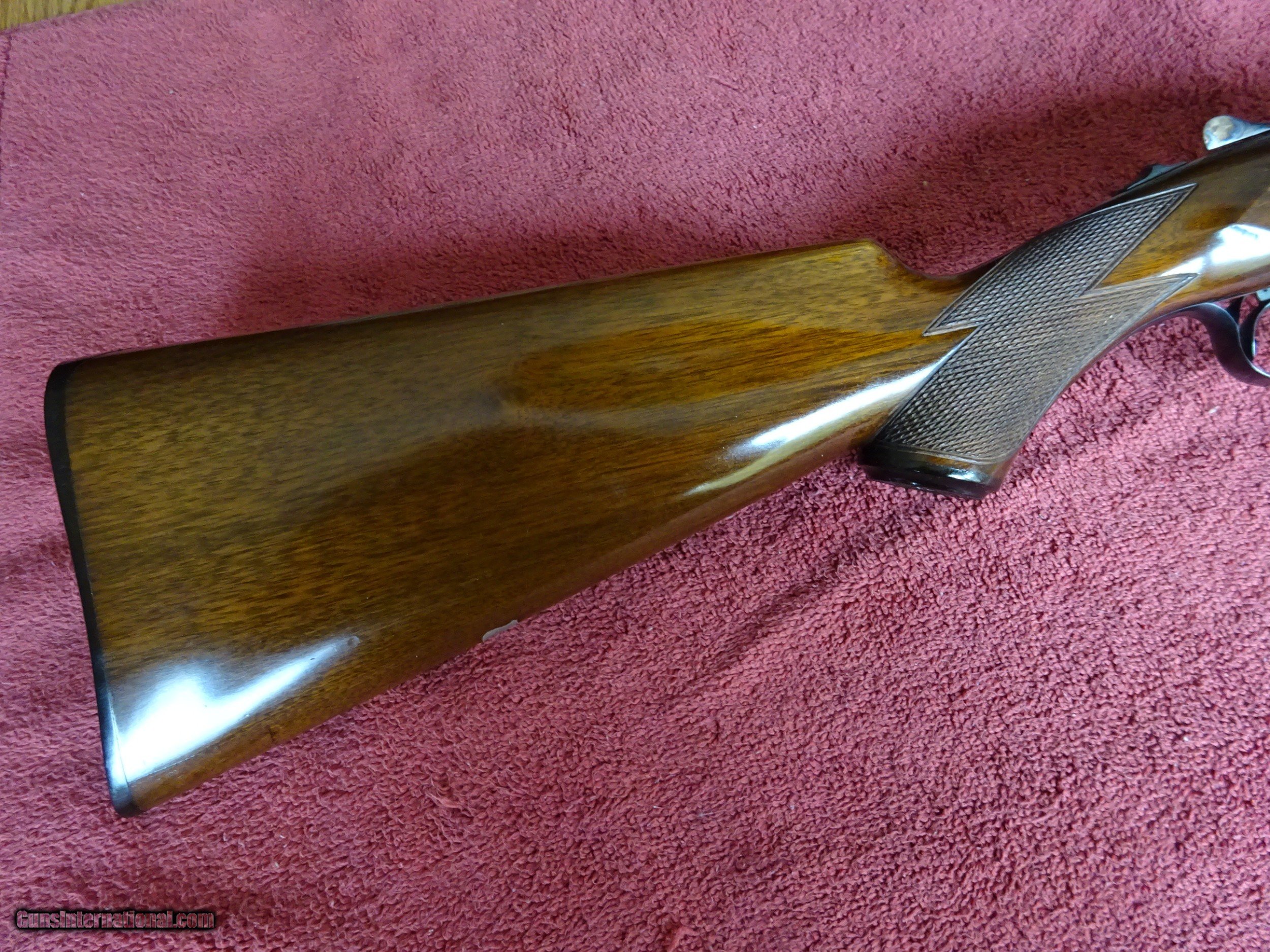 Description: PARKER VH GRADE 16 GAUGE, O FRAME, 28" BARRELS, FULL AND MODIFIED, 2 3/4" CHAMBERS, 100% BRIGHT BLUE, MIRROR PERFECT BORES, WALTER KING STAMP, BARRELS RING LIKE A BELL. VIRTUALLY PERFECT MARKINGS AND SCREWS. BOLD VIVID CASE COLOR, TOP LEVER TO THE FAR RIGHT, TIGHT AS NEW. WOOD TO METAL FIT IS PERFECT. PISTOL GRIP STOCK, SPLINTER FOREARM, EXCELLENT WOOD AND CHECKERING, ORIGINAL GRIP CAP AND DOGHEAD BUTTPLATE. GREAT DIMENSIONS, 1 1/2" X 2 3/8" X 14 1/4", 6 POUNDS 3 OUNCES. THE GUN WAS PROFESSIONALLY RESTORED, IT SHOWS NO SIGN OF USE. THE COST TODAY OF THIS TYPE OF RESTORATION WOULD BE $5000.00 PLUS. MADE IN 1910. $3500.00 + $50.00 Insured shipping to an FFL address. See all Pats listings We also have hundreds of pieces of ORIGINAL gun company advertising & memorabilia available for sale. We have no reprints or reproductions. Email for more information. SOLD Curio/Relic: Yes Serial Number: 149xxx |