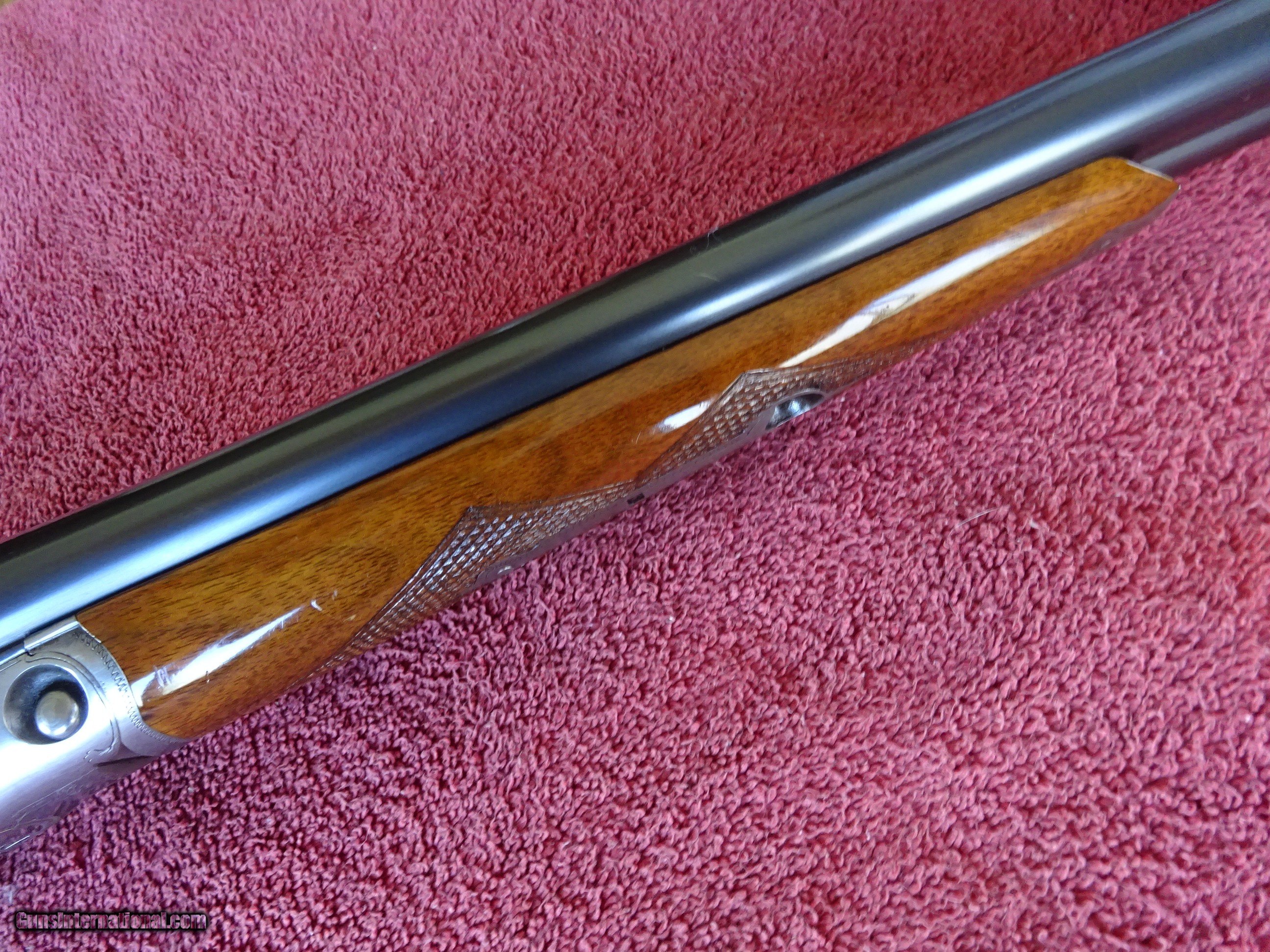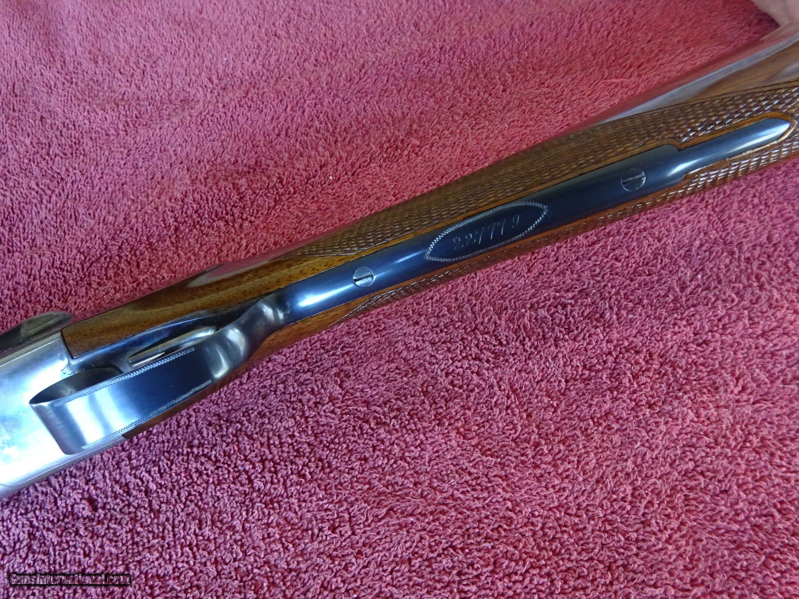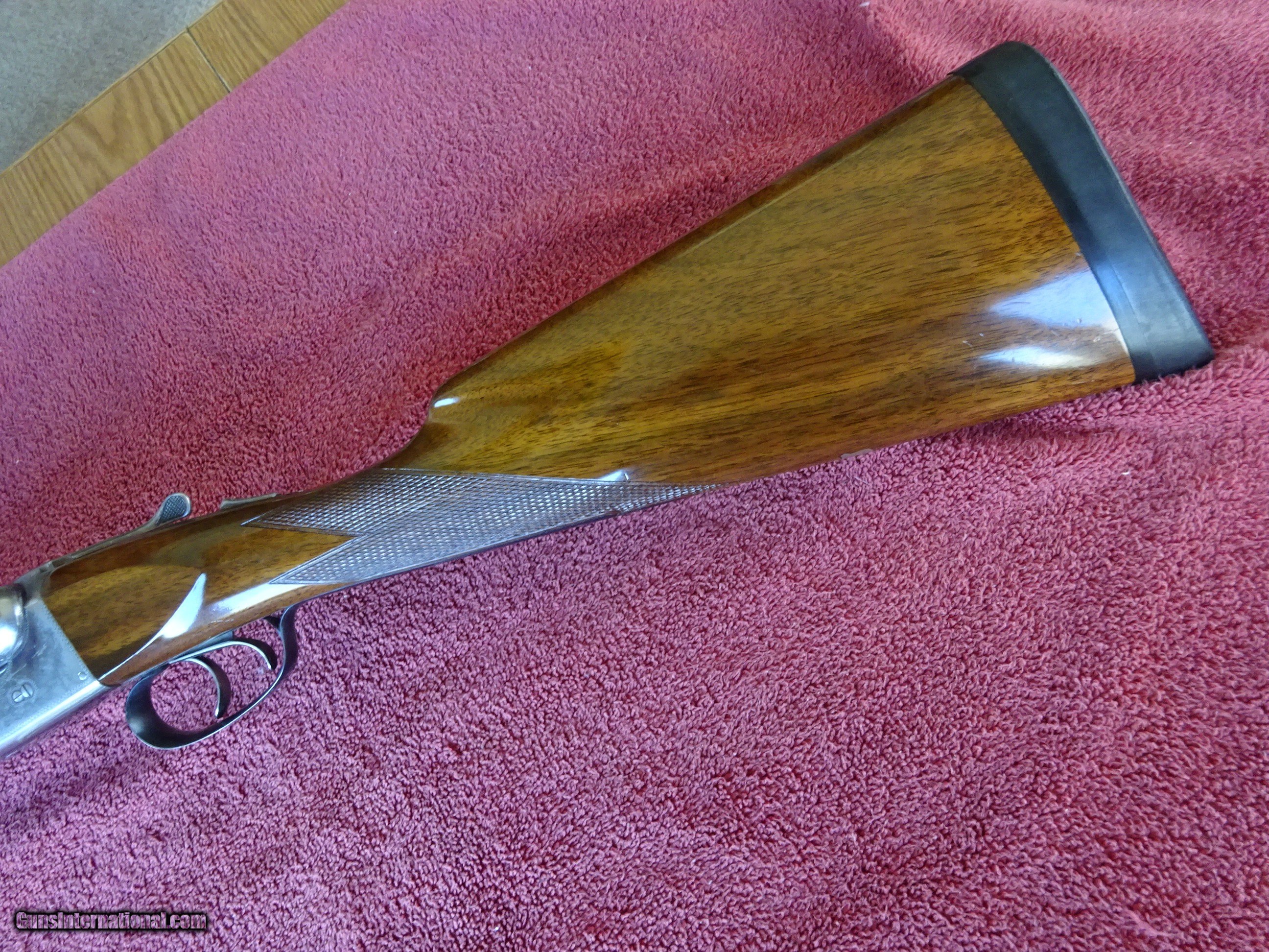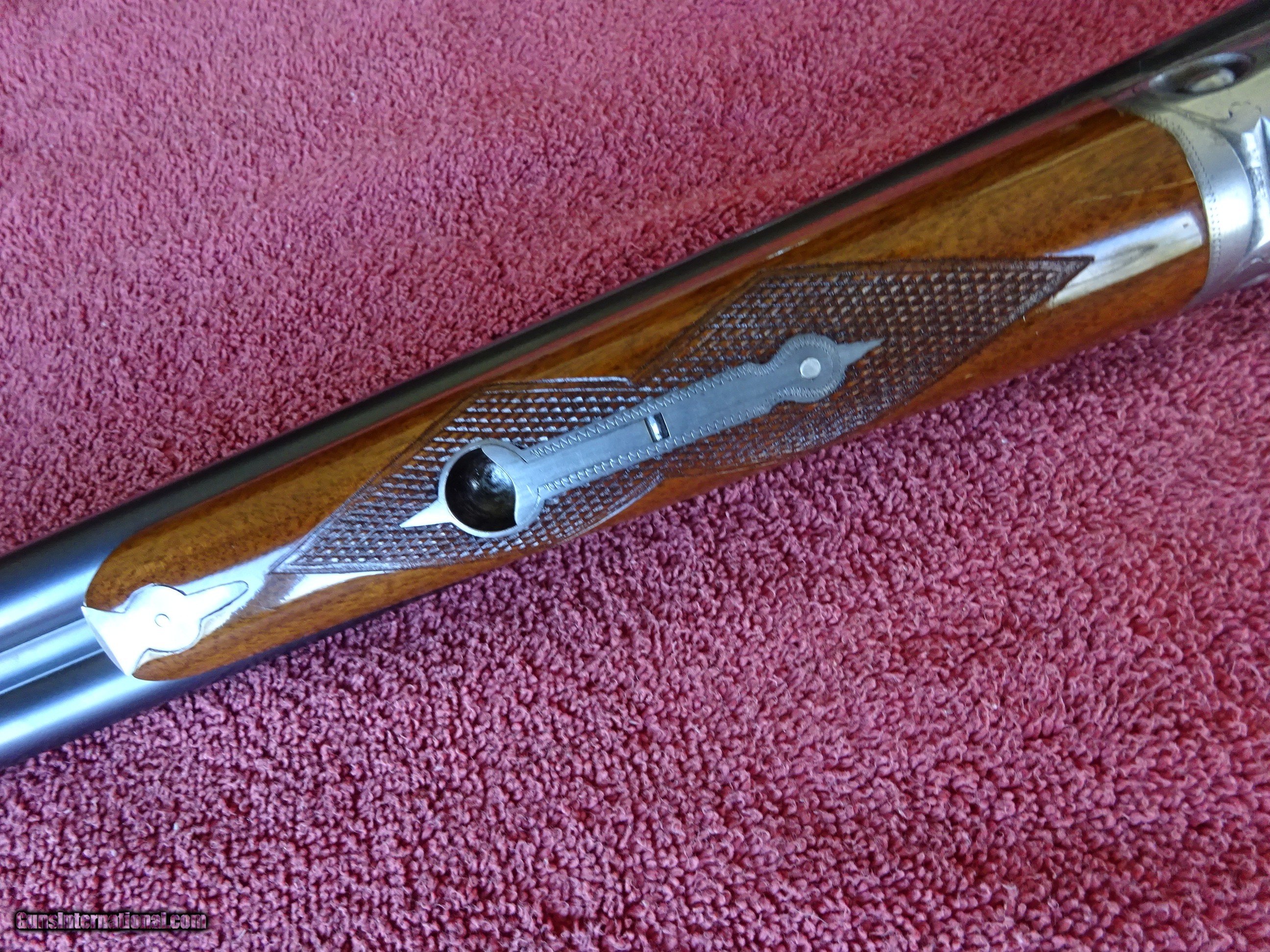 Description: PARKER VH GRADE 16 GAUGE, 28" VULCAN STEEL BARRELS, MODIFIED (.020) AND FULL (.032), 3" CHAMBERS. STAMPED "OVERLOAD PARKER PROVED". MIRROR PERFECT BORES, BARRELS RING LIKE A BELL. IVORY BEAD SIGHT, EXTRACTORS. AUTO-SAFETY, BOXLOCK FRAME, VIVID CASE COLOR IN THE PROTECTED AREAS. PERFECT SCREWS, TIGHT ON FACE. NUMBER ONE FRAME. STRAIGHT GRIP STOCK, SPLINTER FOREARM. EXCELLENT WOOD AND CHECKERING. GREAT DIMENSIONS, 1 1/4" X 2 1/4" X 14 1/2", LEATHER FACED RECOIL PAD, 6 POUNDS 10 OUNCES. MADE IN 1928. ORIGINAL STRAIGHT STOCK VH GRADE PARKERS SELDOM COME UP FOR SALE, NICE GUN. $2750.00 + $70.00 Insured shipping to an FFL address. Layaway is available. See all Pats gun listings on this site! We also have hundreds of ORIGINAL gun company advertising & memorabilia pieces available for sale on our site SPORTINGCOLLECTIBLES. We have no reprints or reproductions. Email for more information. If you need to call, morning or evening is best, and please note the Seller's Inventory number. SOLD Curio/Relic: Yes |