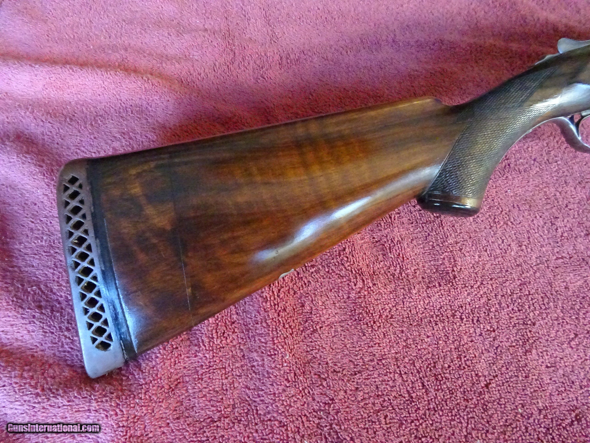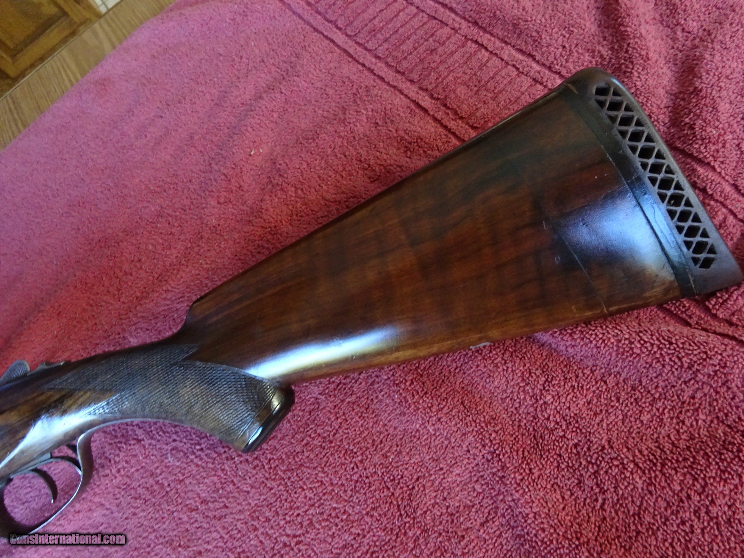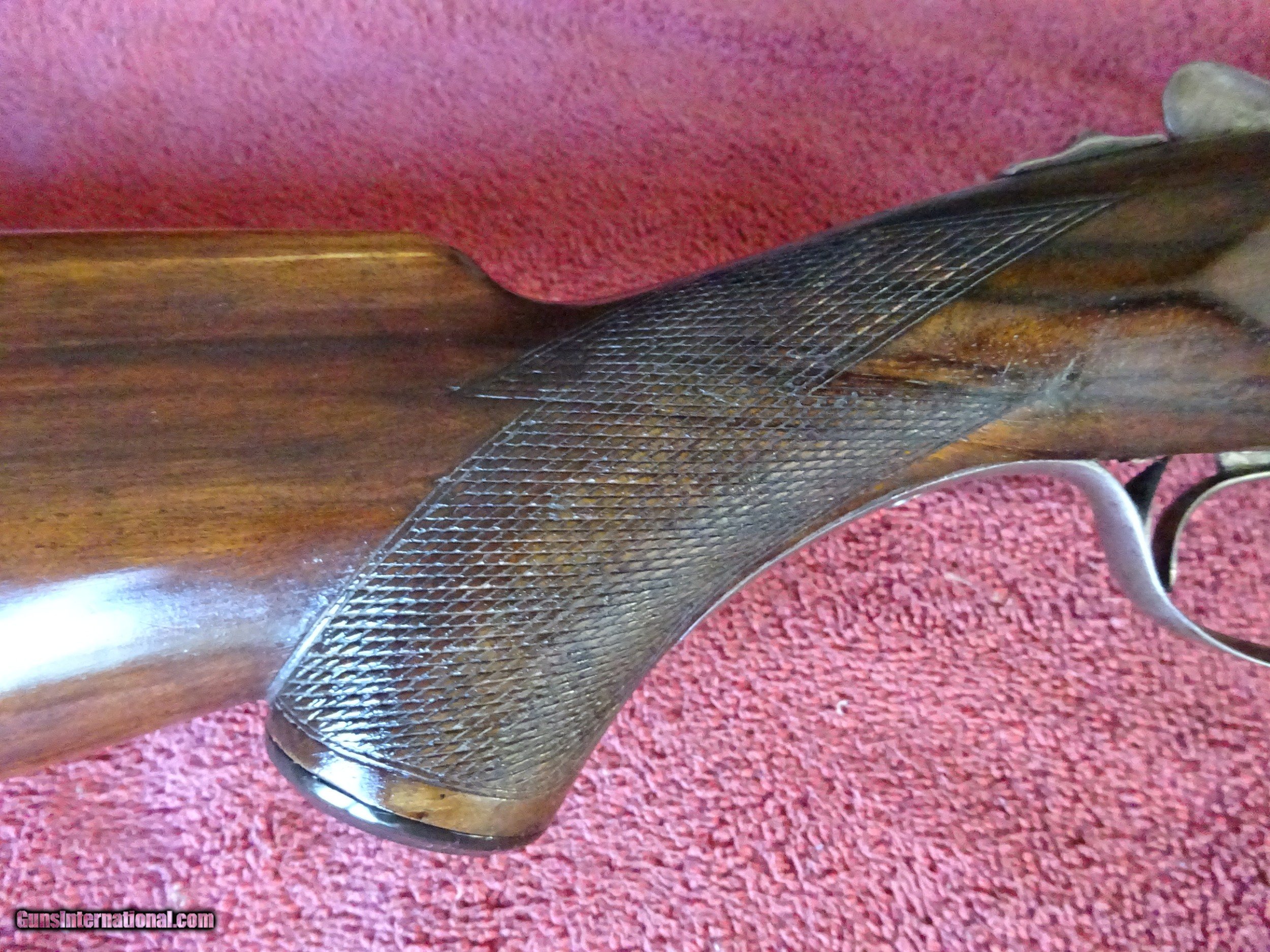Description: PARKER VH GRADE 20 GAUGE. 28" BARRELS, IM.MOD AND IM. MOD, THIN BLUE, 2 1/2" CHAMBERS. LIGHTLY PITTED BORES, BARRELS RING LIKE A BELL. NO. 0 FRAME, ALL SCREWS EXCEPT THE FLOOR PLATE ARE EXCELLENT, TOP LEVER IS TO THE RIGHT, TIGHT ON FACE. PISTOL GRIP STOCK, SPLINTER FOREARM, BUTTSTOCK WAS CUT 1 1/2" AND THE PIECE REATTACHED. 14 1/2" LENGTH OF FULL. LOTS OF DROP. GREAT FOUL WEATHER PARKER. $1500.00 + $50.00 Insured shipping to an FFL address. See all Pats gun listings on this site! We also have hundreds of pieces of ORIGINAL gun company advertising & memorabilia available for sale on our site SPORTINGCOLLECTIBLES. We have no reprints or reproductions. Email for more information. SOLD Curio/Relic: Yes |