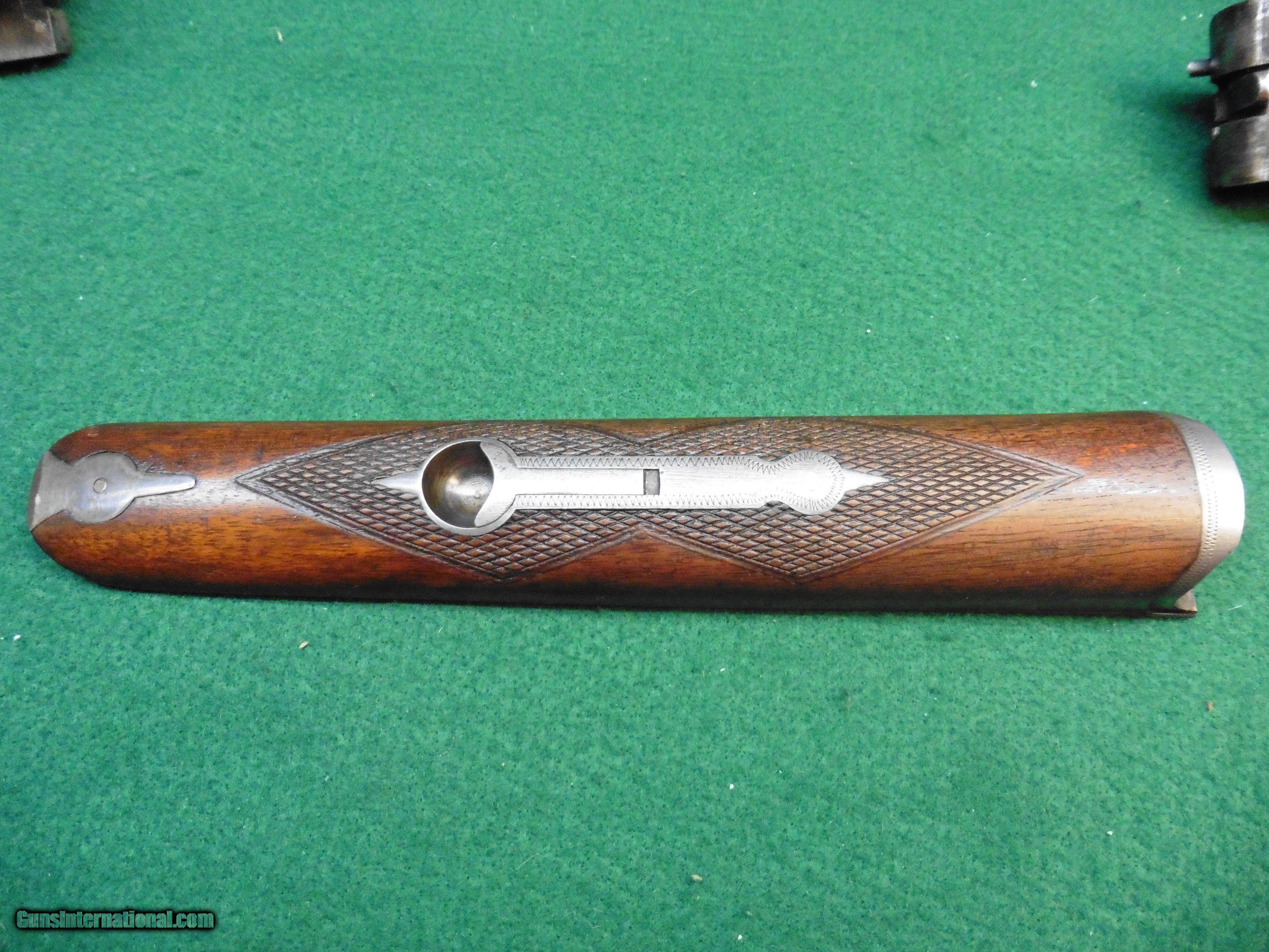 Description: Classic side by side from Parker Bros. This is a VH grade in 20Ga with 28" barrels. Pistol grip hardwood stock with splinter forend. Double triggers with extractor and tang safety. Serial 2209xx places date of manufacture in 1927. Fixed choke (Mod/Full). Factory grip plate. Aftermarket butt pad. Stock is original with honest wear. Scratches and dings from years of use but no cracks. Bores are shiny and in good condition. Right barrel has one small ding that is slightly evident in barrel chamber but should not have any effect on pattern and function. Center rib was fitted with mid length bead which is no longer present. Bead front sight. A nice example of American shotgun history. Shotgun is fully functional. Not a safe queen you can take this out and use it. 14" LOP. Nice petite lines. 6lbs 3oz. A great field gun! SOLD Curio/Relic: Yes Manufacturer: Parker Bros Model: VH Serial Number: 2209xx Caliber Info: 20Ga |