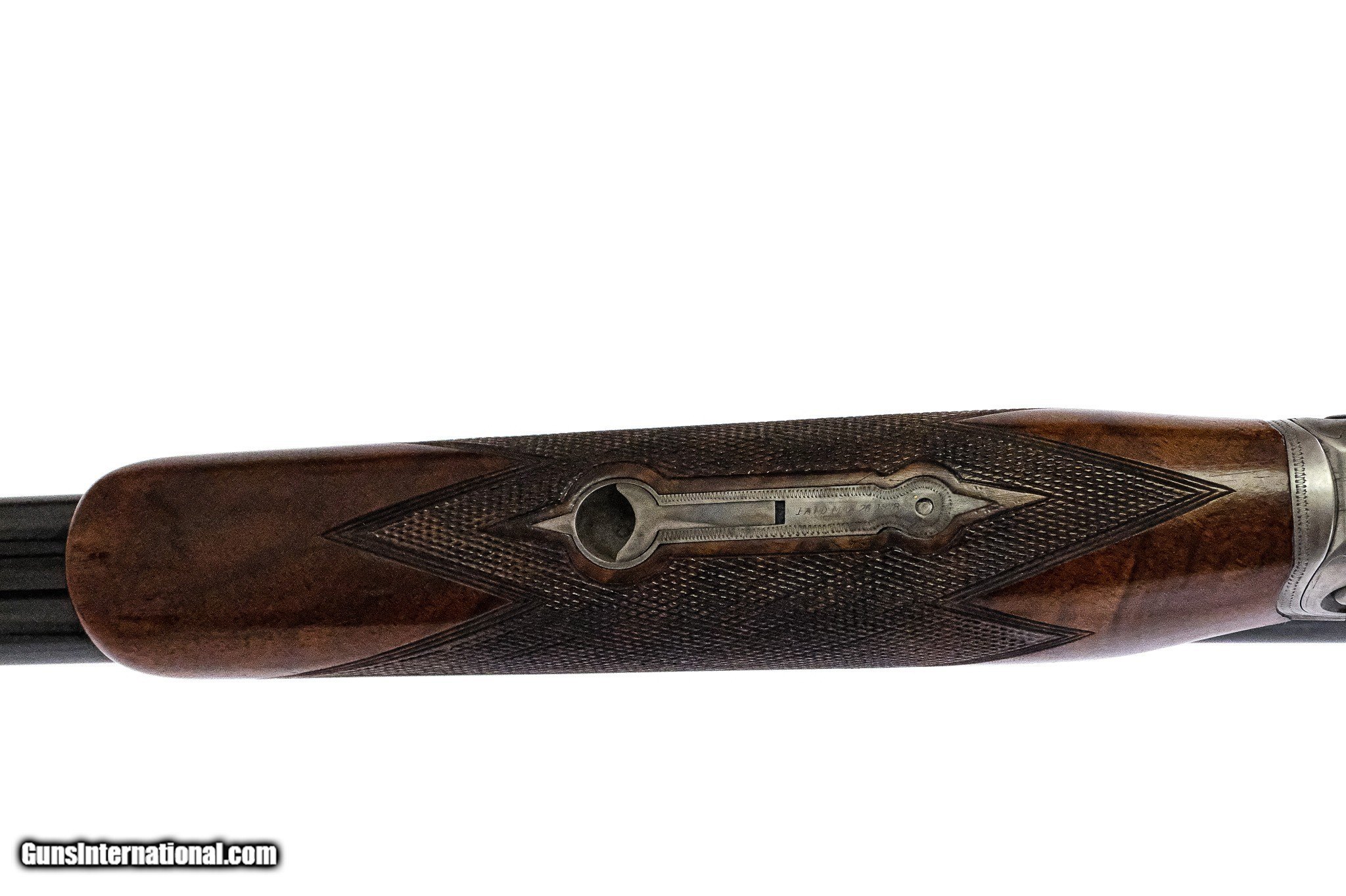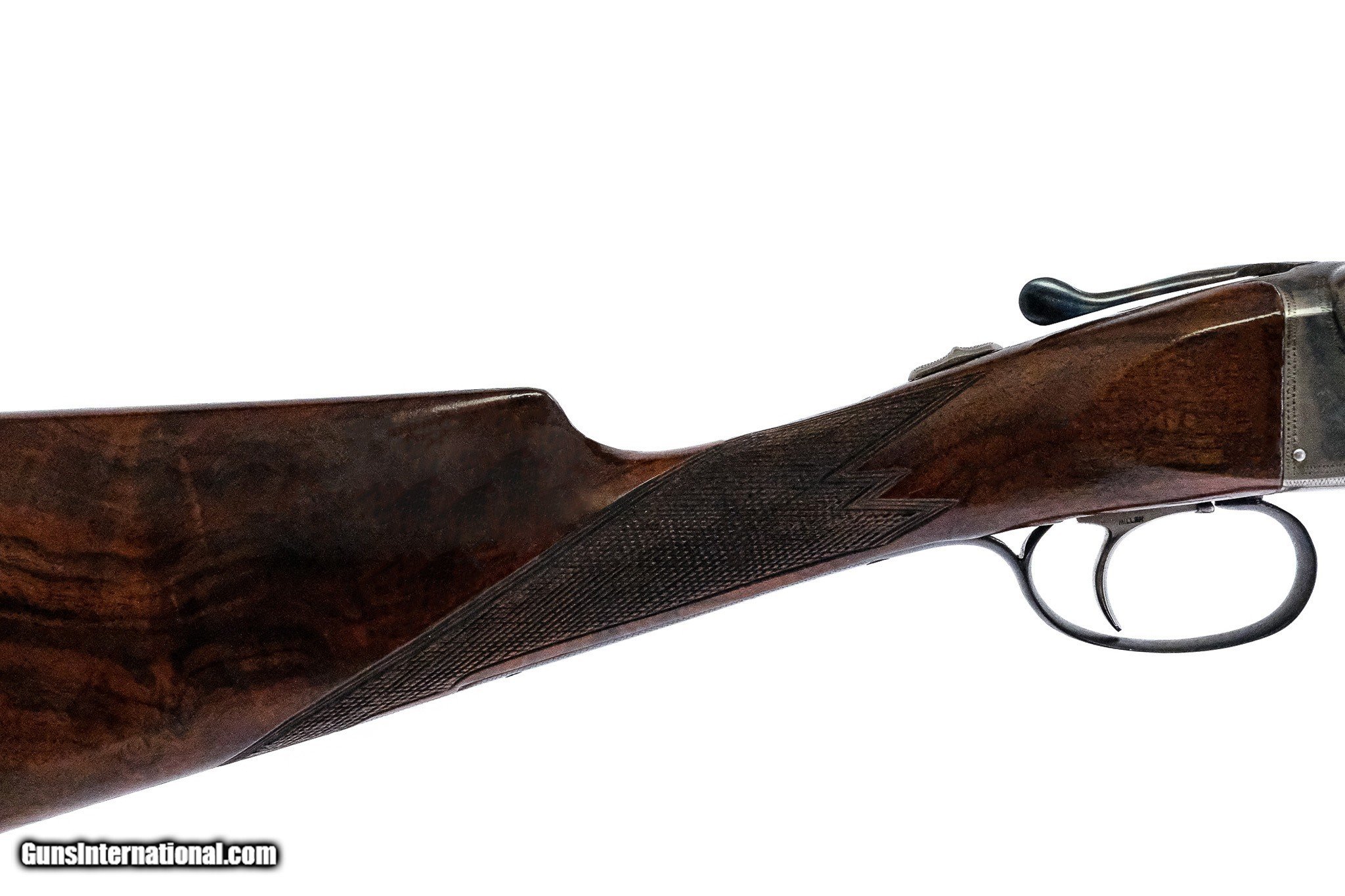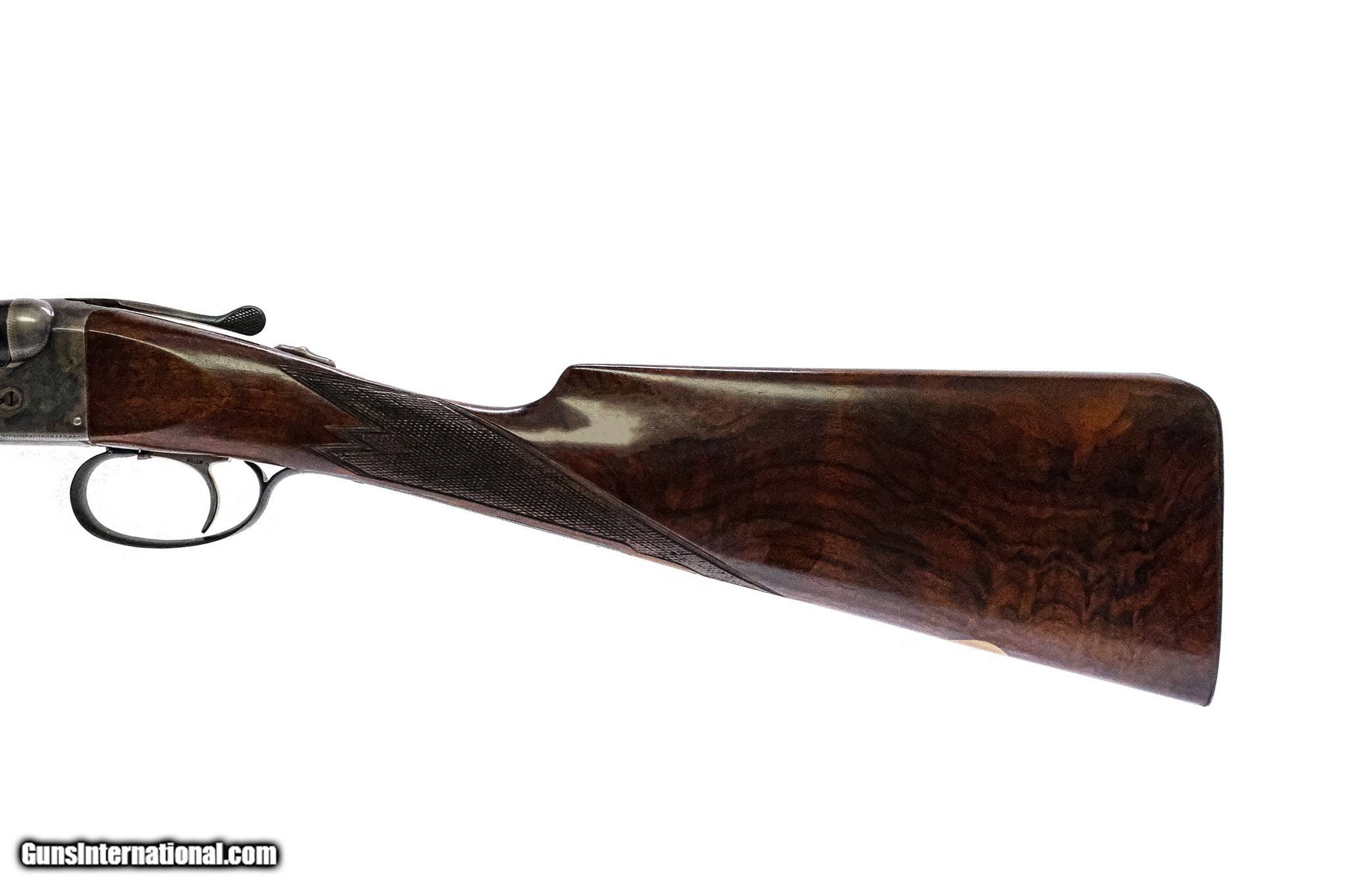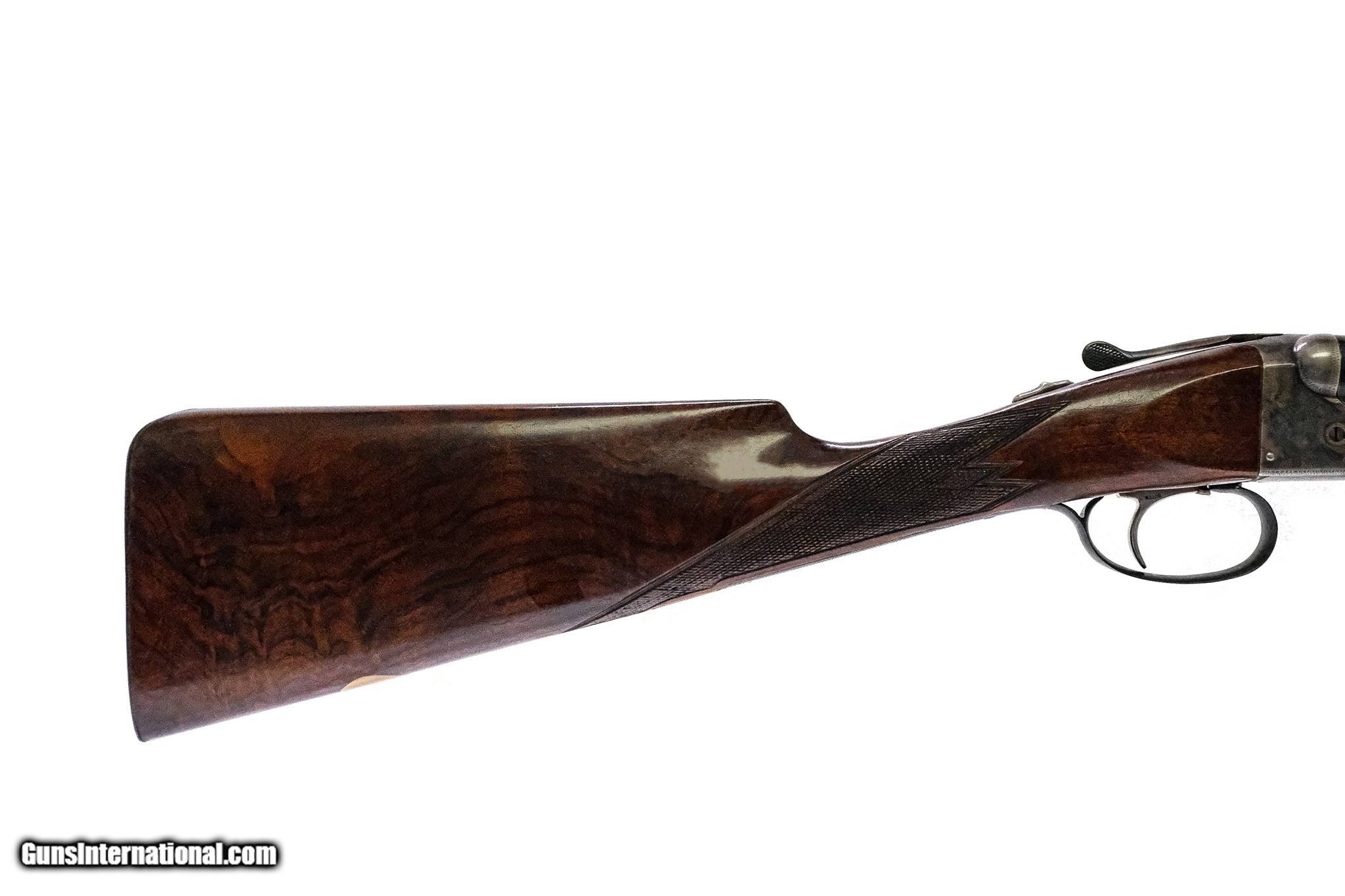 Description: Parker - VH Grade, SxS, 00 Frame, 28ga. 28" Vulcan Steel Barrels. Factory beavertail forend, straight grip stock, rare skeleton buttplate, believe this to be a restock but looks correct. Miller single selective trigger, wood finish is crazed with time, lots of case color! Inv: 70175 5 lbs. 10 oz. 14 3/8" x 1 ¼" x 2" $16,500.00 SOLD |