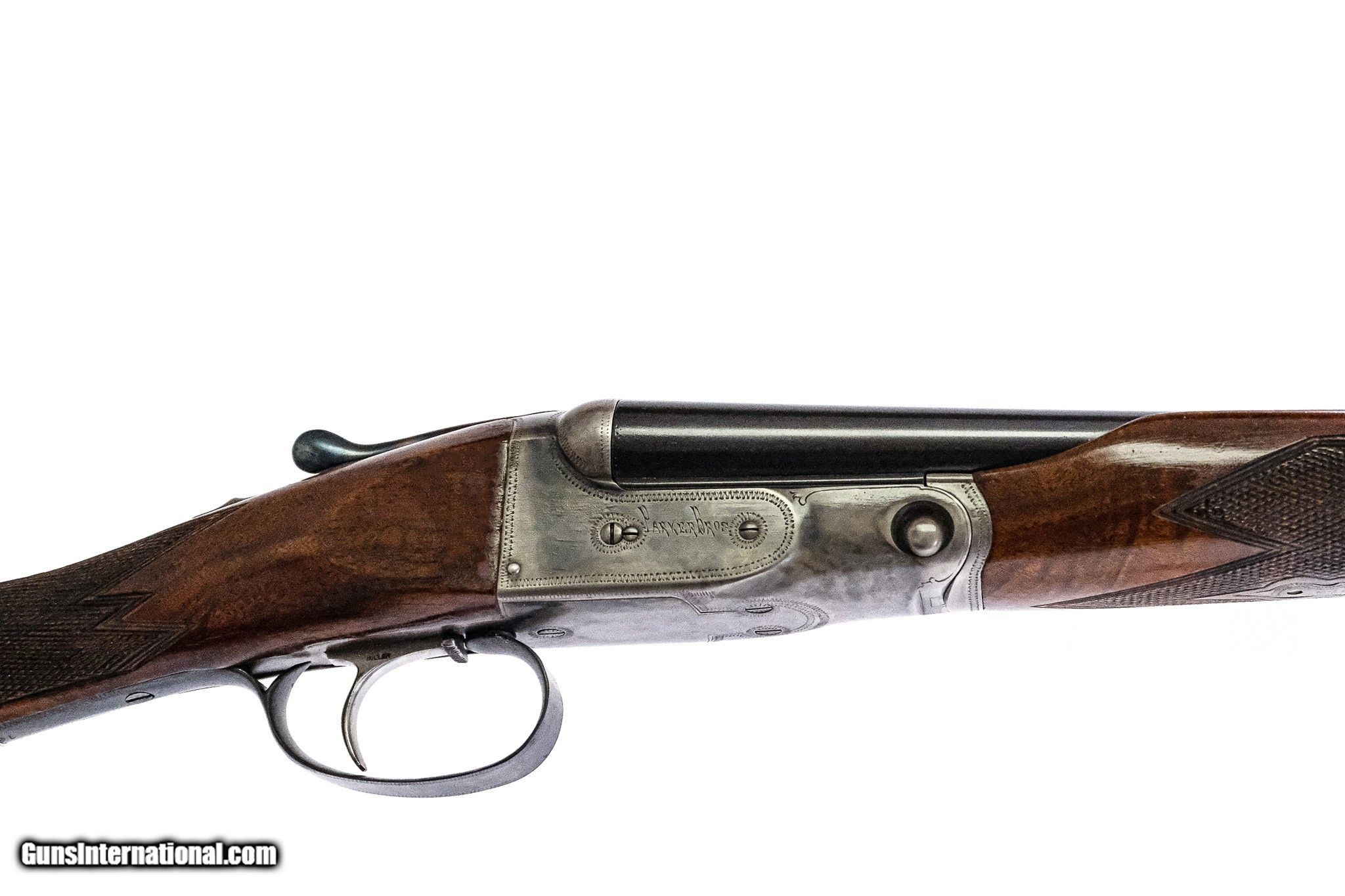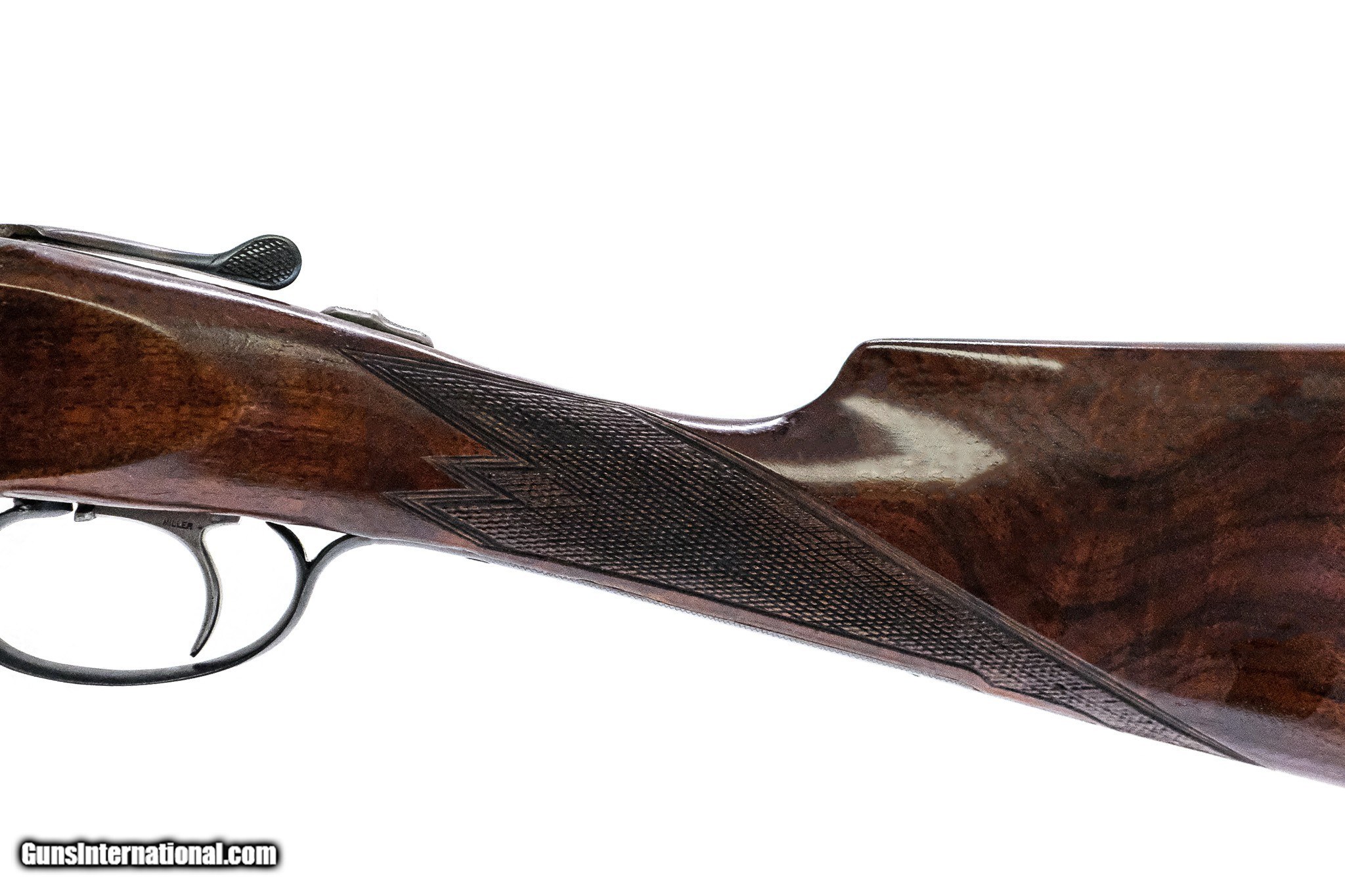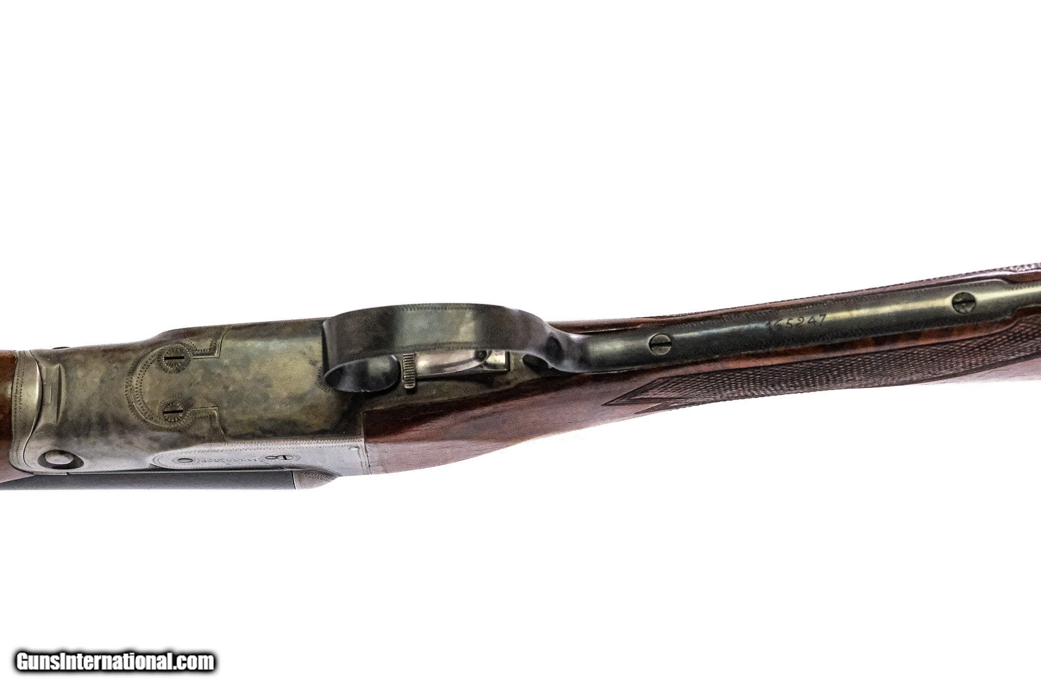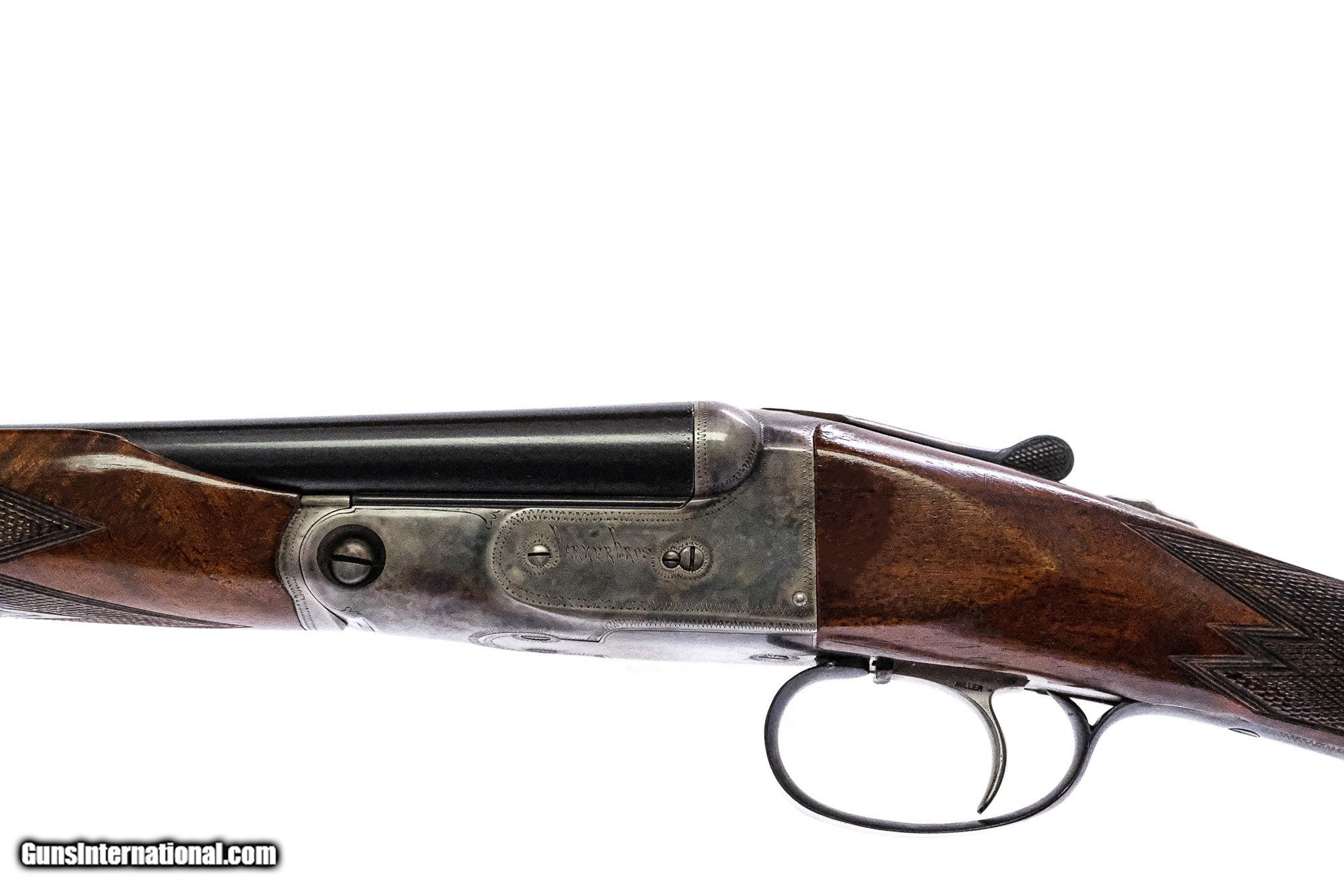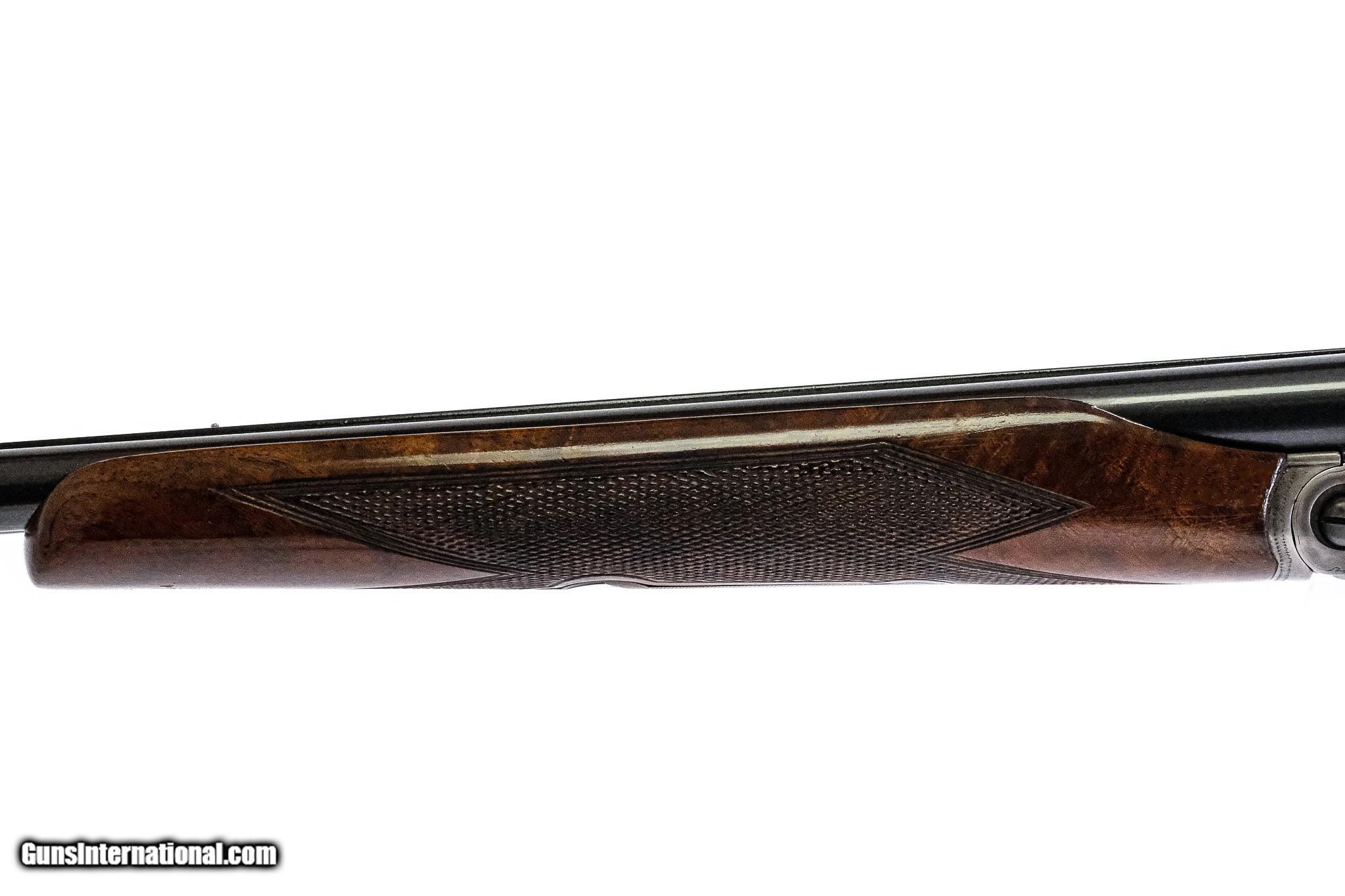 Description: Parker - VH Grade, SxS, 00 Frame, 28ga. 28" Vulcan Steel Barrels. Factory beavertail forend, straight grip stock, rare skeleton buttplate, believe this to be a restock but looks correct. Miller single selective trigger, wood finish is crazed with time, lots of case color! Inv: 70175 5 lbs. 10 oz. 14 3/8" x 1 ¼" x 2" $16,500.00 SOLD |
