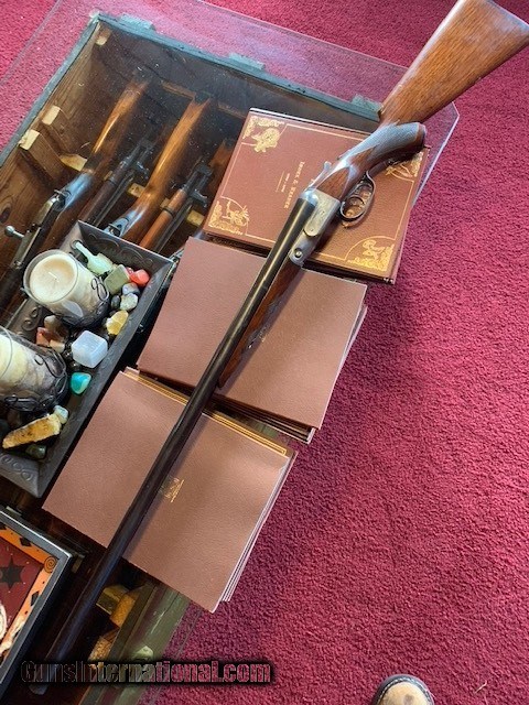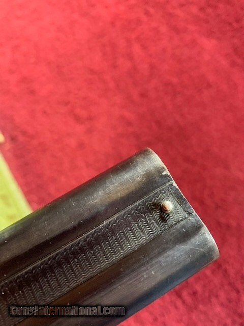 Description: 12 ga Parker, 28” barrels choked improved mod and full. (30&40 thous). 1 1/2 frame, Original chambers at 2 5/8 , LOP is 14 1/4 to front trigger. Drops are 1 9/16 and 2 5/8 Dogs head buttplate. Barrels are shinny inside ,no pitting. Locks up tight with or without forearm. Ejectors work great, as do the triggers and safety. Wood looks to be original and not sanded ,very little if any case color left , but the barrels at one time had been lightly sanded or polished in spots and maybe some kind of cold blue added in those areas. Sounds worse then it looks. Gun shoots and functions fine. Happy Call or email questions. SOLD Curio/Relic: Yes Manufacturer: Parker Bore: 12 Chambers: 2 5/8 Ejectors: yes |