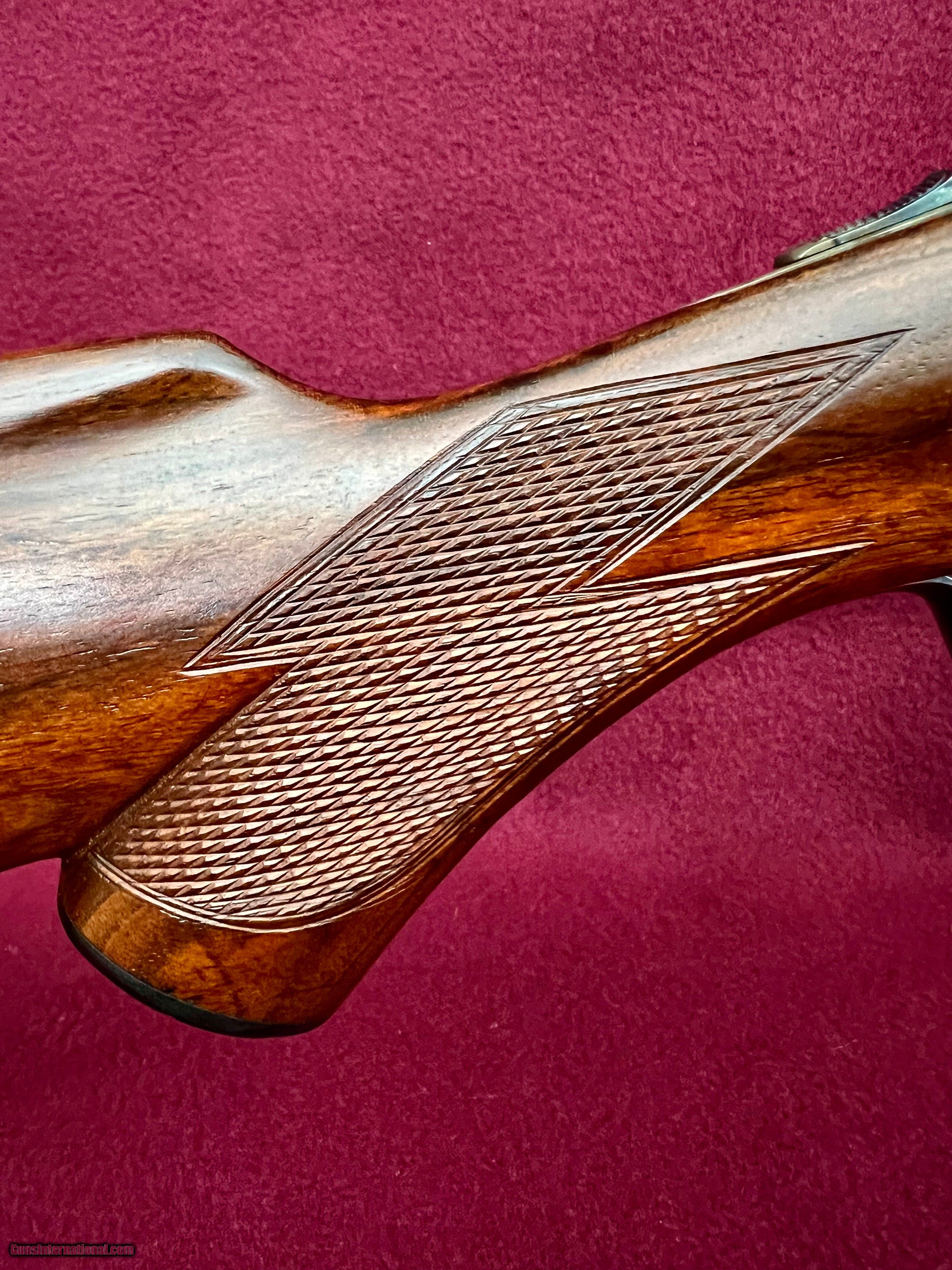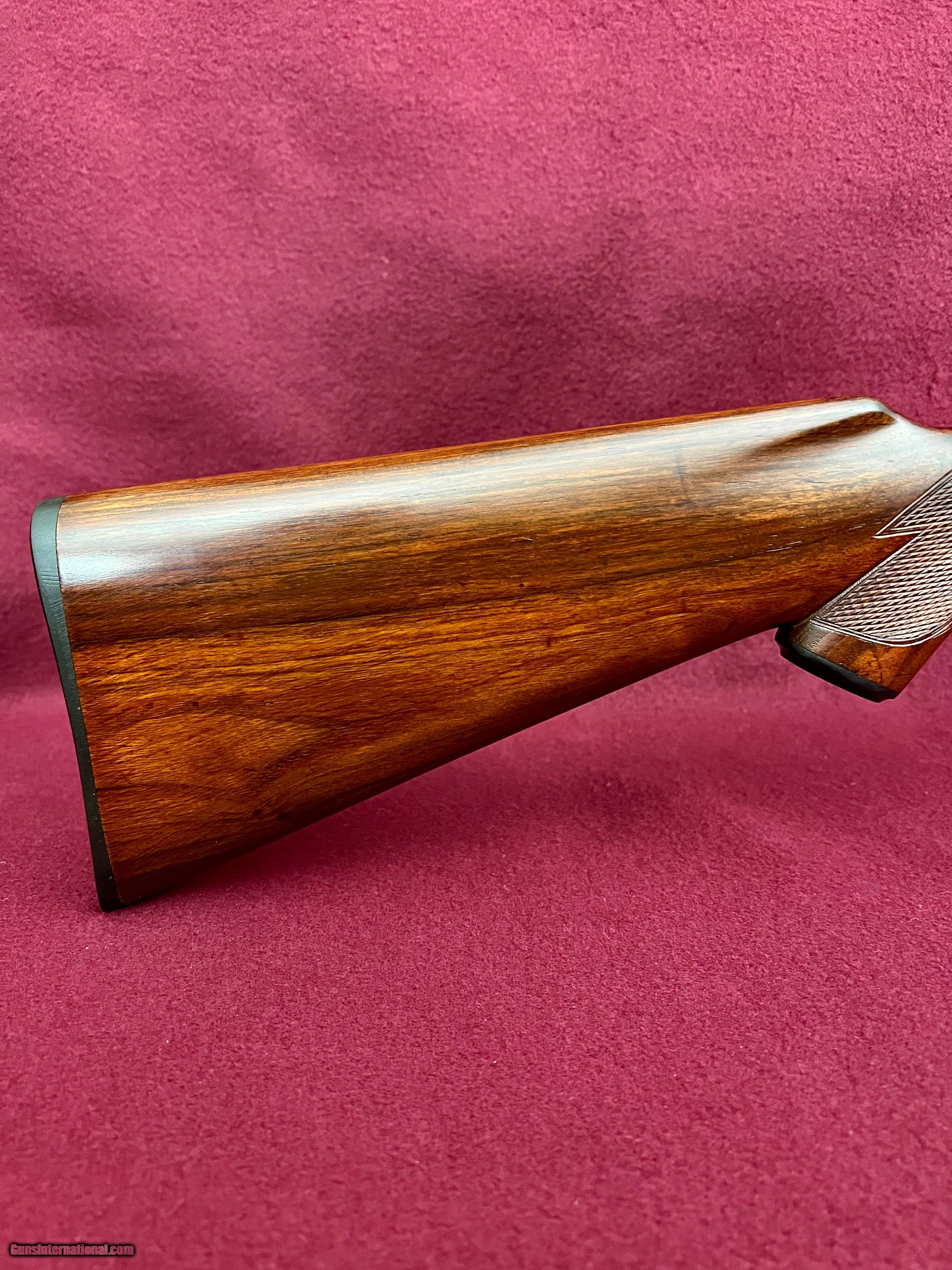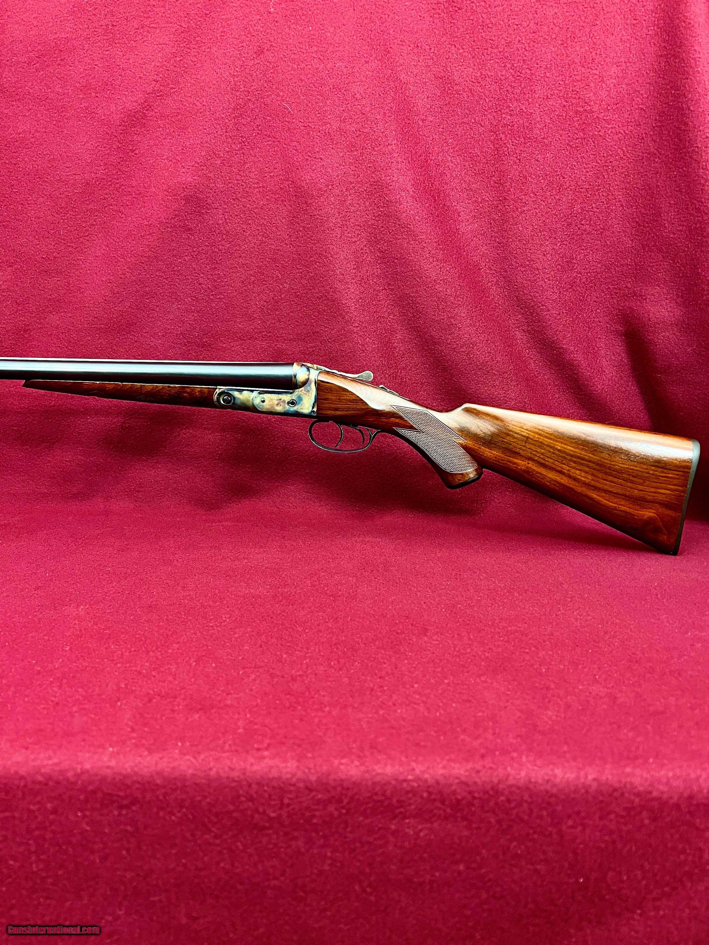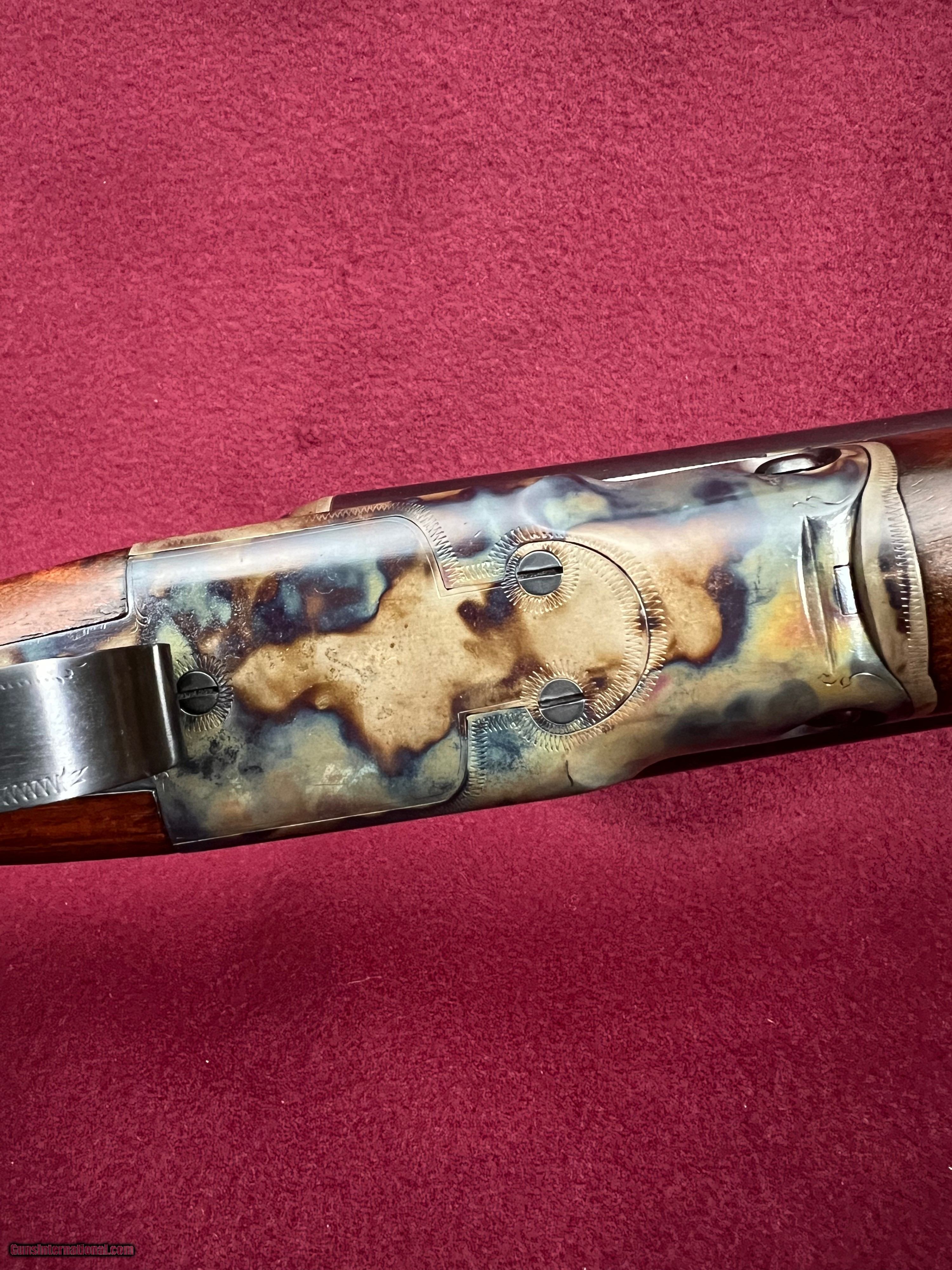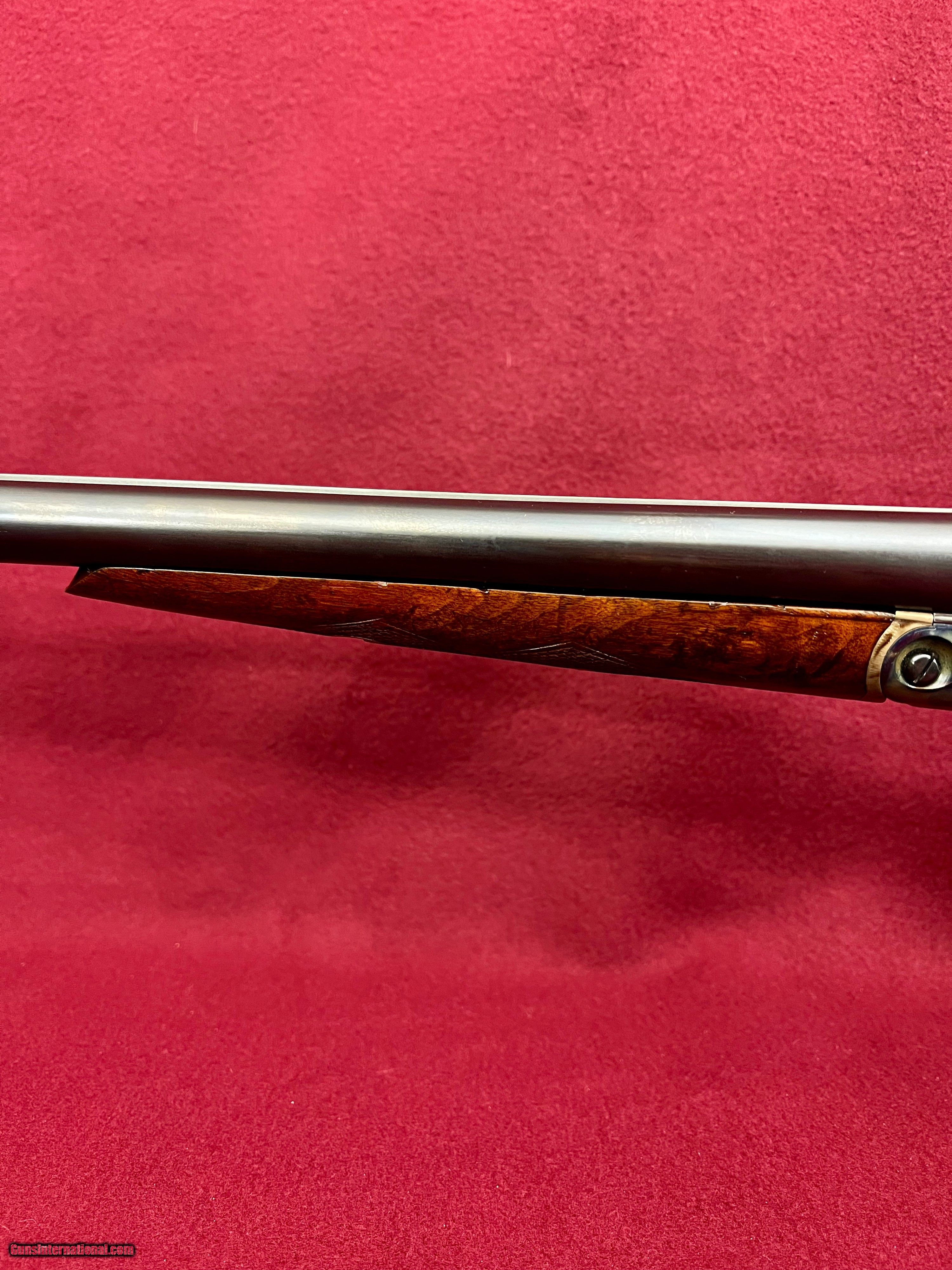 Description: I have for sale a really nice and very well done Parker VHE number 220099 (all numbers matching) built in 1926 in 12 gauge with 1 1/2 frame. Let me start by saying the person I got the gun from said that Mr. Bachelder restored the gun many years ago and it hadn't been fired since the restoration. Having myself had a gun restored by Mr. Bachelder years ago I would have to say it certainly appears to be his work but I have no documentation other than the man's word. He was not a dealer and didn't know other gunsmiths I mentioned but he knew Mr. Bachelder's name. The gun has 30 inch barrels with 2 1/2 inch original chambers. Right bore measures .734 with .024 of constriction. The left bore measures .733 with .037 of constriction. The ejectors are strong and well timed. The bores are excellent condition and these barrels ring as well as any I've ever had. Barrels are tight on face with no movement even with forend removed. Top lever is slightly right of center as you can see in the pictures. Stock dimensions are a 1 1/2 X 2 7/8 X 14 3/8 over a dogs head butt plate. The case colors have a protective coating and this is another reason I believe it is Mr. Bachelders work. When he did my gun he said he coated it with Tru-oil thinned 50% to protect it. This coating does make the case coloring "pop" and from my experience it does a good job of protecting the case coloring. Price of the gun is $2750 plus $50 shipping to your FFL. There is a three day non-firing inspection period with the buyer paying shipping charges if returned. This will make someone a very nice gun that they can shoot and be proud of. Contact me with any questions you might have. SOLD Shotgun Gauge: 12 Gauge Manufacturer: Parker Model: VHE Serial Number: 220099 Barrel Length: 30 Chambers: 2 1/2 inch Ejectors: Strong well timed Condition: Excellent Metal Condition: Excellent Wood Condition: Excellent Bore Condition: Excellent Action: boxlock Triggers: Double Stock: Caped Pistol Grip Stock Comb: 1 1/2 Stock Heel: 2 3/4 Stock Cast: Neutral Fore End: Splinter Butt Pad: Dogs Head LOP: 14 3/8 Original Rib: Solid concave Finish: Totally Restored Weight: 7 pounds 7 ounces Manufacture Date: 1926 Choke Left: Full Choke Right: Modified |