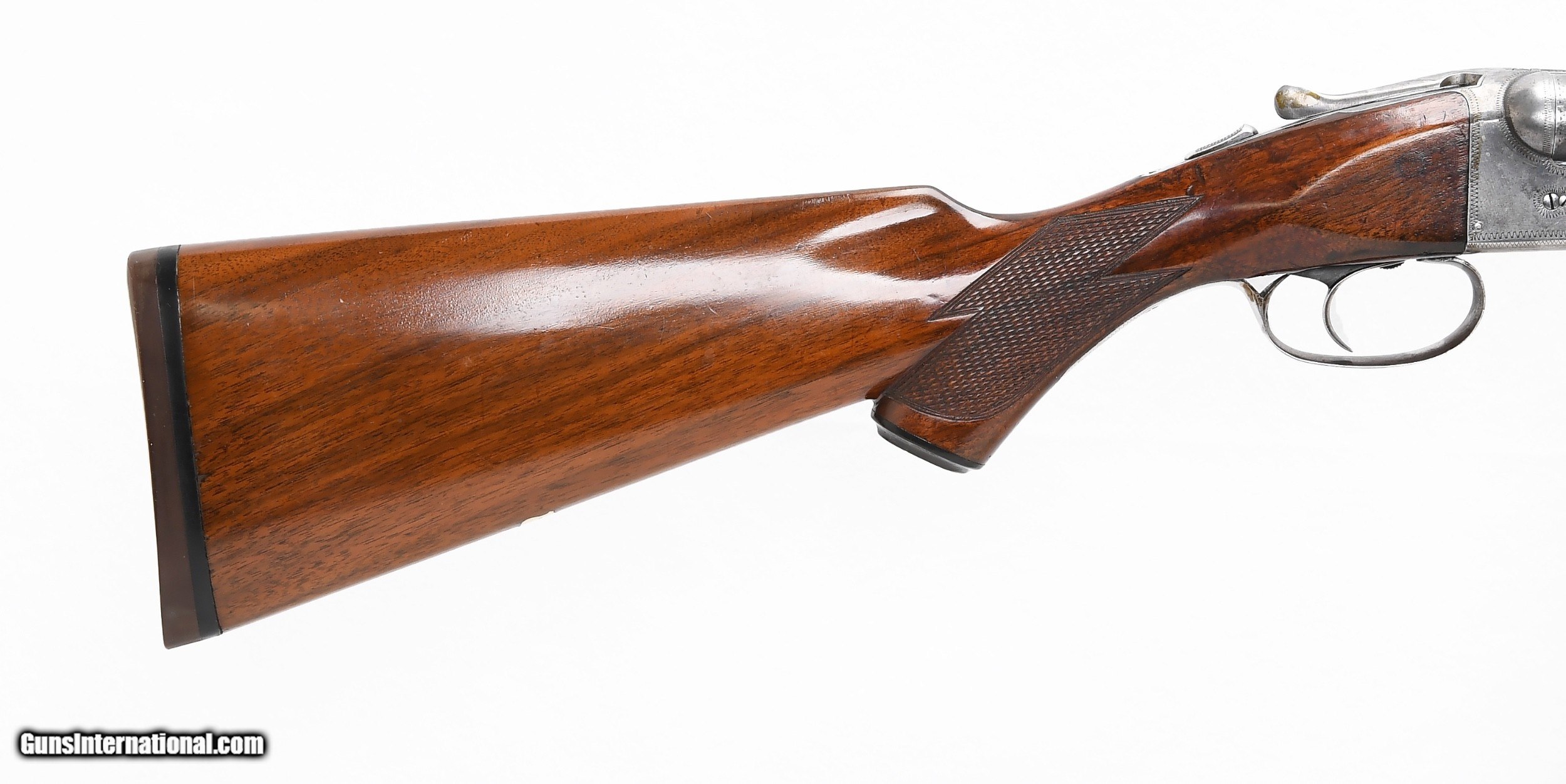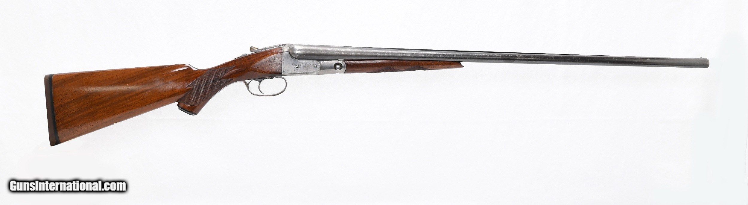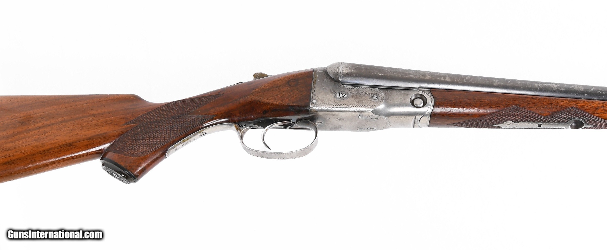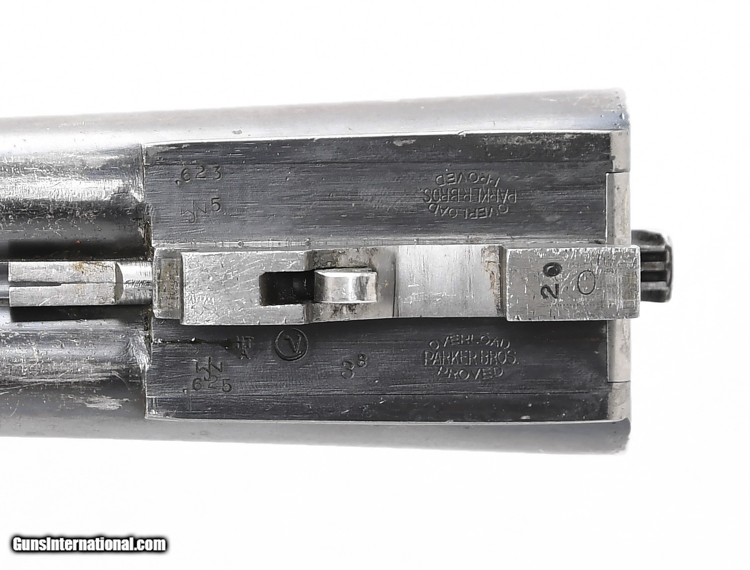 Description: SALE PENDING ...Parker VHE 20 gauge SxS shotgun. Made in 1927 this VHE has 28” barrels with proofed bores of .625” right & .623” left and chokes of .010” light mod and .018” improved mod respectively. Both bores have minimal wall thicknesses of .027”. Original 2 ½” chamber length. Solid rib and the “E” in the VHE indicates that the gun has ejectors. This Parker is exactly as it is listed in the Parker book with one notable exception…It has a factory single selective trigger, serial numbered to the gun! The safety in non-automatic. Finish wise the barrels have about 60% overall thinning original blue. The “O” frame has almost no “colors” remaining, and the screw heads have been polished, but the frame has not been polished or buffed. No blue on the trigger guard or on the forearm latch. The forearm wood finish is original and in very good condition. The capped pistol grip buttstock has an old, professional repair in the form of a wrist pin and then refinished. The LOP is 14” over the ½” recoil pad but if this were a double trigger gun with the LOP measured from the front trigger it would be closer to 14 ½”! 1 ½” DAC and 2 ¾” DAH with neutral cast. Mechanically very sound, tight, barrels on face, bright/shiny bores. 6 lbs. 4 oz. So, I will categorize this VHE as a great upland bird gun with ejectors and single trigger that you can shoot for another 90 years without worrying about wear from everyday use. $3,450.00 SN: 222949 SOLD |