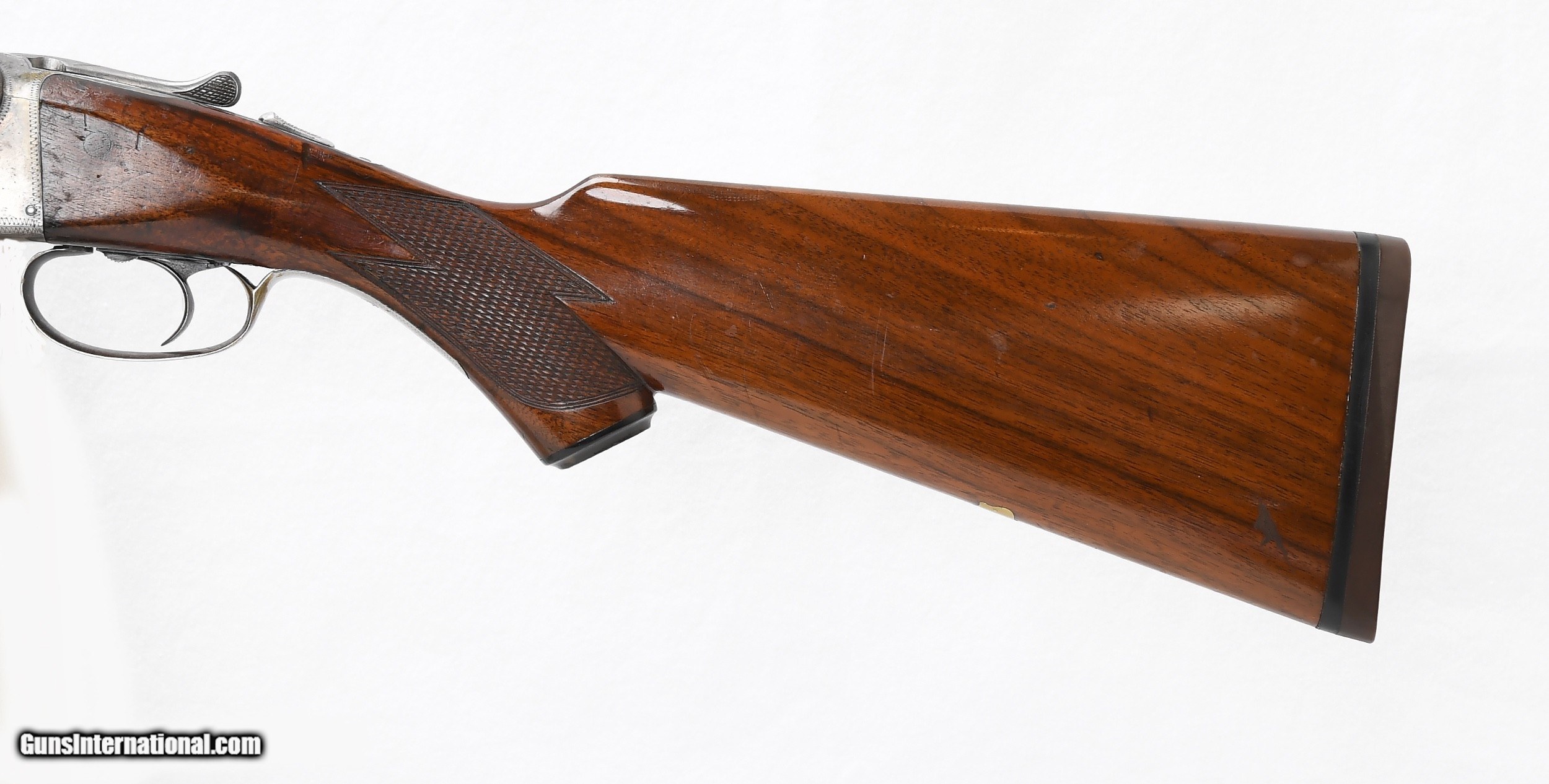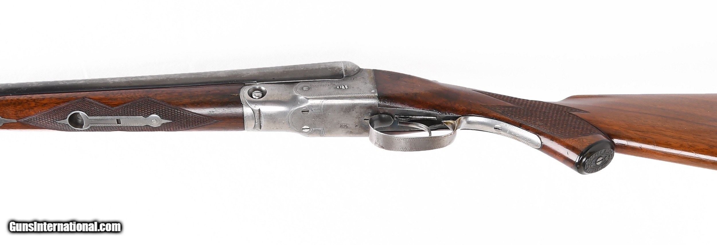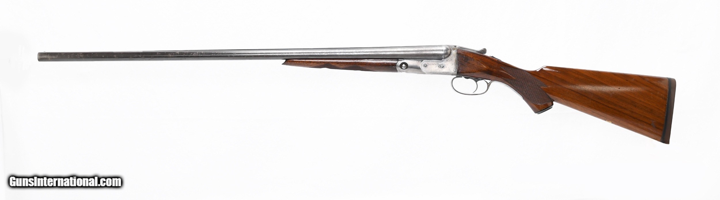 Description: SALE PENDING ...Parker VHE 20 gauge SxS shotgun. Made in 1927 this VHE has 28” barrels with proofed bores of .625” right & .623” left and chokes of .010” light mod and .018” improved mod respectively. Both bores have minimal wall thicknesses of .027”. Original 2 ½” chamber length. Solid rib and the “E” in the VHE indicates that the gun has ejectors. This Parker is exactly as it is listed in the Parker book with one notable exception…It has a factory single selective trigger, serial numbered to the gun! The safety in non-automatic. Finish wise the barrels have about 60% overall thinning original blue. The “O” frame has almost no “colors” remaining, and the screw heads have been polished, but the frame has not been polished or buffed. No blue on the trigger guard or on the forearm latch. The forearm wood finish is original and in very good condition. The capped pistol grip buttstock has an old, professional repair in the form of a wrist pin and then refinished. The LOP is 14” over the ½” recoil pad but if this were a double trigger gun with the LOP measured from the front trigger it would be closer to 14 ½”! 1 ½” DAC and 2 ¾” DAH with neutral cast. Mechanically very sound, tight, barrels on face, bright/shiny bores. 6 lbs. 4 oz. So, I will categorize this VHE as a great upland bird gun with ejectors and single trigger that you can shoot for another 90 years without worrying about wear from everyday use. $3,450.00 SN: 222949 SOLD |