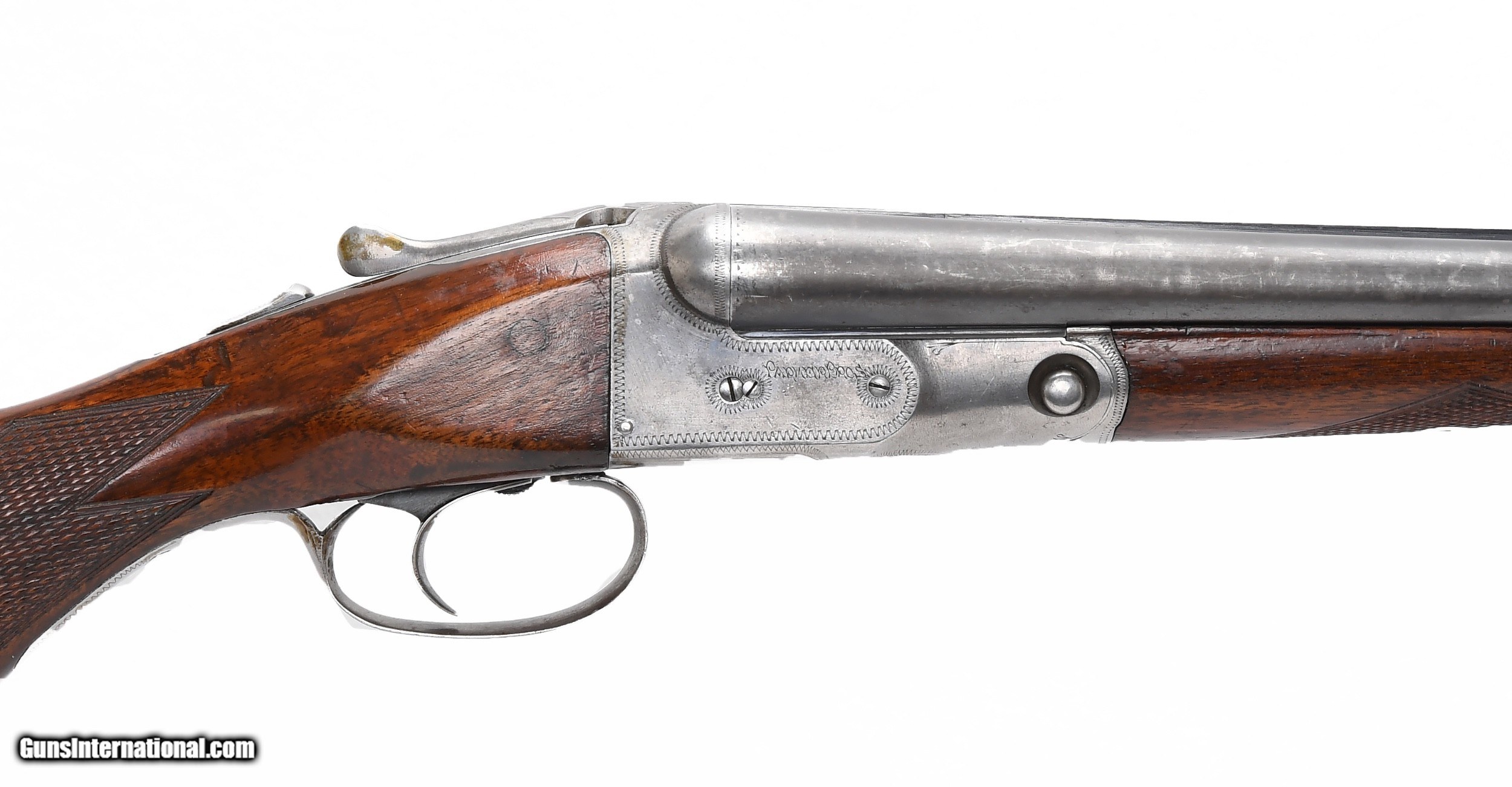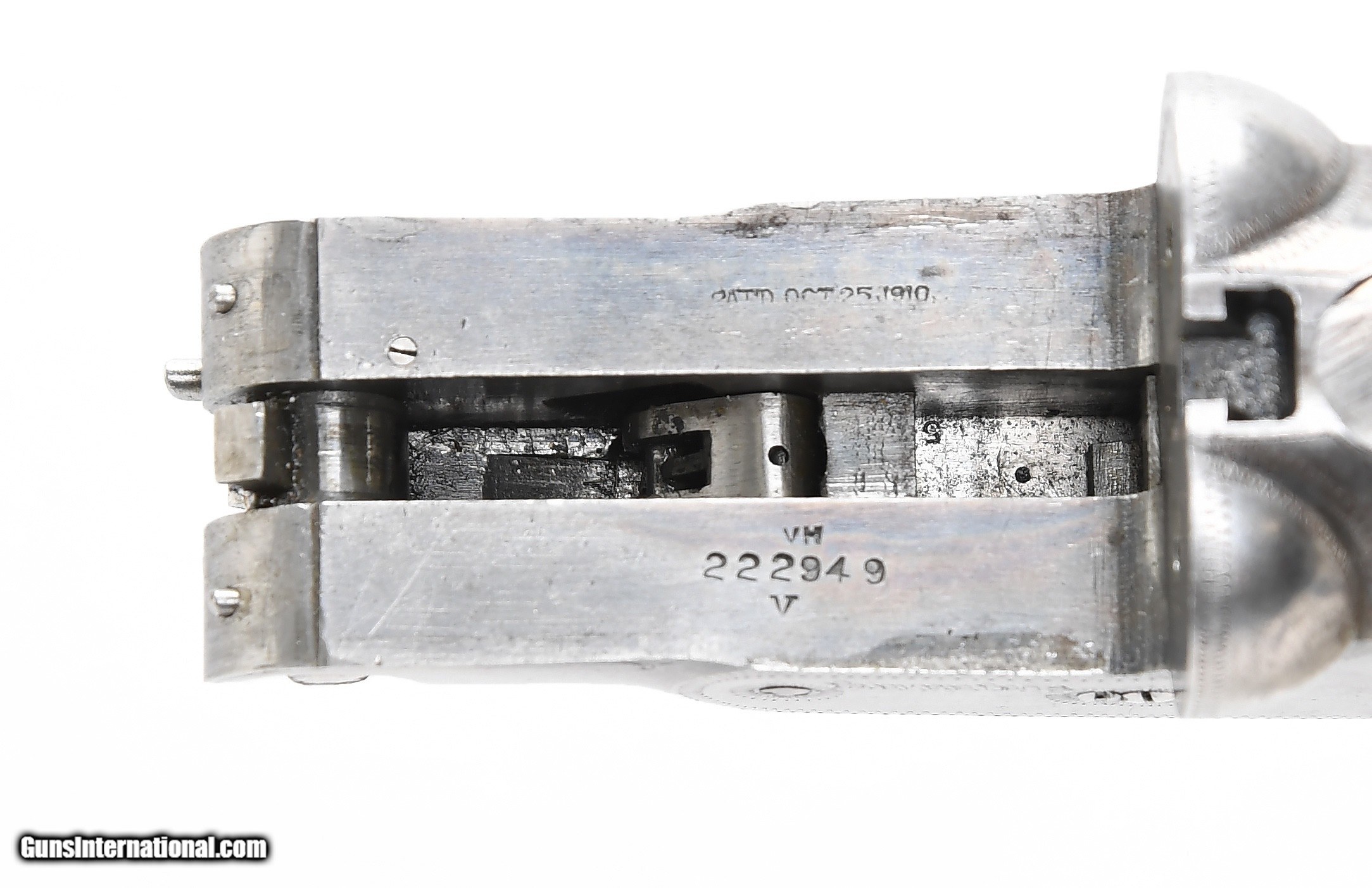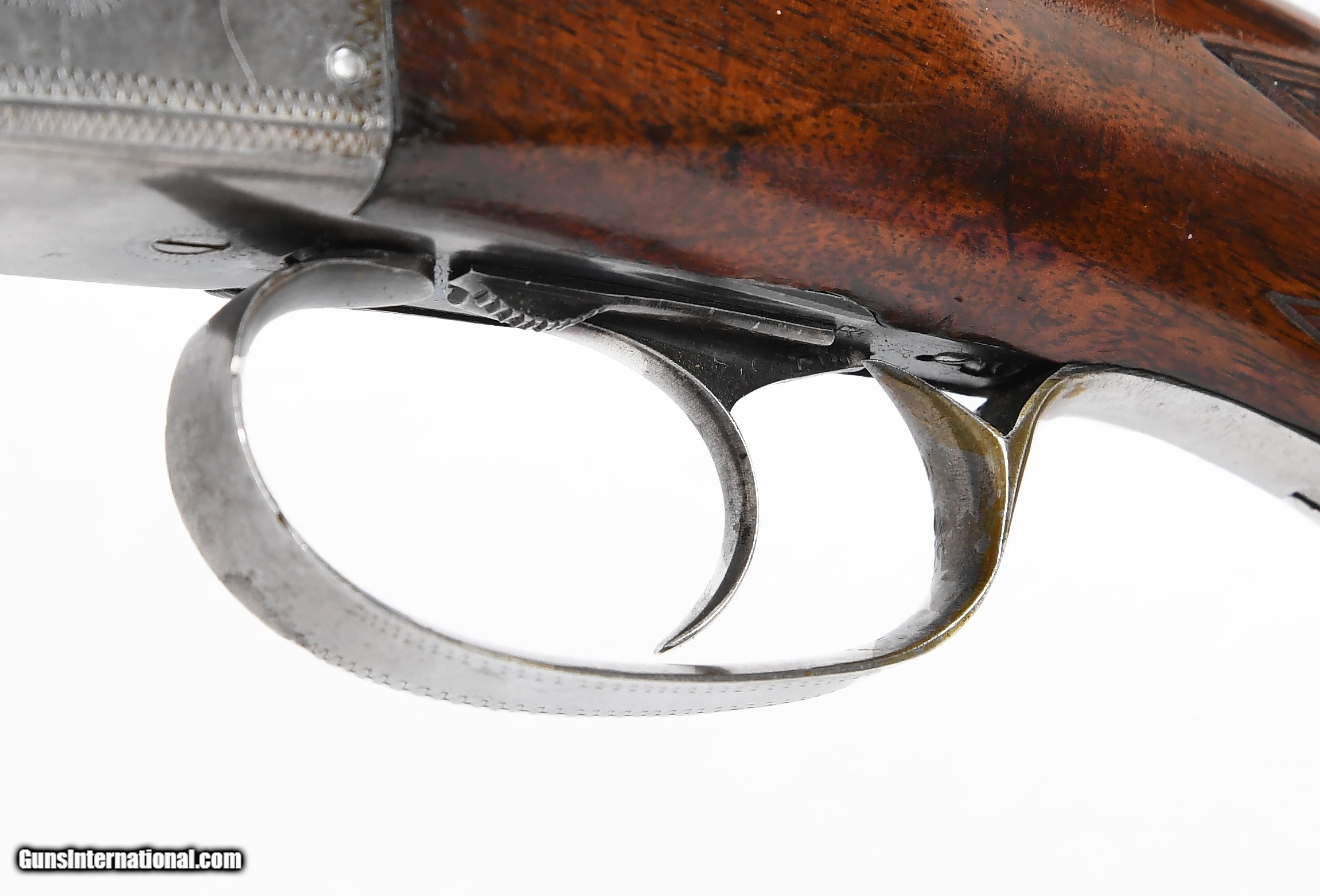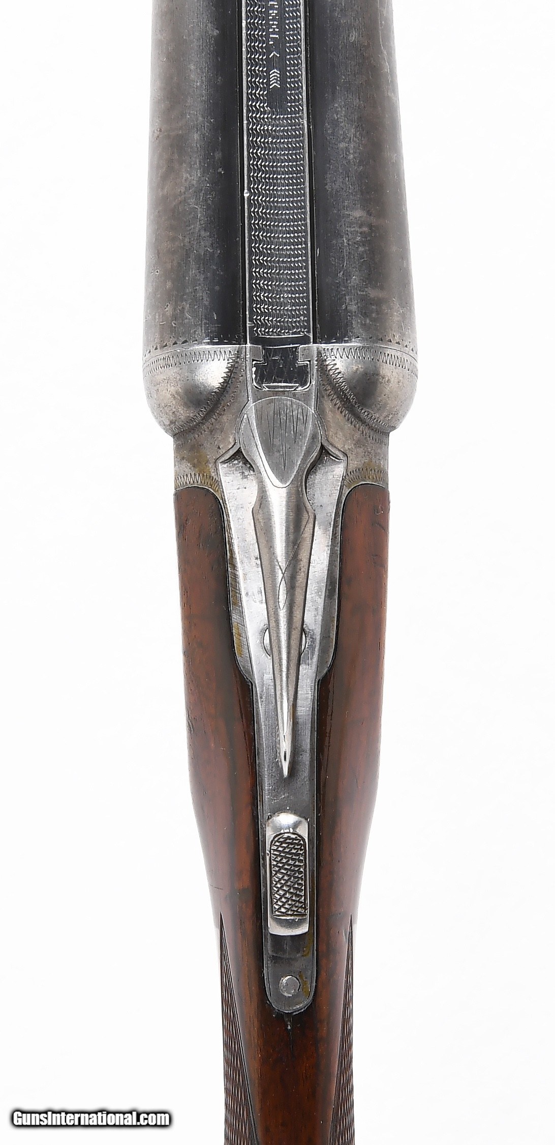 Description: SALE PENDING ...Parker VHE 20 gauge SxS shotgun. Made in 1927 this VHE has 28” barrels with proofed bores of .625” right & .623” left and chokes of .010” light mod and .018” improved mod respectively. Both bores have minimal wall thicknesses of .027”. Original 2 ½” chamber length. Solid rib and the “E” in the VHE indicates that the gun has ejectors. This Parker is exactly as it is listed in the Parker book with one notable exception…It has a factory single selective trigger, serial numbered to the gun! The safety in non-automatic. Finish wise the barrels have about 60% overall thinning original blue. The “O” frame has almost no “colors” remaining, and the screw heads have been polished, but the frame has not been polished or buffed. No blue on the trigger guard or on the forearm latch. The forearm wood finish is original and in very good condition. The capped pistol grip buttstock has an old, professional repair in the form of a wrist pin and then refinished. The LOP is 14” over the ½” recoil pad but if this were a double trigger gun with the LOP measured from the front trigger it would be closer to 14 ½”! 1 ½” DAC and 2 ¾” DAH with neutral cast. Mechanically very sound, tight, barrels on face, bright/shiny bores. 6 lbs. 4 oz. So, I will categorize this VHE as a great upland bird gun with ejectors and single trigger that you can shoot for another 90 years without worrying about wear from everyday use. $3,450.00 SN: 222949 SOLD |