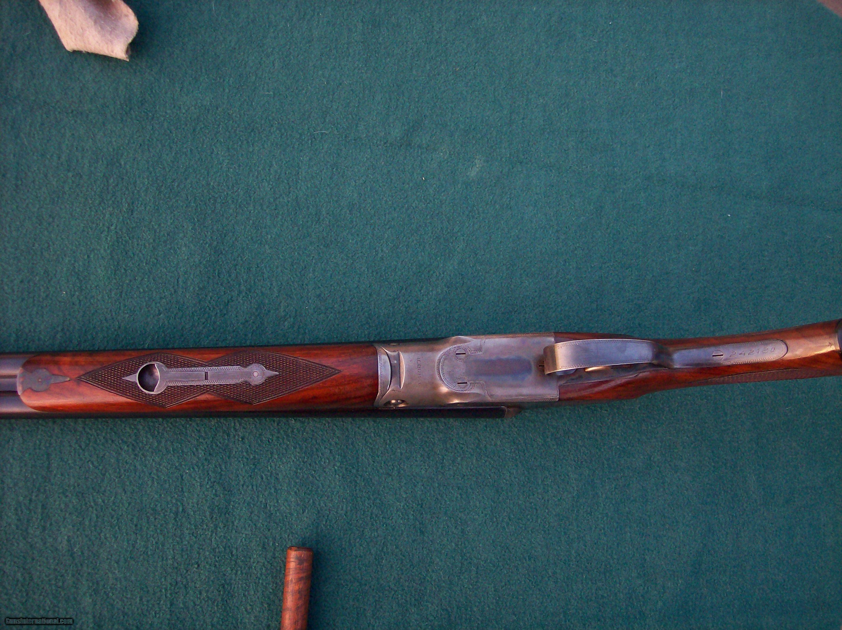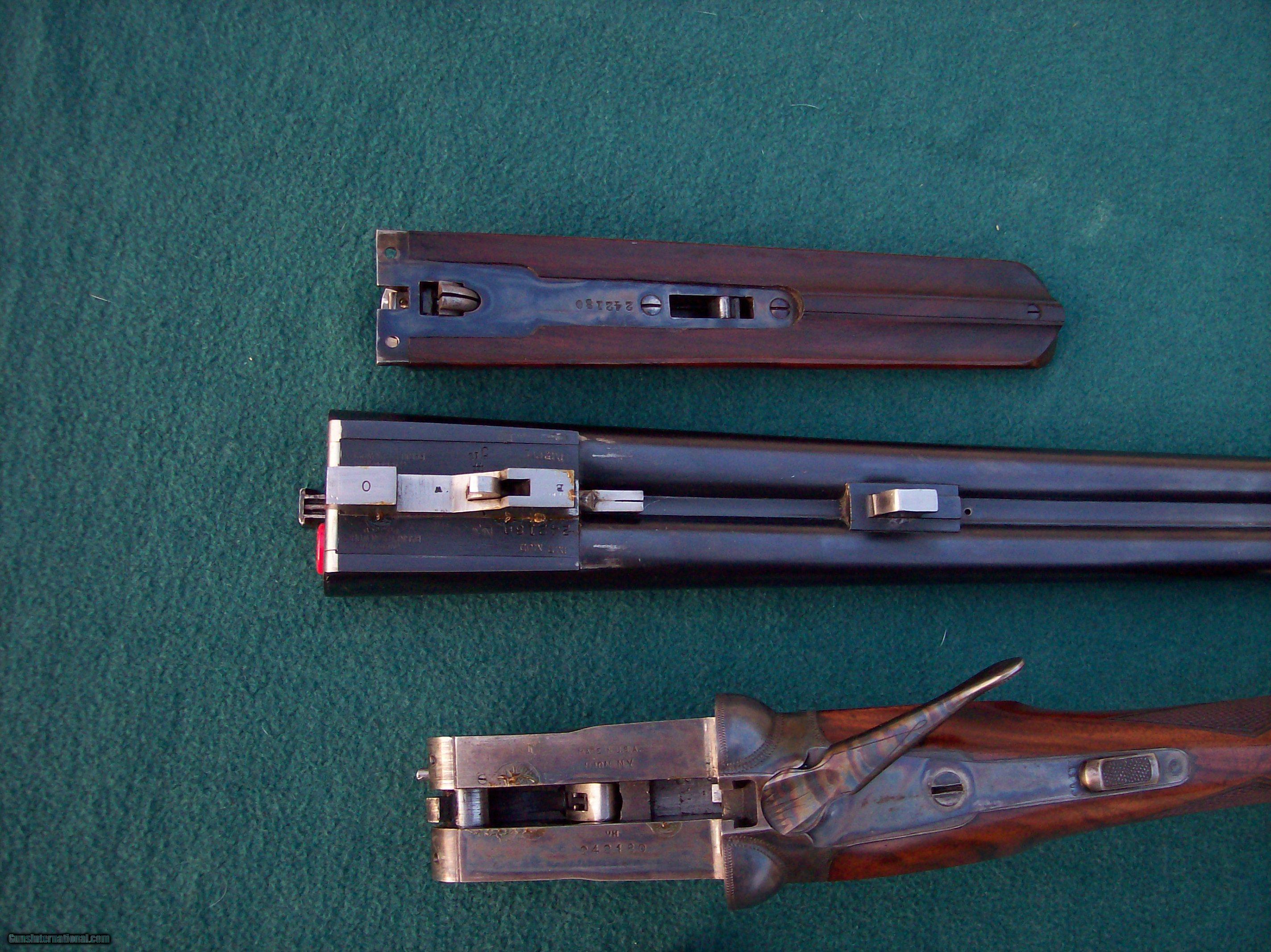 Description: Late 20 ga Parker in Great condition,60 plus % Original case color,99 + % barrel blue with a couple light marks and all the original trigger guard blue.Wood has all original finish with light handling marks and nice checkering.Lenght of pull is 13 & 15/16 inches to a hard silvers pad.Drop is 2 inches at heel and 1 3/8 inch at comb.Barrels are 26 inch marked IC & IM. A great upland gun in High original condition just the way you try to find them. Lenght of pull to the end of the wood is 13 inchs ,Silvers pad is 7/8 thick.I have had a few question on the case color.This gun was one of the last ones made in the Ilion plant and at that time there case color process was the cyanide process,check out the Parker gun book by Ed Muderlak page 168 SOLD Manufacturer: Parker Model: VHE 20 ga Bore: 20 Chambers: 2 3/4 Ejectors: yes Condition: excellent Metal Condition: excellent Wood Condition: very good Bore Condition: excellent Barrels: excellent Barrel Type: double Action: breakopen Triggers: double Gauge Info: 20 Stock: pistal Stock Drop: 2 inch Stock Comb: 1 3/8 Stock Heel: 2 inch Stock Cast: straight Fore End: splinter Butt Pad: silvers LOP: 13 15/16 Rib: soild Choke Left: im Choke Right: ic Item Location: NY |