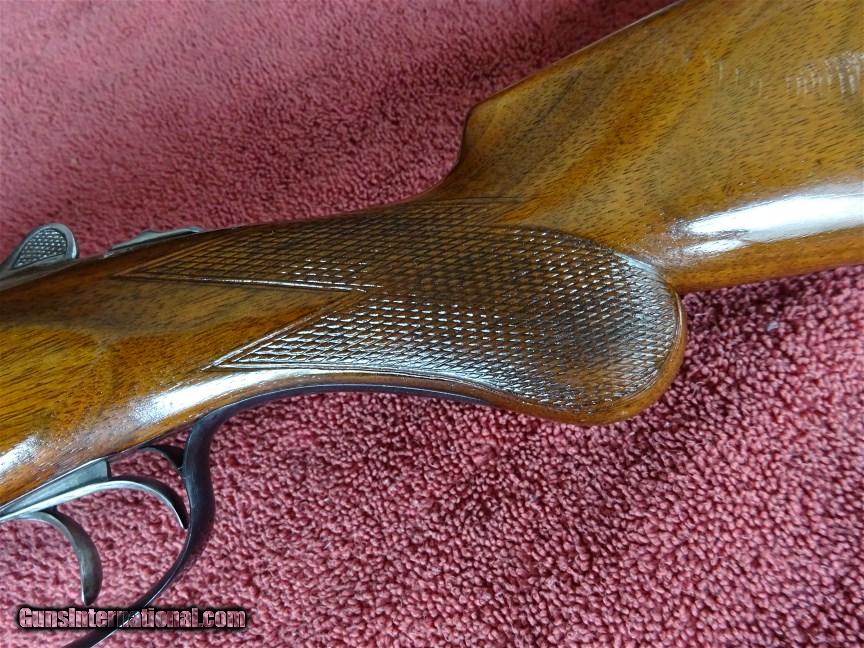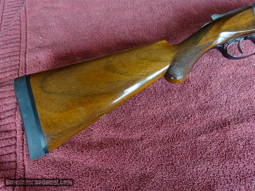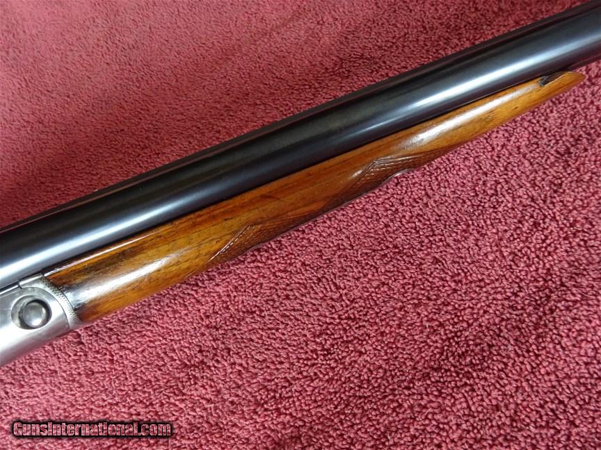 Description: PARKER VHE, 20 GAUGE, 28" BARRELS, EXCELLENT BLUE, BRIGHT BORES, IMP.CYL. AND MODIFIED, NO DENTS OR DINGS, BARRELS RING LIKE A BELL. NUMBER 0 FRAME, AUTOMATIC EJECTORS, NO CASE COLOR, GOOD SCREWS. HALF PISTOL GRIP STOCK, SPLINTER FOREARM, VERY GOOD WOOD AND CHECKERING. TIGHT AS CAN BE WITH THE FOREARM ON OR OFF, 1 1/2" X 2 7/8" X 14", SOLID PAD, 6 POUNDS. EJECTORS WORK FINE. NICE HUNTING GUN OR AN IDEAL CANDIDATE TO UPGRADE. MADE IN 1907. $2500.00 + $40.00 Insured shipping to an FFL address. See all Pats listings We also have hundreds of pieces of ORIGINAL gun company advertising & memorabilia available for sale. We have no reprints or reproductions. Email for more information. SOLD Curio/Relic: Yes |