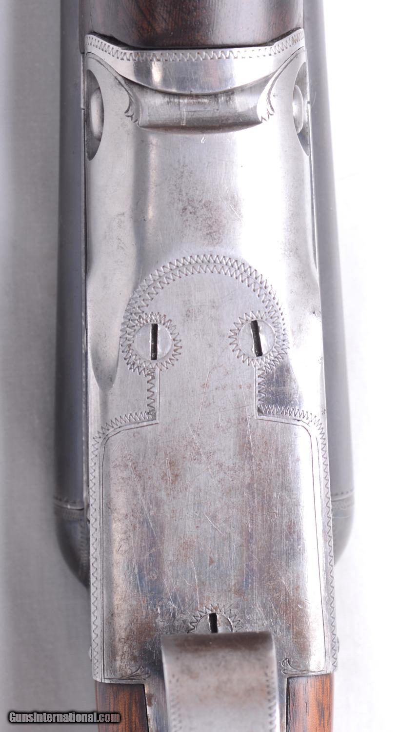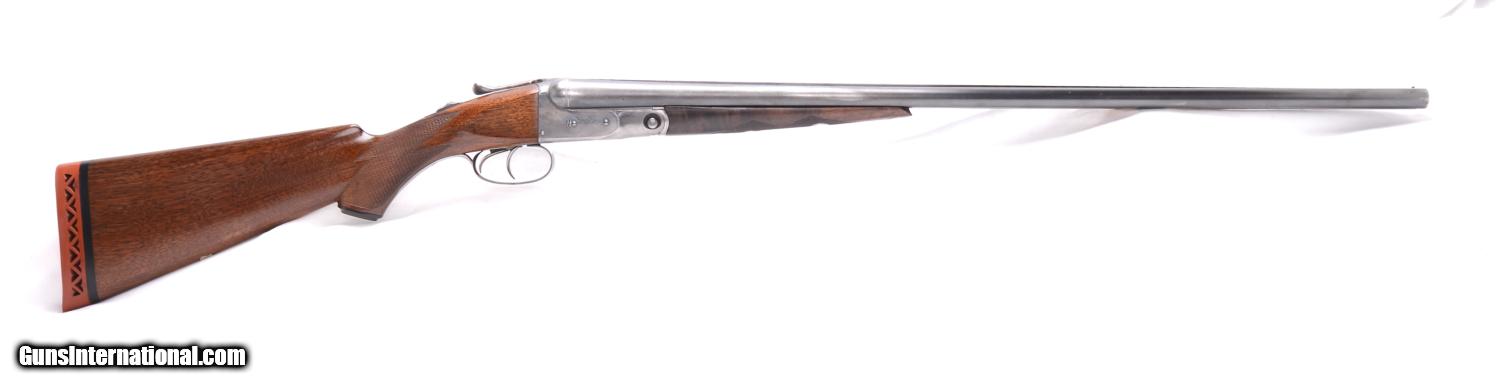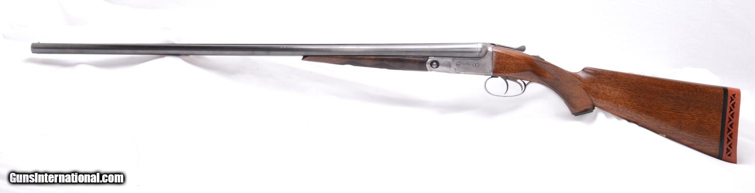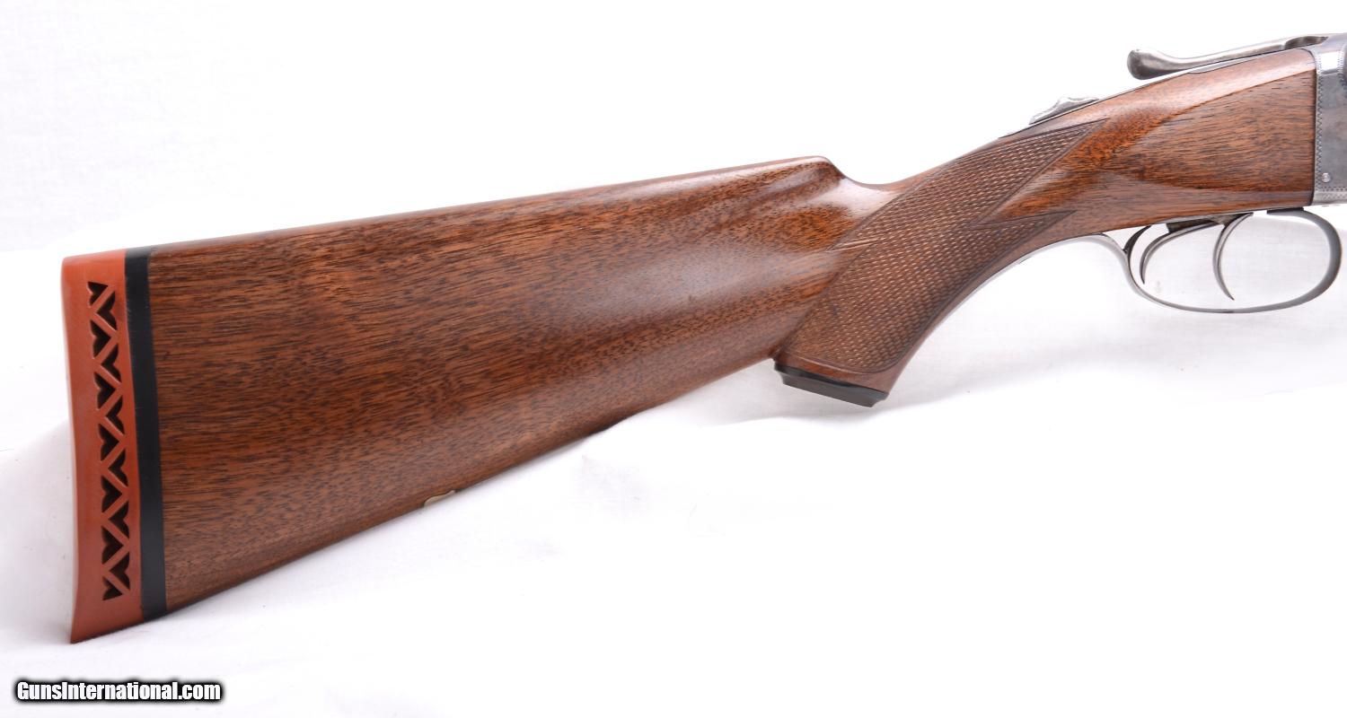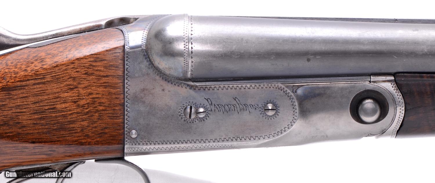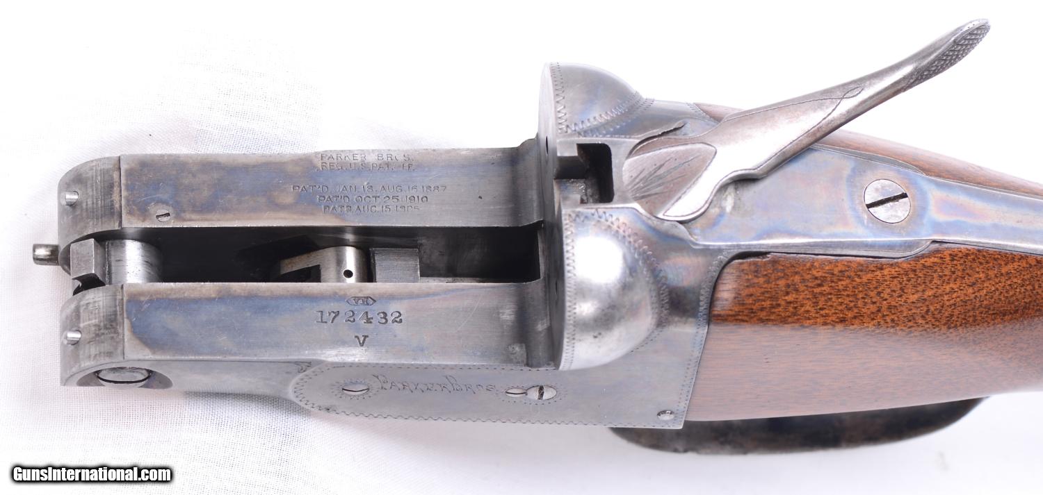 Description: Parker VHE 20 gauge SxS shotgun. Except for the added Hawkins pad this gun is exactly as it should be according to the Parker bookl. 28" solid rib barrels of Vulcan steel choked M/F (.016/.029) with very nice, unaltered .620 left and right bores and they retain 85% original/thinning blue. Original frame retains about 20% case colors, mostly on the sides and under the top lever. Trigger guard shows no original finish. The stock is classic early American shotgun dimensions: 1 1/2" DAC, 3" DAH and 14 3/8" over the 1 1/8" pad with slight left hand cast. Mechanically perfect; auto saftey functions correctly, ejectors are perfectly time and both triggers pull crisply at just over 4 lbs. each. Overall weight is 6 lbs. 3 oz. Great bird gun and fine addition to a Parker collection. SOLD Curio/Relic: Yes |