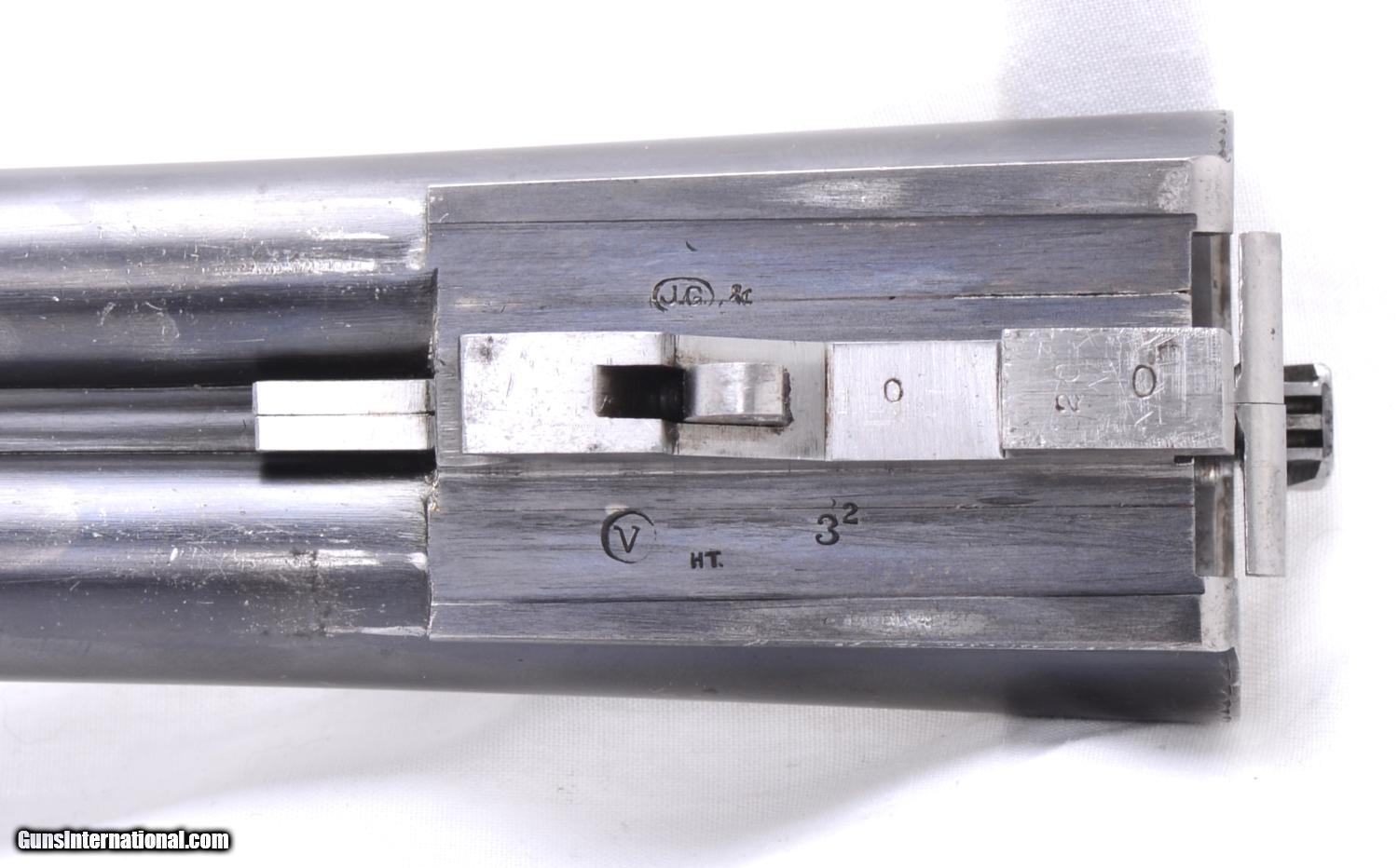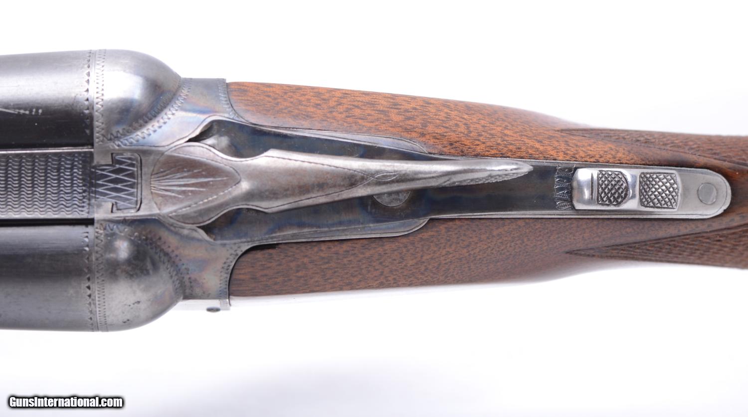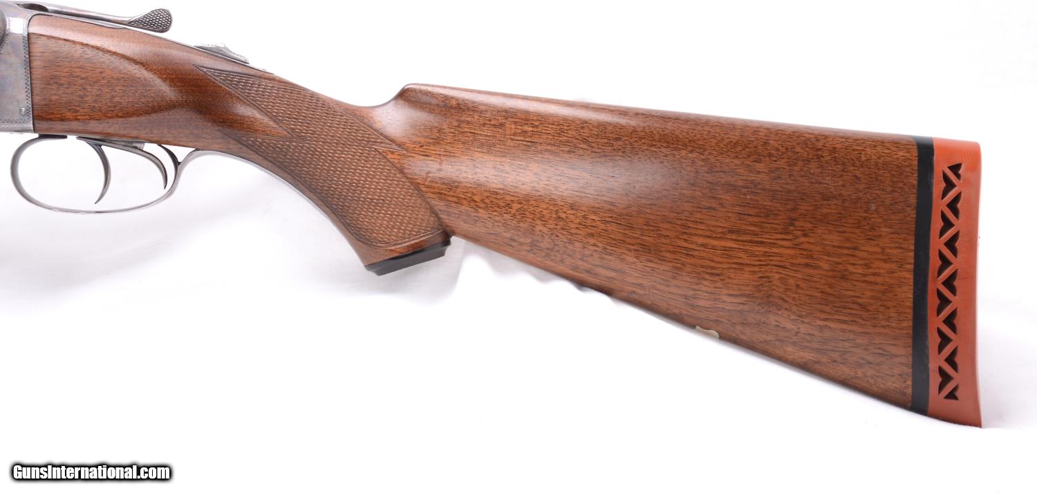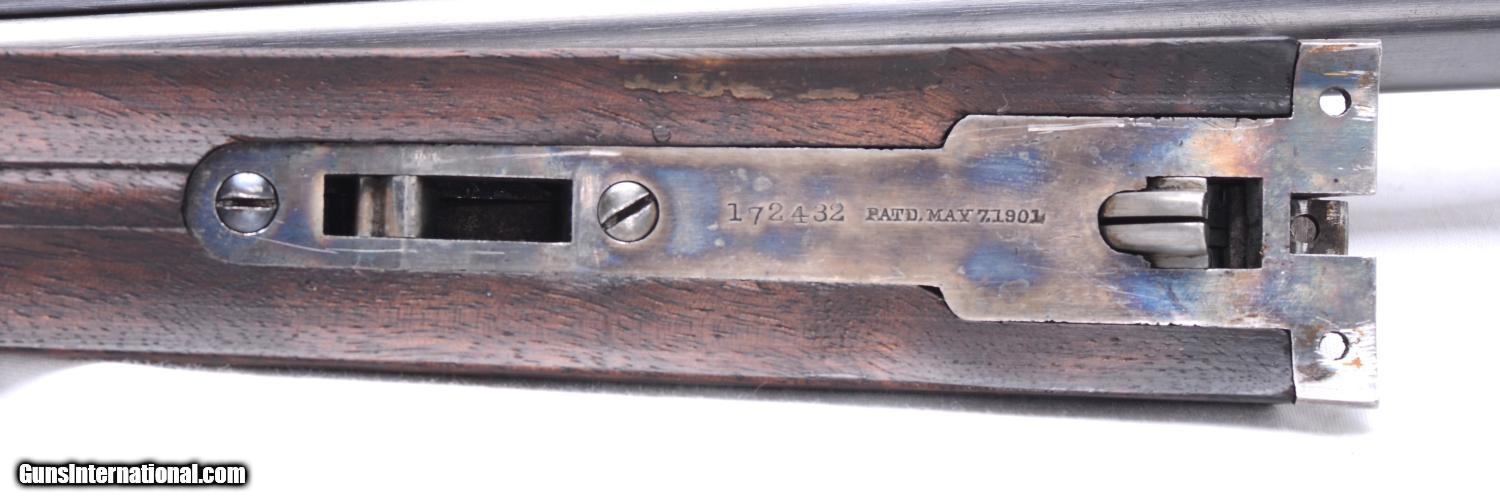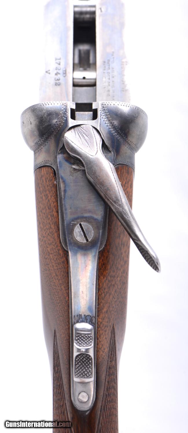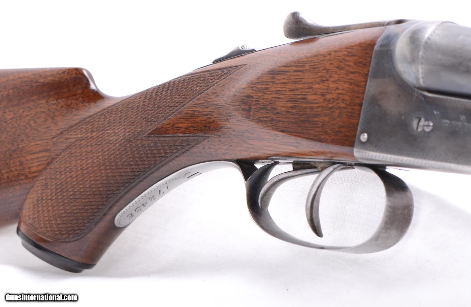 Description: Parker VHE 20 gauge SxS shotgun. Except for the added Hawkins pad this gun is exactly as it should be according to the Parker bookl. 28" solid rib barrels of Vulcan steel choked M/F (.016/.029) with very nice, unaltered .620 left and right bores and they retain 85% original/thinning blue. Original frame retains about 20% case colors, mostly on the sides and under the top lever. Trigger guard shows no original finish. The stock is classic early American shotgun dimensions: 1 1/2" DAC, 3" DAH and 14 3/8" over the 1 1/8" pad with slight left hand cast. Mechanically perfect; auto saftey functions correctly, ejectors are perfectly time and both triggers pull crisply at just over 4 lbs. each. Overall weight is 6 lbs. 3 oz. Great bird gun and fine addition to a Parker collection. SOLD Curio/Relic: Yes |