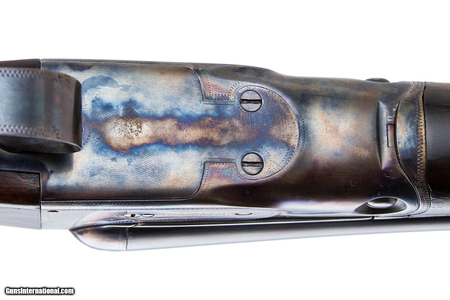 Description: TURNBULL RESTORED 0 FRAME FACTORY 24" BARRELS CYLINDER AND IC 2 1/2" CHAMBERS DOUBLE TRIGGER EJECTORS SPLINTER FOREARM PISTOL GRIP 14 1/4 LOP TO DOGS HEAD BUTT X 3 X 2 SOLD |