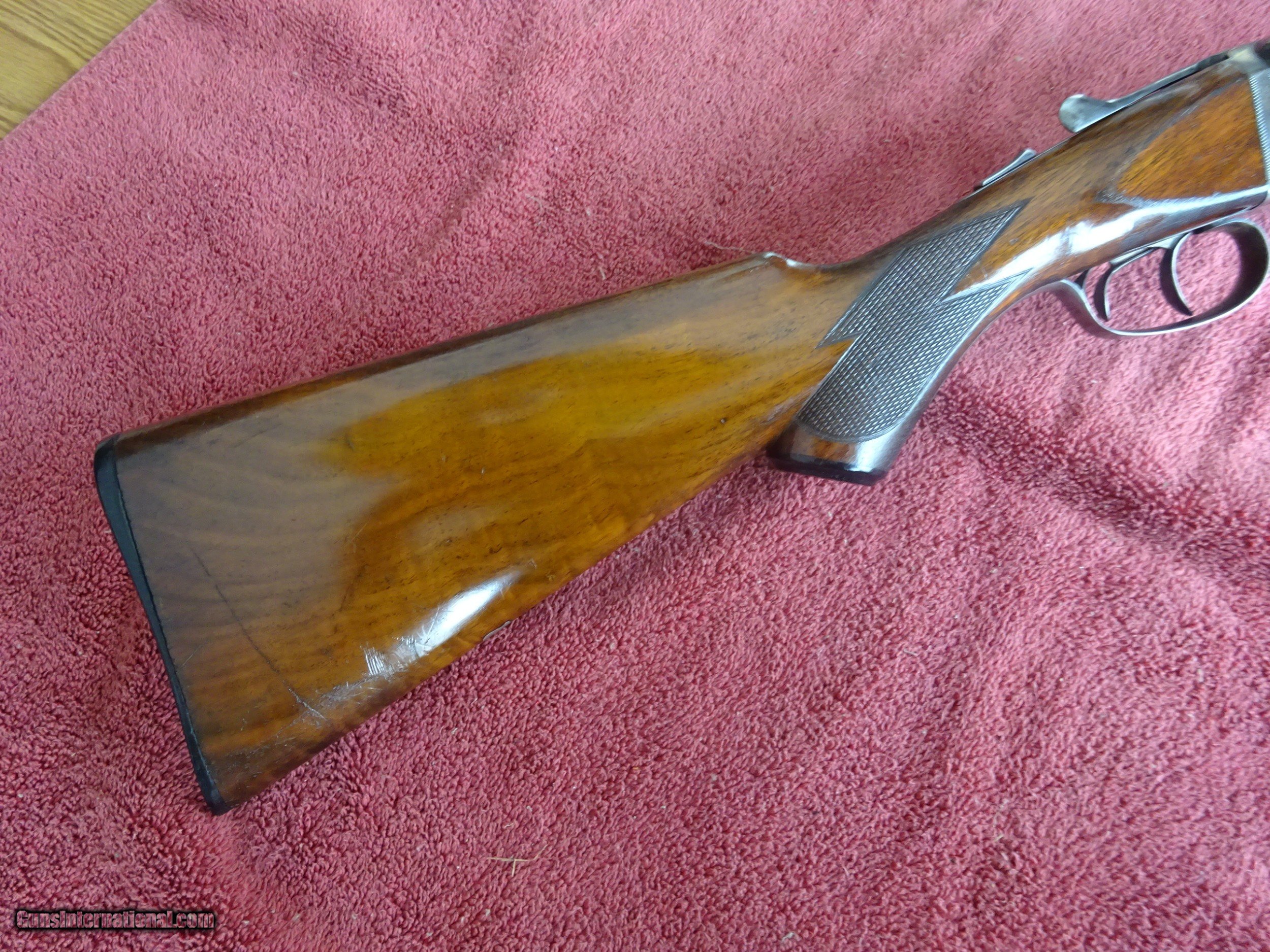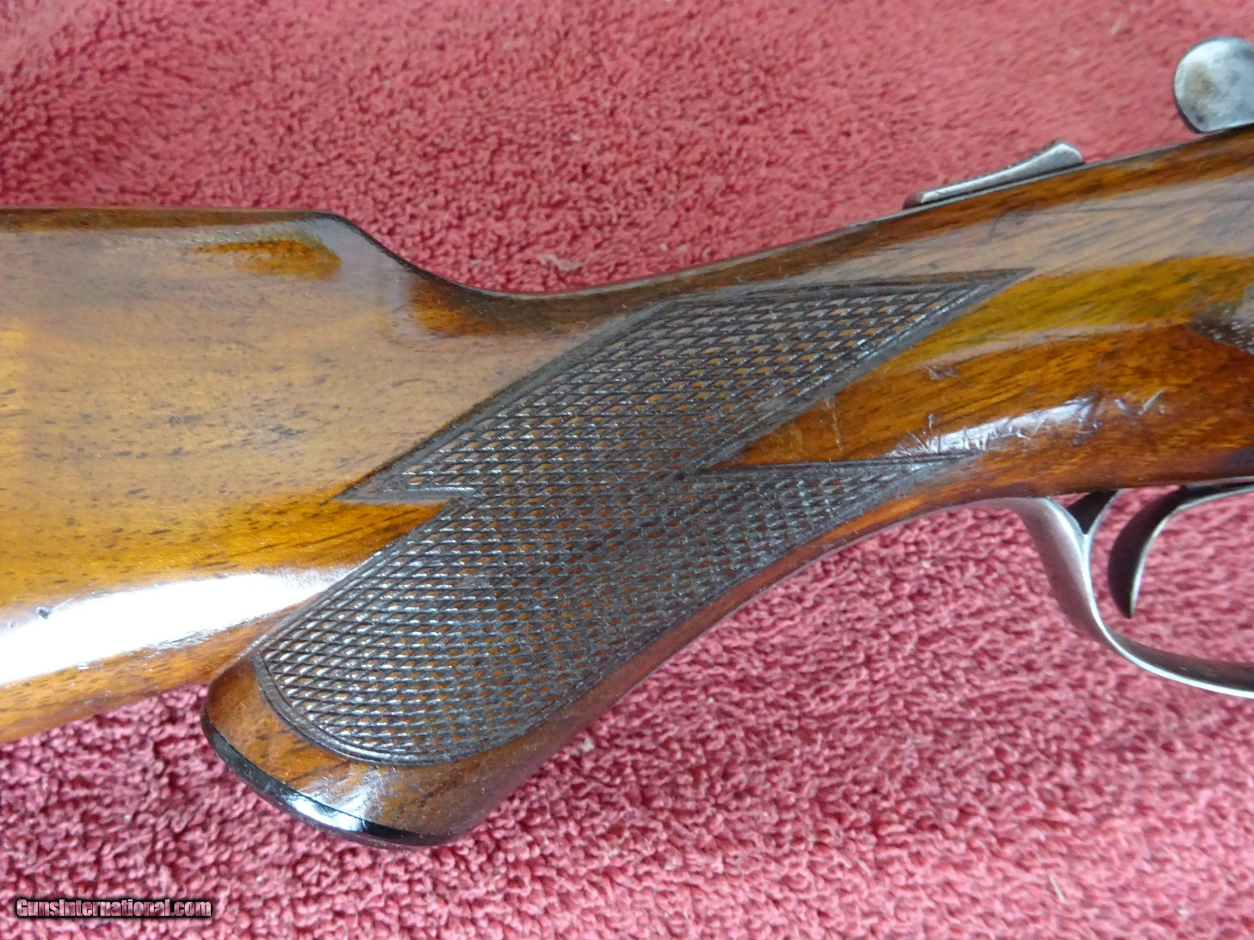 Description: ***SALE PENDING*** PARKER, VHE 12 GAUGE. 28" IMCYL (.010) & MODIFIED (.015), 2 3/4" CHAMBERS, BARRELS RING LIKE A BELL. VERY GOOD BLUE, MIRROR BRIGHT BORES, SINGLE BEAD SIGHT, AUTOMATIC EJECTORS. NUMBER 1 1/2 FRAME, PERFECT SCREWS, VIVID CASE COLOR IN THE PROTECTED AREAS. TOP LEVER TO THE FAR RIGHT, TIGHT ON FACE, AUTOMATIC SAFETY. PISTOL GRIP STOCK, SPLINTER FOREARM, EXCELLENT CHECKERING, NICELY FIGURED AMERICAN WALNUT. NORMAL HANDLING MARKS IN THE VARNISH, ORIGINAL GRIP CAP AND DOGHEAD BUTTPLATE, SILVER STOCK INLAY SHIELD NOT ENGRAVED. GOOD SOUND REMINGTON PERIOD PARKER WITH ALL ORIGINAL FINISH, 1 1/2" X 2 1/2" X 14", 7 POUNDS 4 OUNCES. MADE IN 1934. $1575.00 + $60.00 Insured shipping to an FFL address. Layaway is available. See all Pats gun listings on this site! We also have hundreds of pieces of ORIGINAL gun company advertising & memorabilia available for sale on our site SPORTINGCOLLECTIBLES. We have no reprints or reproductions. Email for more information. SOLD Curio/Relic: Yes |