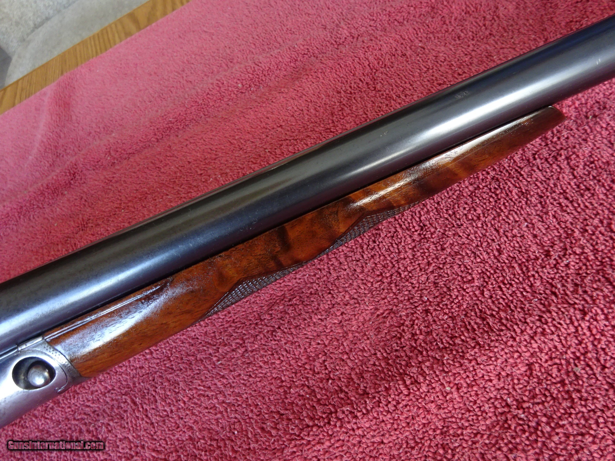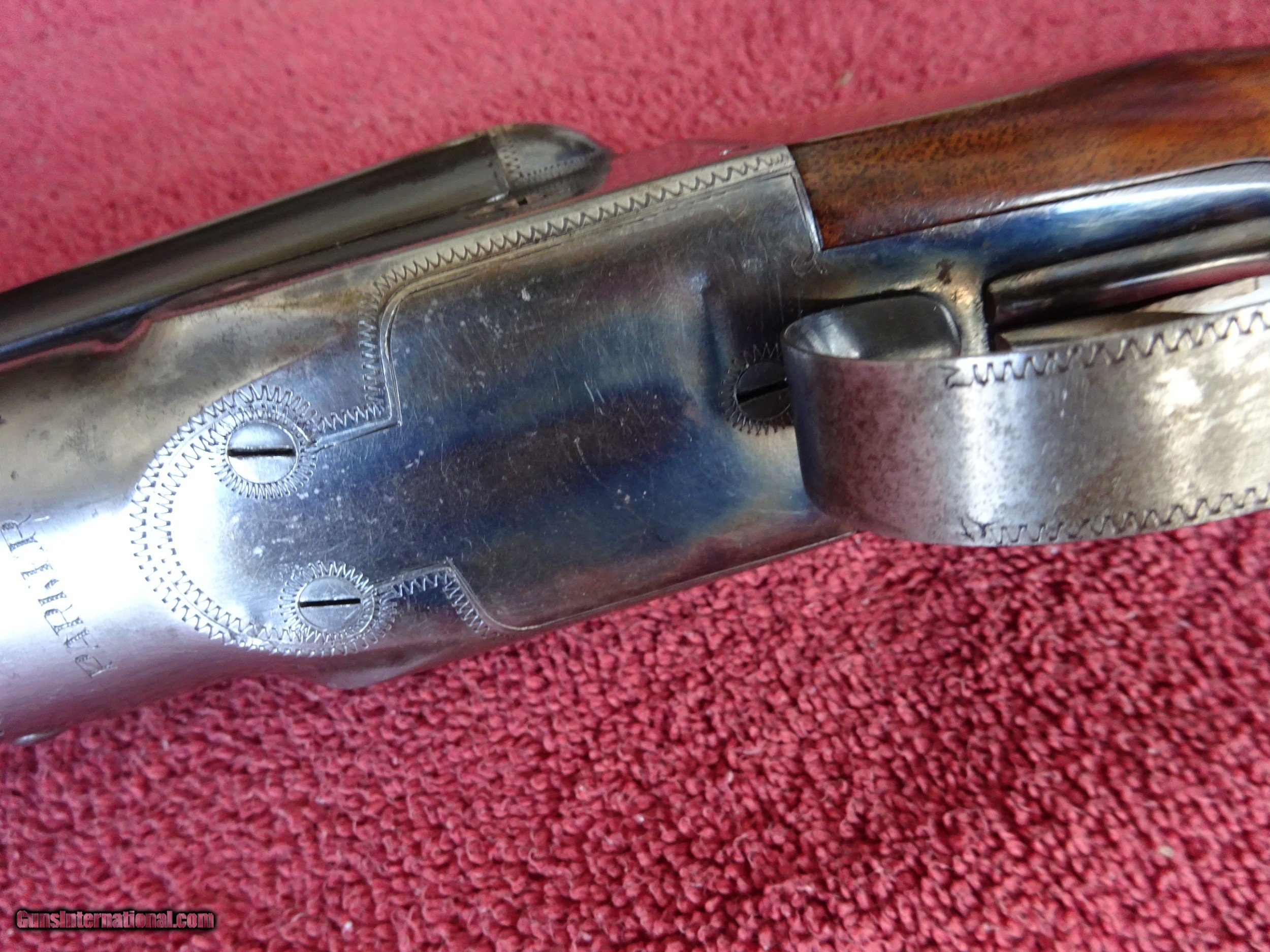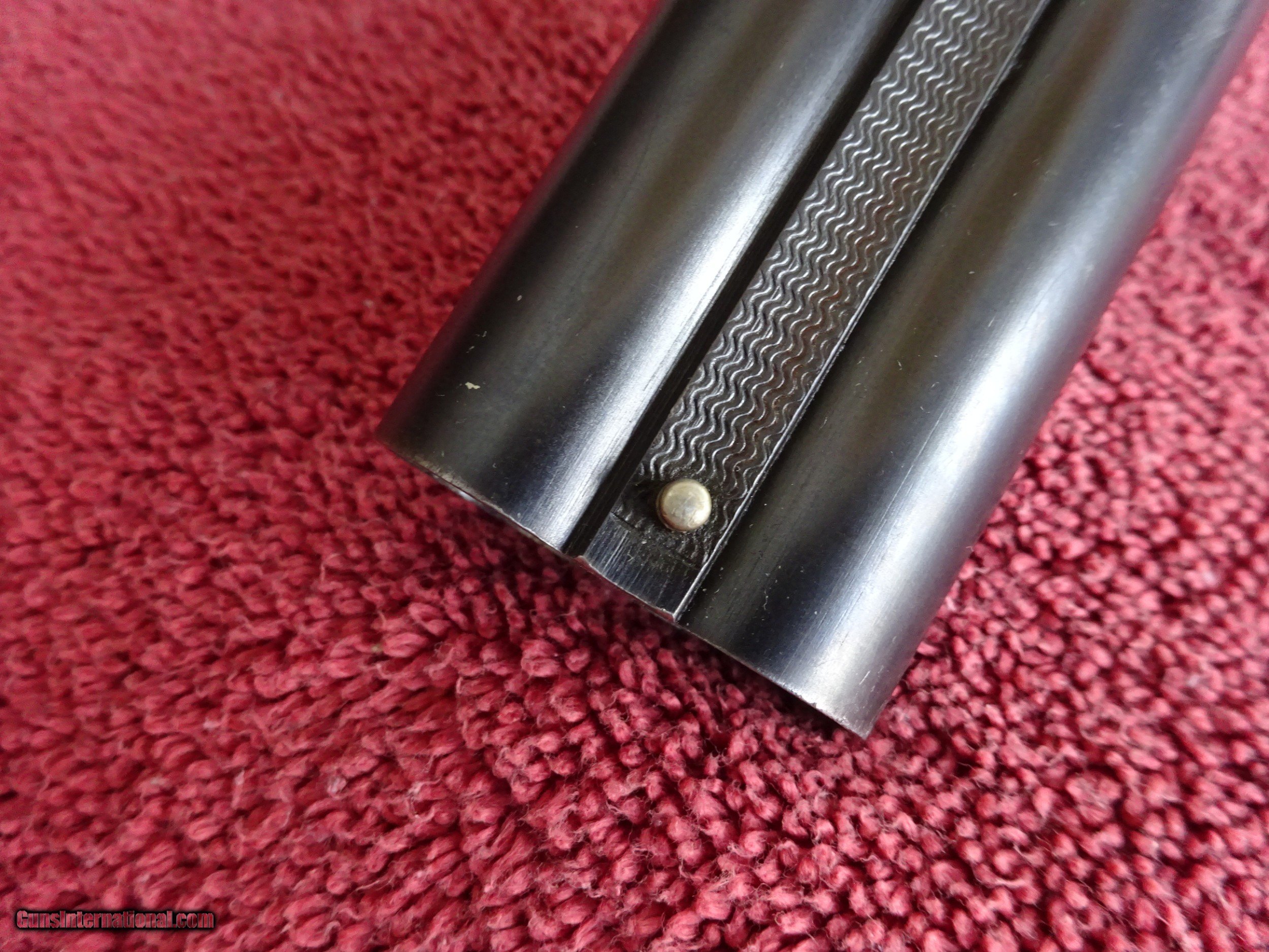 Description: PARKER VHE GRADE 12 GAUGE. 28" VULCAN STEEL BARRELS, IMP. MODIFIED (.025) AND FULL (.030), EXCELLENT BLUE, MIRROR BRIGHT BORES, AUTOMATIC EJECTORS, SINGLE SIGHT, BARRELS RING NICELY, 2 3/4" CHAMBERS. NUMBER 1 1/2 FRAME, EXCELLENT BOLD VIVID CASE COLOR, EVEN THE FLOOR PLATE IS COVERED, EXCELLENT SCREWS, TOP LEVER TO THE FAR RIGHT, TIGHT ON FACE. PISTOL GRIP STOCK, SPLINTER FOREARM, EXCEPTIONALLY NICE WOOD WITH SOME FIDDLEBACK FIGURE, ATTRACTIVE COLOR, EXCELLENT FINISH AND CHECKERING, ORIGINAL GRIP CAP AND EARLY PACHMAYR COMPETITION BLACK PAD. GREAT DIMENSIONS, 1 1/2" X 2 1/2" X 14 1/4", 7 POUNDS EVEN. 100% ORIGINAL FINISH, NICE REMINGTON PARKER MADE IN 1936. $2350.00 + $50.00 Insured shipping to an FFL address. See all Pats gun listings on this site! We also have hundreds of pieces of ORIGINAL gun company advertising & memorabilia available for sale on our site SPORTINGCOLLECTIBLES. We have no reprints or reproductions. Email for more information. SOLD Curio/Relic: Yes |