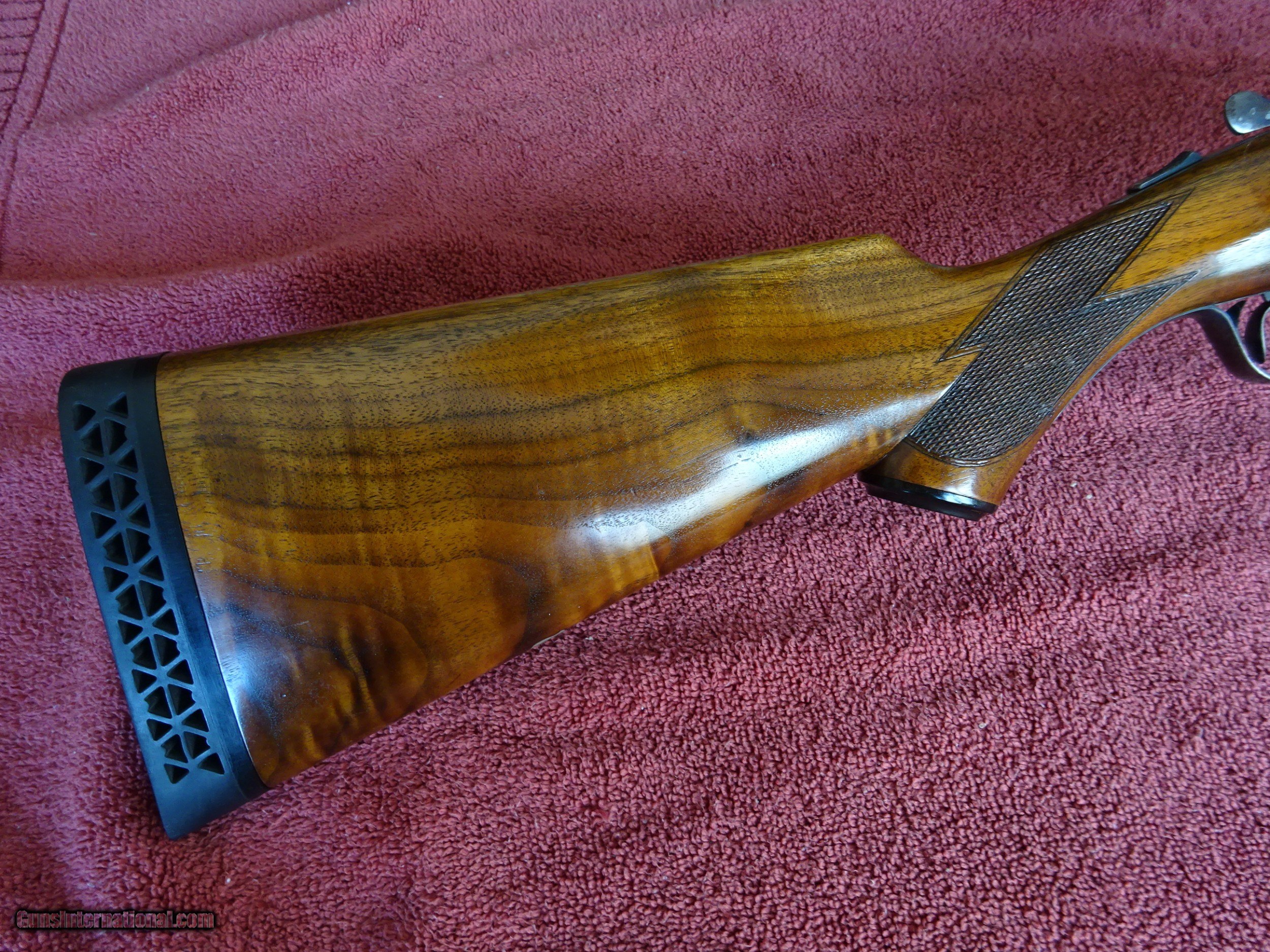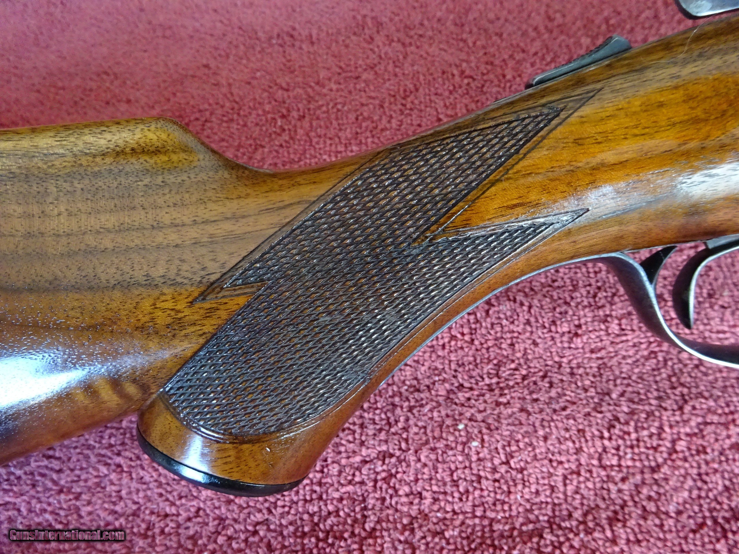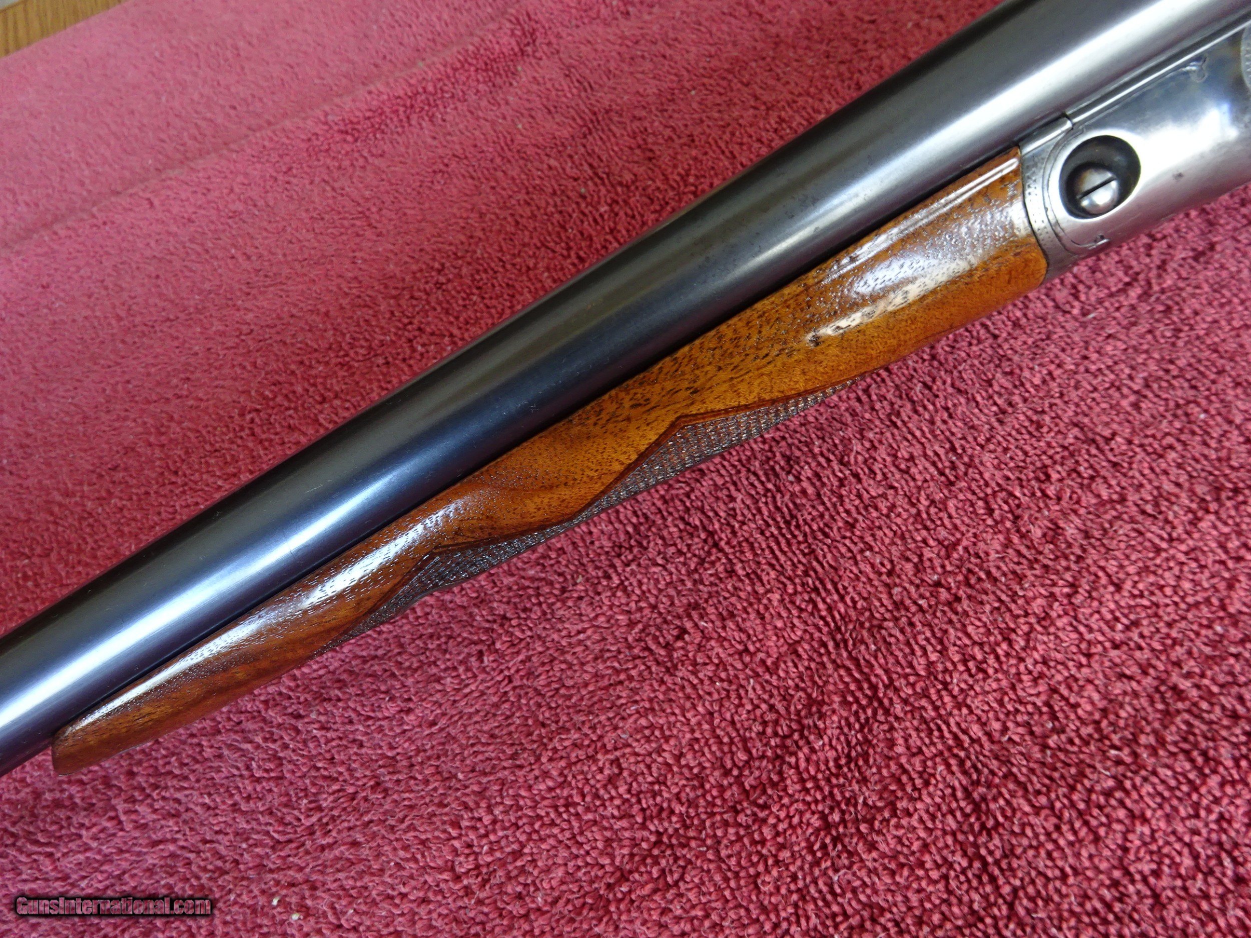 Description: PARKER VHE GRADE 12 GAUGE. 28" VULCAN STEEL BARRELS, IMP. MODIFIED (.025) AND FULL (.030), EXCELLENT BLUE, MIRROR BRIGHT BORES, AUTOMATIC EJECTORS, SINGLE SIGHT, BARRELS RING NICELY, 2 3/4" CHAMBERS. NUMBER 1 1/2 FRAME, EXCELLENT BOLD VIVID CASE COLOR, EVEN THE FLOOR PLATE IS COVERED, EXCELLENT SCREWS, TOP LEVER TO THE FAR RIGHT, TIGHT ON FACE. PISTOL GRIP STOCK, SPLINTER FOREARM, EXCEPTIONALLY NICE WOOD WITH SOME FIDDLEBACK FIGURE, ATTRACTIVE COLOR, EXCELLENT FINISH AND CHECKERING, ORIGINAL GRIP CAP AND EARLY PACHMAYR COMPETITION BLACK PAD. GREAT DIMENSIONS, 1 1/2" X 2 1/2" X 14 1/4", 7 POUNDS EVEN. 100% ORIGINAL FINISH, NICE REMINGTON PARKER MADE IN 1936. $2350.00 + $50.00 Insured shipping to an FFL address. See all Pats gun listings on this site! We also have hundreds of pieces of ORIGINAL gun company advertising & memorabilia available for sale on our site SPORTINGCOLLECTIBLES. We have no reprints or reproductions. Email for more information. SOLD Curio/Relic: Yes |