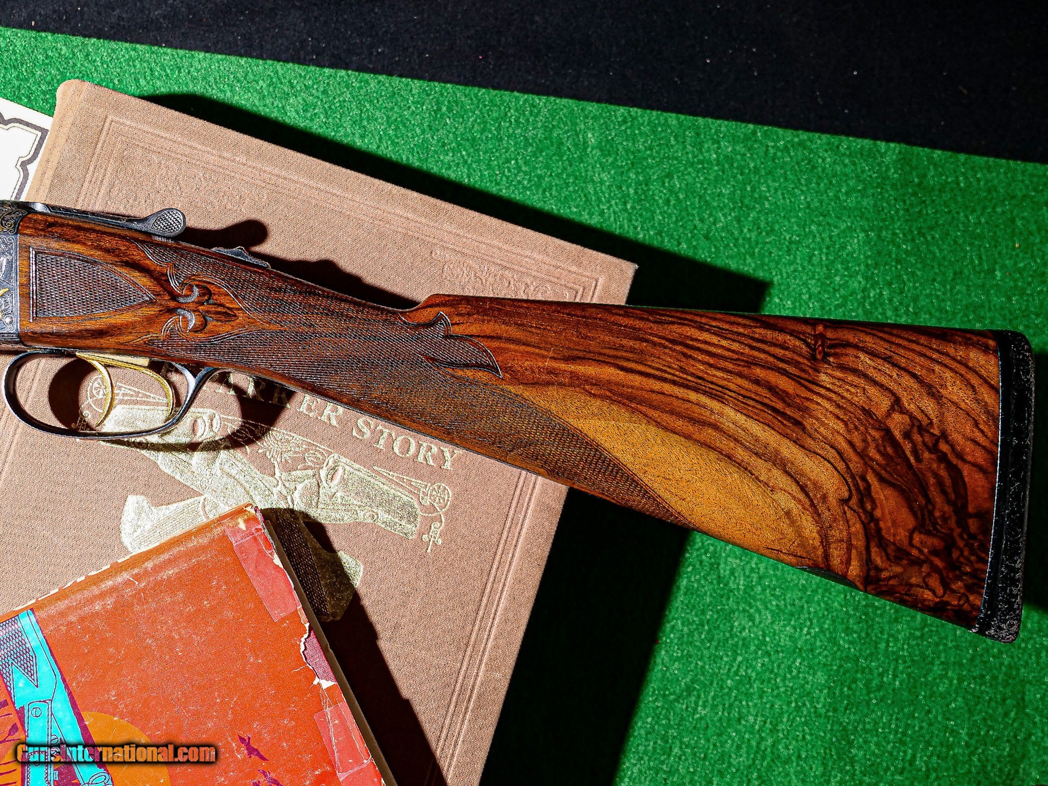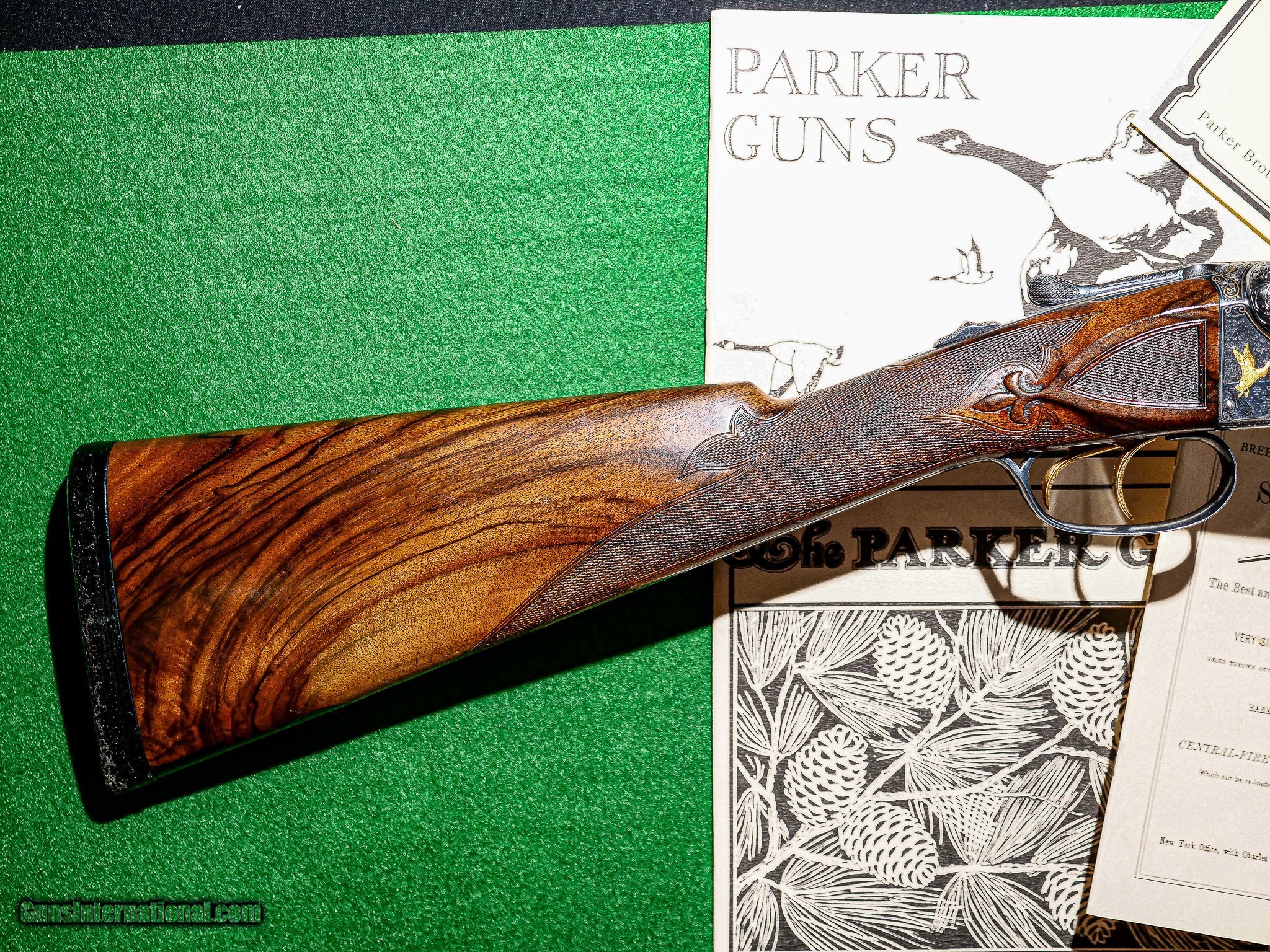 Description: Parker - VHE Grade, SxS, Engraved By Ogawa, 20ga. 26" Barrels Choked IC/M. This gun was engraved by master engraver Ogawa , it is engraved beyond A1 special, it’s checkered like a A1 special, straight grip, leather pad, Raise Flour De Le stock and checkering pattern, double trigger gold, auto ejector, beavertail. The gun is covered with very high quality gold inlays of Setters, quail, gold inlay scroll, dog head, and ducks. The panels have game scenes with very high quality engraved scrolls, and then gold inlay scrolls.. both white and gold color. This gun has a gold stock oval, two ivory bead sights, this is very very high quality work.. The cost of the engraving surprised the asking price for the gun. All finished in a blue accented background with perfect screws and barrels. A much higher grade gun than most upgrades that are ever offered for sale. This is master level work the pictures speak for themselves. The wood is exhibition English walnut. Inv: 74538 6 lbs. 5 oz. 13 9/16" x 1 ½" x 2 ¼" $21,995.00 The largest, most diverse, high-grade shotgun and firearms inventory in history. There is no one even close and a service department to back up everything we sell with our unparalleled warranty to support our customers exclusively. If someone tells you they have a larger inventory, just look for yourself. Price: $21,995.00 Contact Seller |