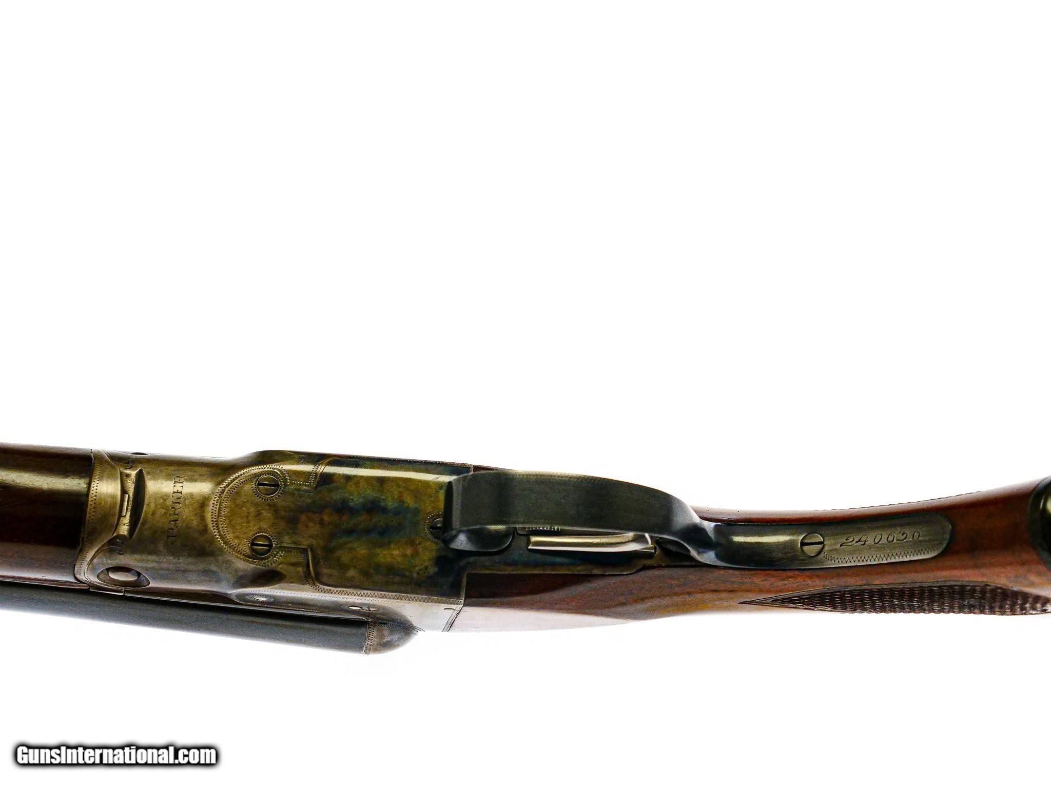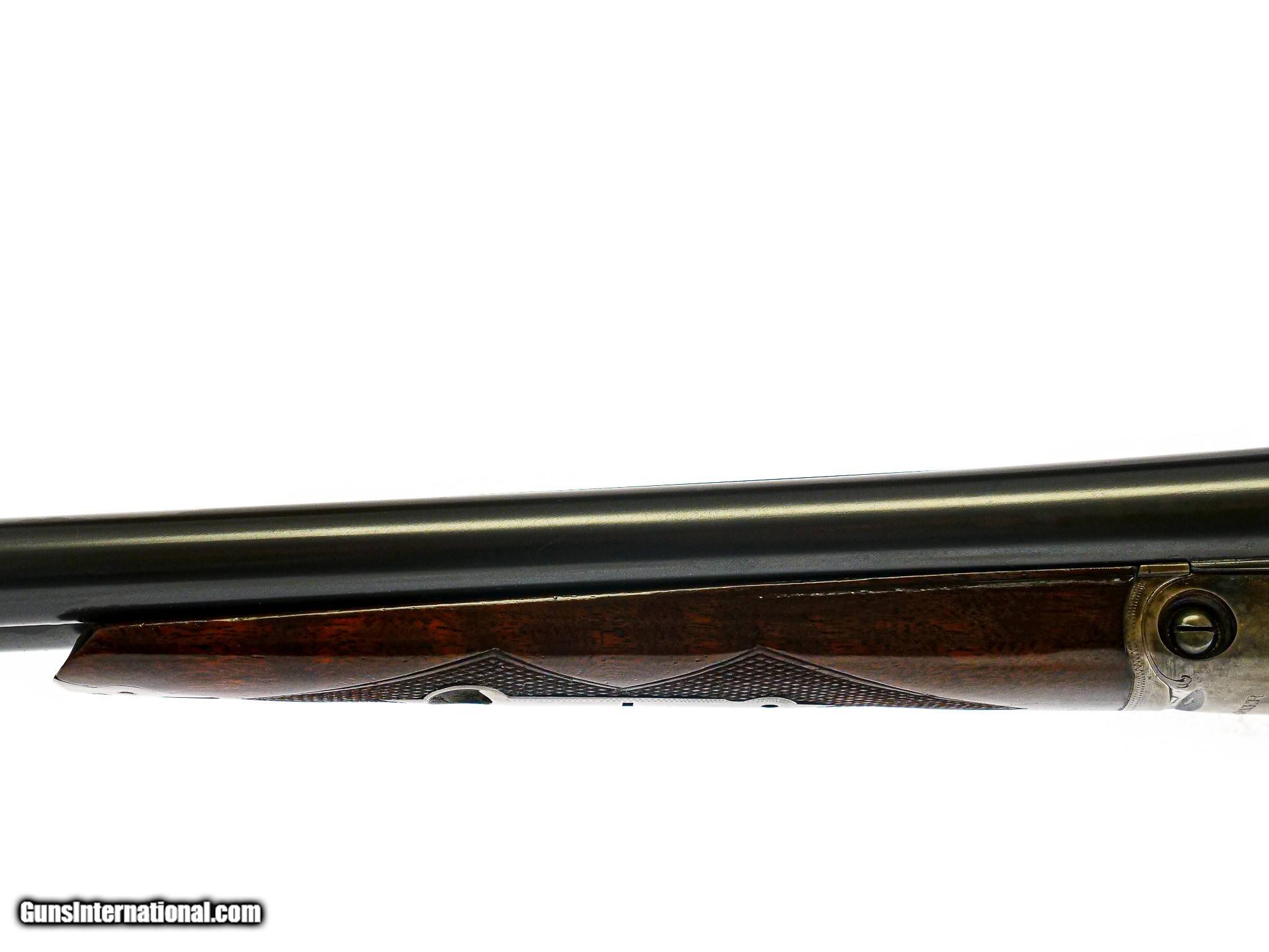 Description: Parker - VHE Grade, SxS, RARE ½ Frame, Late Production, 12ga. 28" Barrels. 2 ¾” Chambers, DHBP, pistol grip, Parker Single selective trigger, auto ejector, splinter forend, 98% Blue, wood finish, and checkering, perfect screws, a majority of the original case color, very rare 1/2 frame gun that is outstanding! Inv: 70176 7 lbs. 1 oz. 14 ½" x 1 ½" x 2 5/8" $8,995.00 SOLD |
