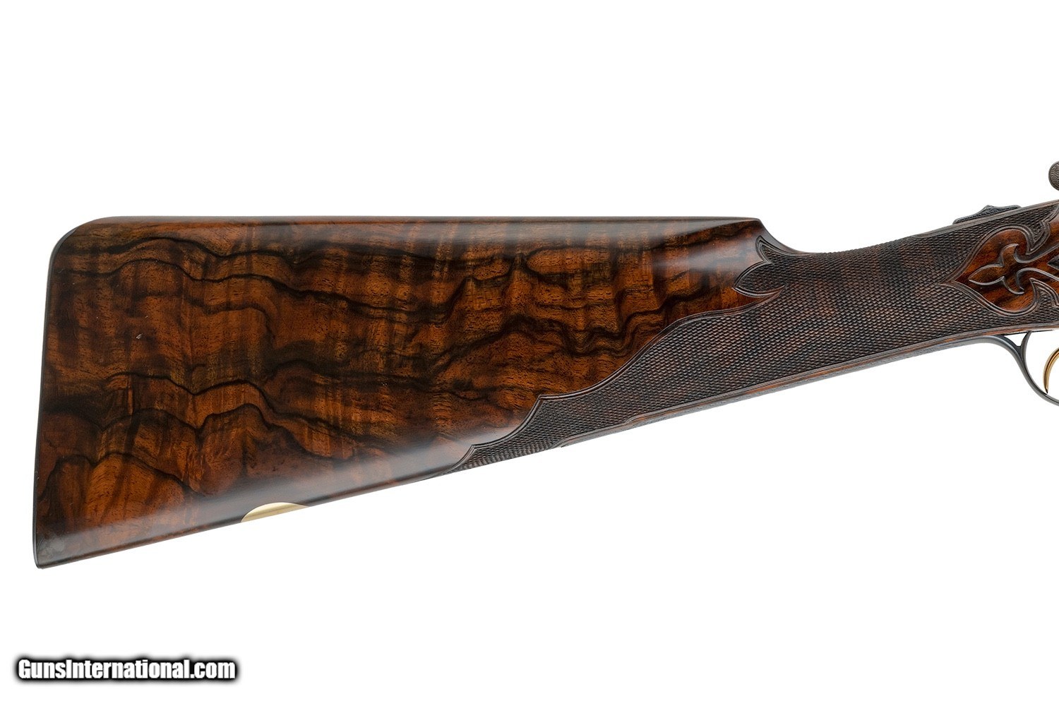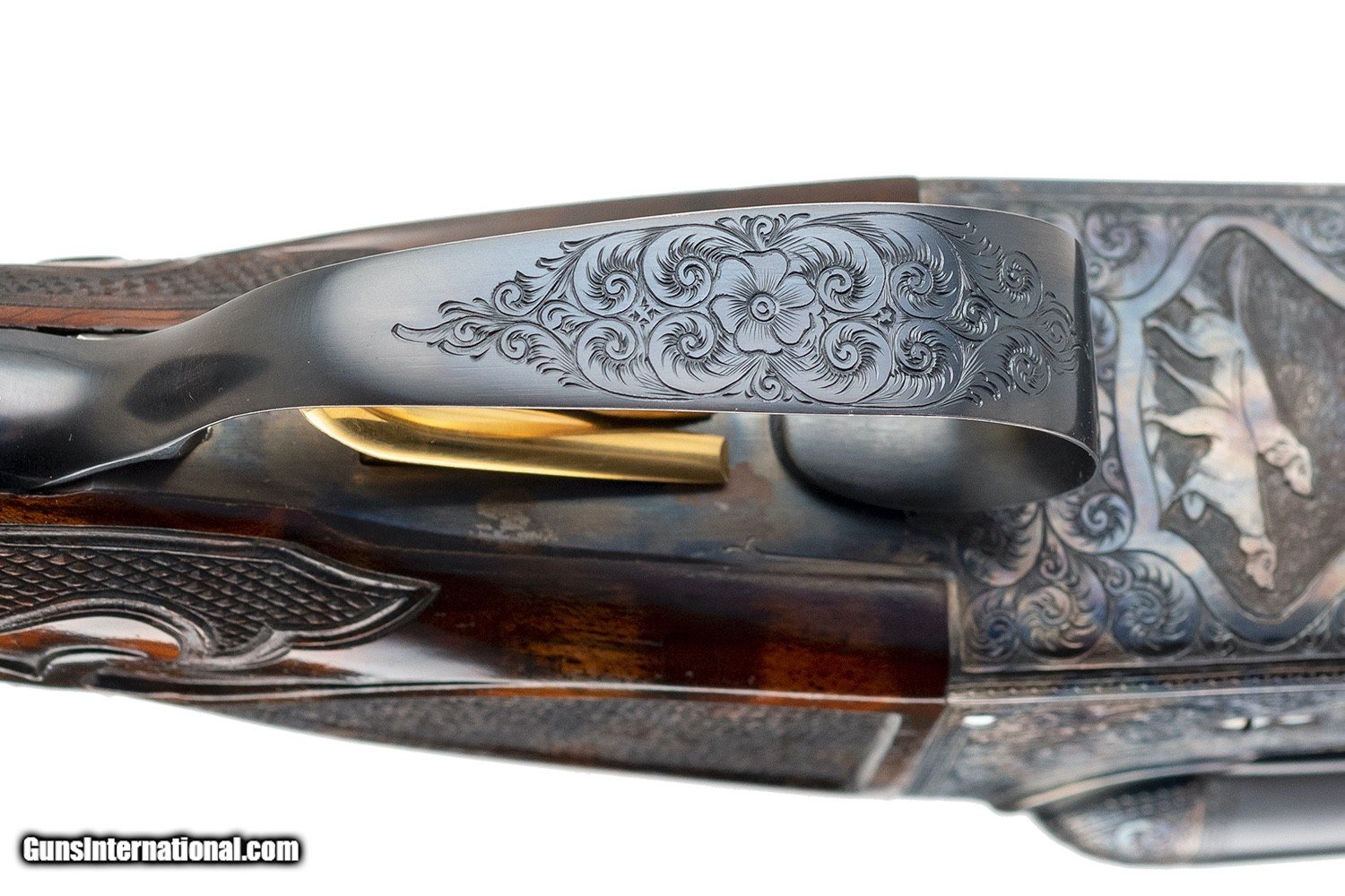 Description: O FRAME SN# 177247 30" SOLID RIB BARRELS (.032 AND .034 CONSTRICTIONS) 2 3/4" CHAMBERS DOUBLE TRIGGERS EJECTORS SPLINTER FOREARM ENGLISH GRIP SKELETON BUTT GREAT CONDITION WITH LIGHT HANDLING MARKS IN WOOD TOP LEVER IS A LITTLE LOOSE WHEN GUN IS CLOSED 6LBS 7 OZ 2 3/8" DAH 1 3/8" DAC 14 1/2" LOP SOLD |