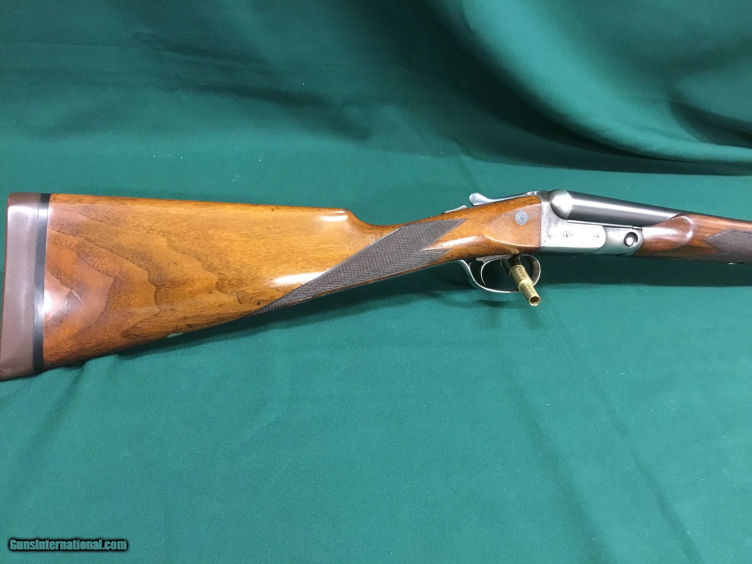 Description: Parker VHE 12 ga. 1&1/2 frame,26” skeet and skeet,beaver tail fore end,English stock,SST,AE,pad has been added,stock reinforcement may or may not be factory I’ve been told both ways, either way it is a professional job.gun has some honest hunting wear but remains a very nice Parker that shoots and functions perfectly,email if you have questions,thanks Jim SOLD |