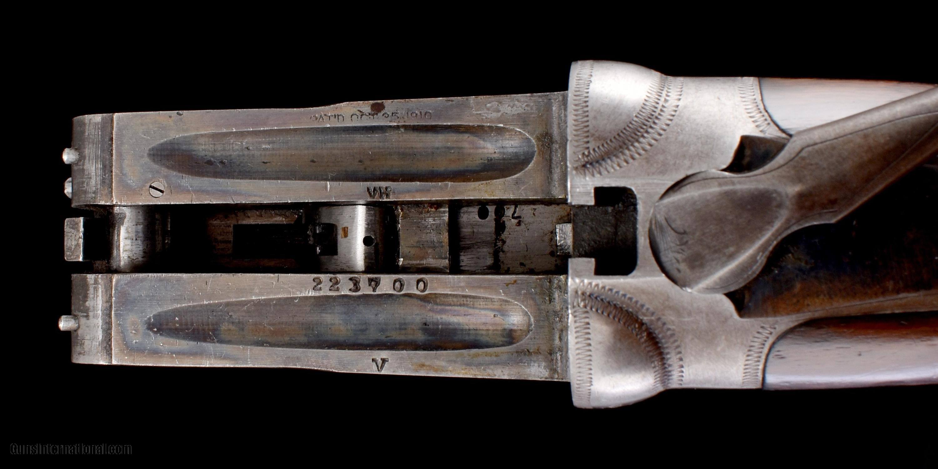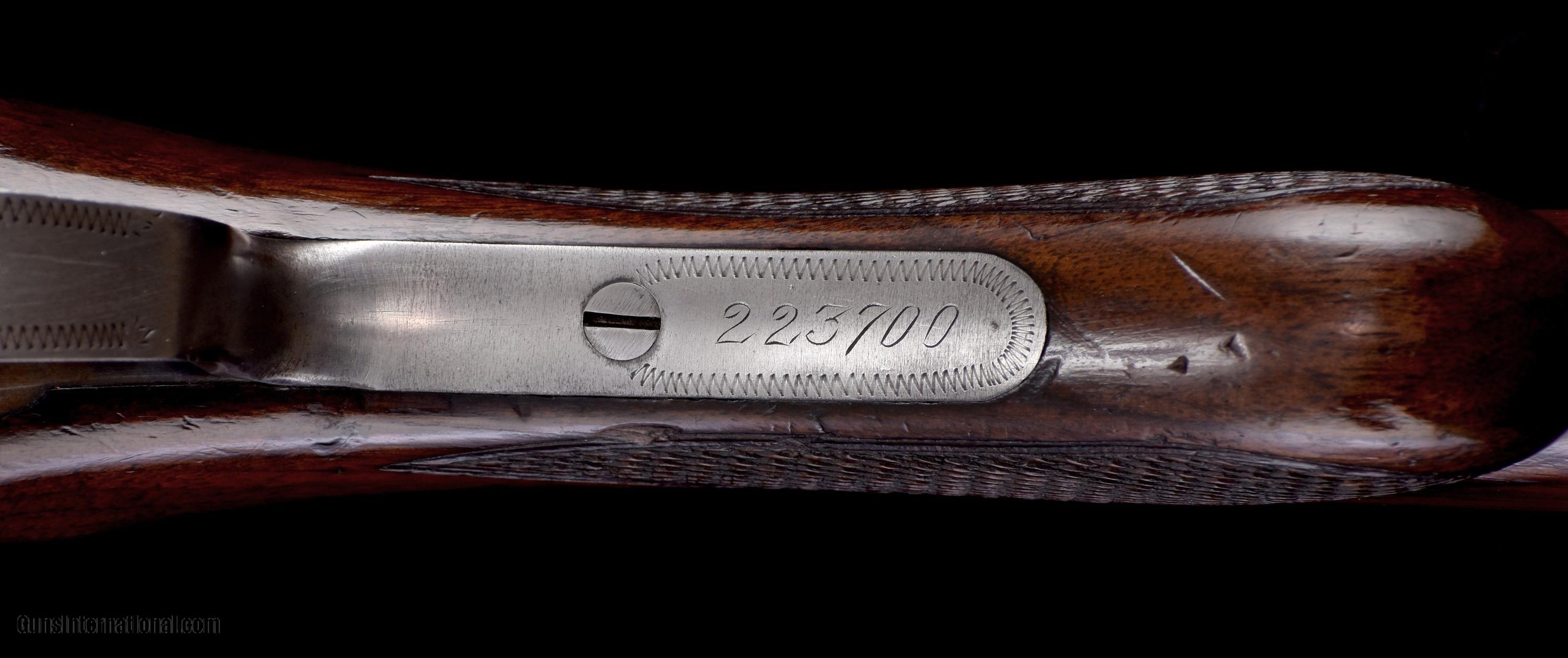 Description: Beautiful early production Parker .410 bore built on a "000" Frame with 26" Vulcan Steel barrels. Splinter forend, double triggers, auto ejectors, and auto safety. Built with capped pistol grip walnut buttstock and terminates with its original DHBP. Gun remains in excellent original condition as field used. Stocks with original finishes and minor handling marks and hunting bumps. Frame with traces of original case colors. Blue is excellent. Bores are bright and shiny. Mechanics are perfect. This rare Parker .410 is priced at $24,900 plus shipping to your FFL. Please dont hesitate to contact me with any questions or reasonable offers at (704) 280-2382 or via PM on this site. Curio/Relic: Yes Shotgun Gauge: .410 Gauge Manufacturer: Parker Model: VHE Serial Number: 223700 Barrel Length: 26 Chambers: 2-1/2 Ejectors: Yes Condition: Excellent Metal Condition: Excellent Wood Condition: Very good Bore Condition: Bright and shiny Barrel Type: Vulcan Steel Triggers: Double Triggers Splinter Original Stock Comb: 1-1/2 Stock Heel: 2-3/4 Fore End: Splinter forend Butt Pad: Original DHBP LOP: 14-1/2 Weight: 5lbs. 10oz. Choke Left: .014 Choke Right: .012 Price: $24,900.00 Shipping: $55.00 Buy Now Contact Seller |