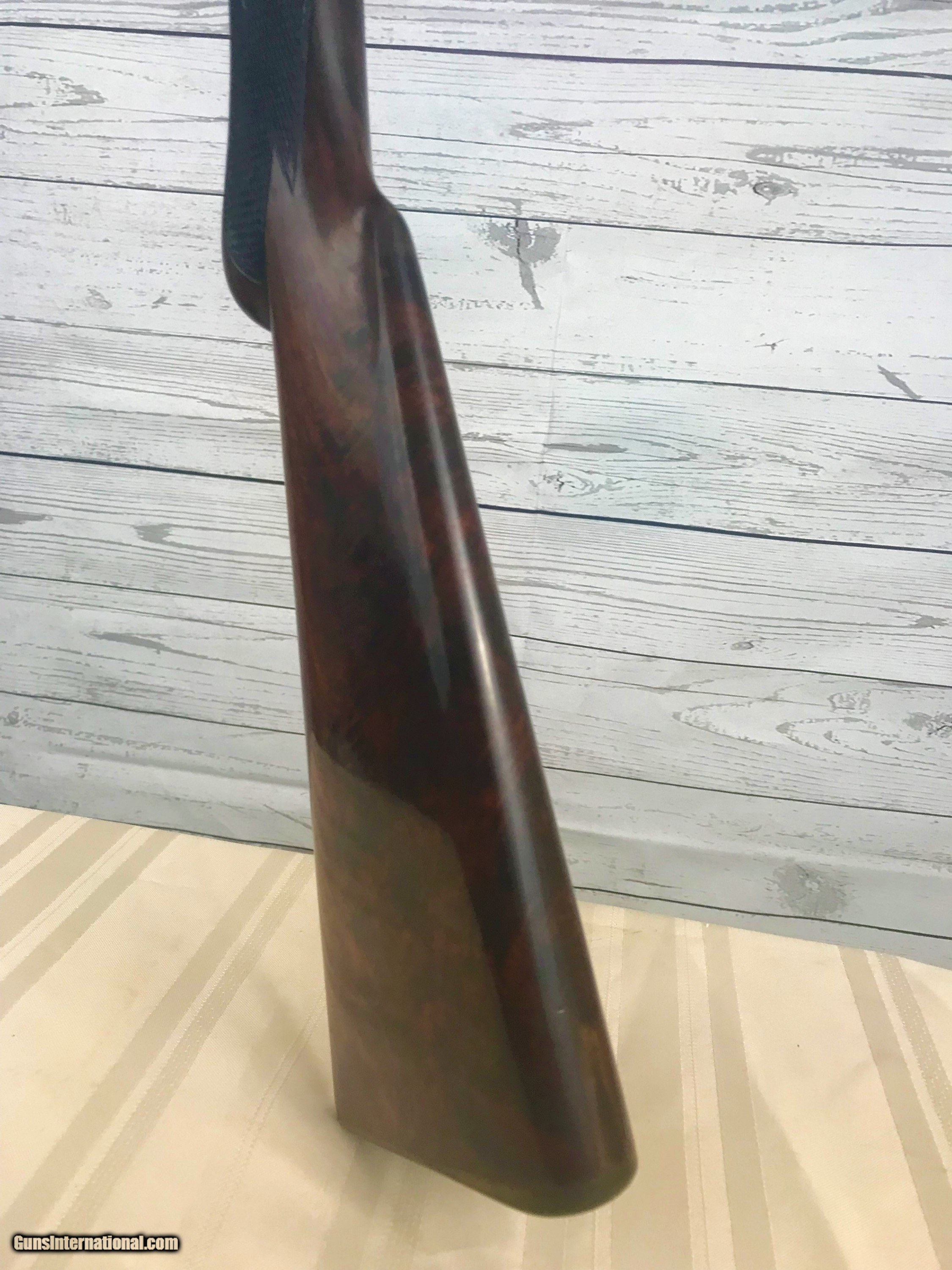 Description: REMINGTON PARKER 410 VHE 26" MOD-FULL FABULOUS ORIGINAL GUN --- 000 FRAME -- THIS GUN HAS IT ALL -- UNRESTORED LATE REMINGTON GUN WITH INCREDIBLE WOOD FIGURE THAT WAS COMMON ON THE LATER REMINGTON GUNS-- LONG ORIGINAL LOP AT 14 1/2 -- MOST OF ITS ORIGINAL COLOR IS PRESENT THAT HAS DARKENED BUT VIBRANT IN AREAS -- DAMASCENING PRESENT ON BREECH FACE-- EXCELLENT ORIGINAL BLUE -- LIGHT -- THIS IS A VERY LIVELY GUN THAT WEIGHS 5LBS 15OZ AND POINTS AND HANDLES LIKE A DREAM -- CHOKED MOD/FULL -- 26" EJECTOR BARRELS -- BALL GRIP -- ORIGINAL SINGLE LINE DHBP -- WHAT A GEM AND READY FOR ALBANY OR THOMASVILLE -- A REAL QUAIL KILLER --- STRAIGHT OUT OF WEST TEXAS !!!!!!!!! 14 1/2 1 1/2 X 2 1/2 DHBP SOLD Manufacturer: Parker Model: VhE Caliber Info: 410 Chambers: 3 Ejectors: yes Condition: excellent Barrels: 26 Triggers: 2 Stock Comb: 1 1//2 Stock Heel: 2 1/2 Butt Pad: DHBP LOP: 14 1/2 Rib: solid Weight: 5lbs 15 oz Sights: 1 |
