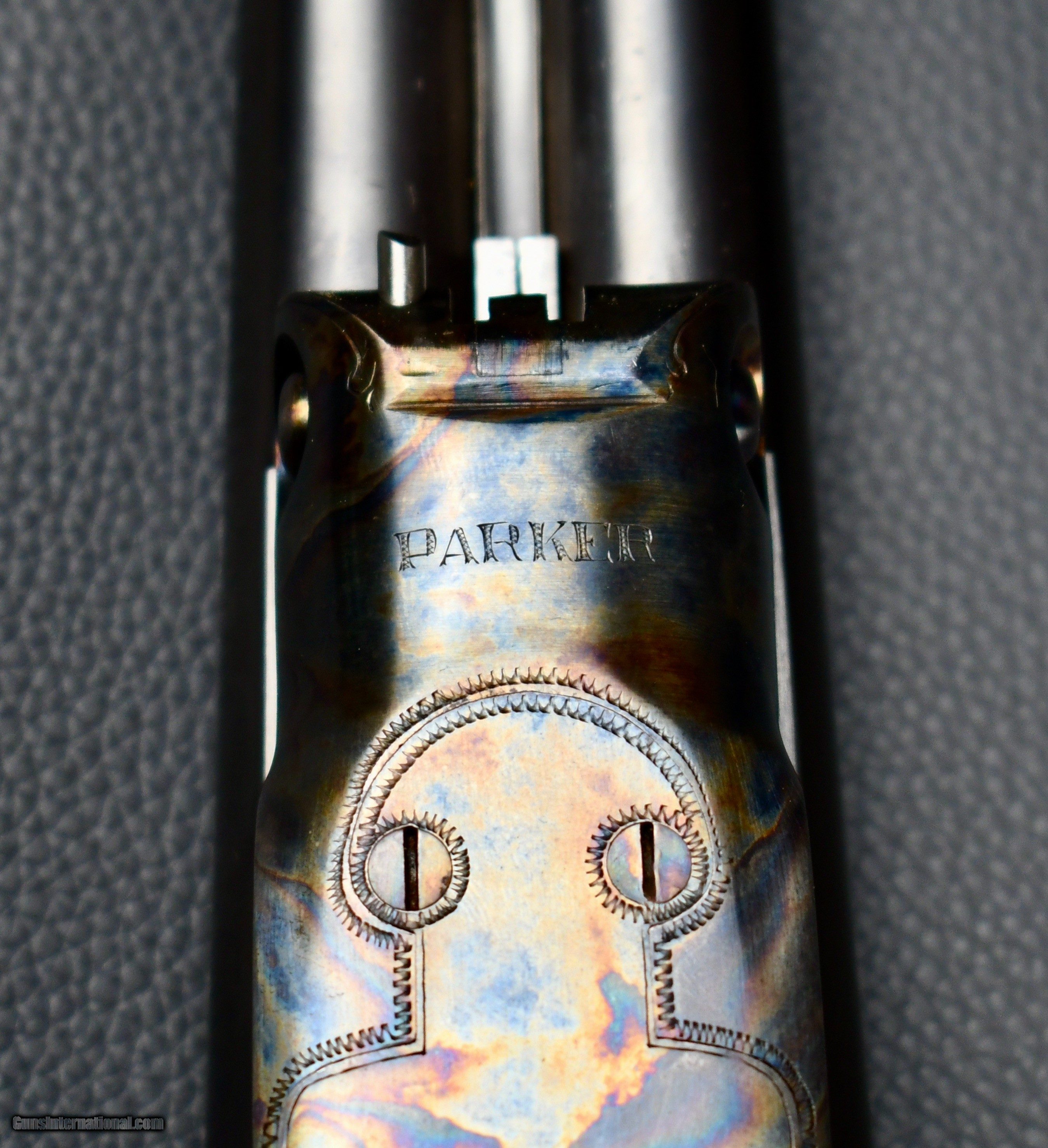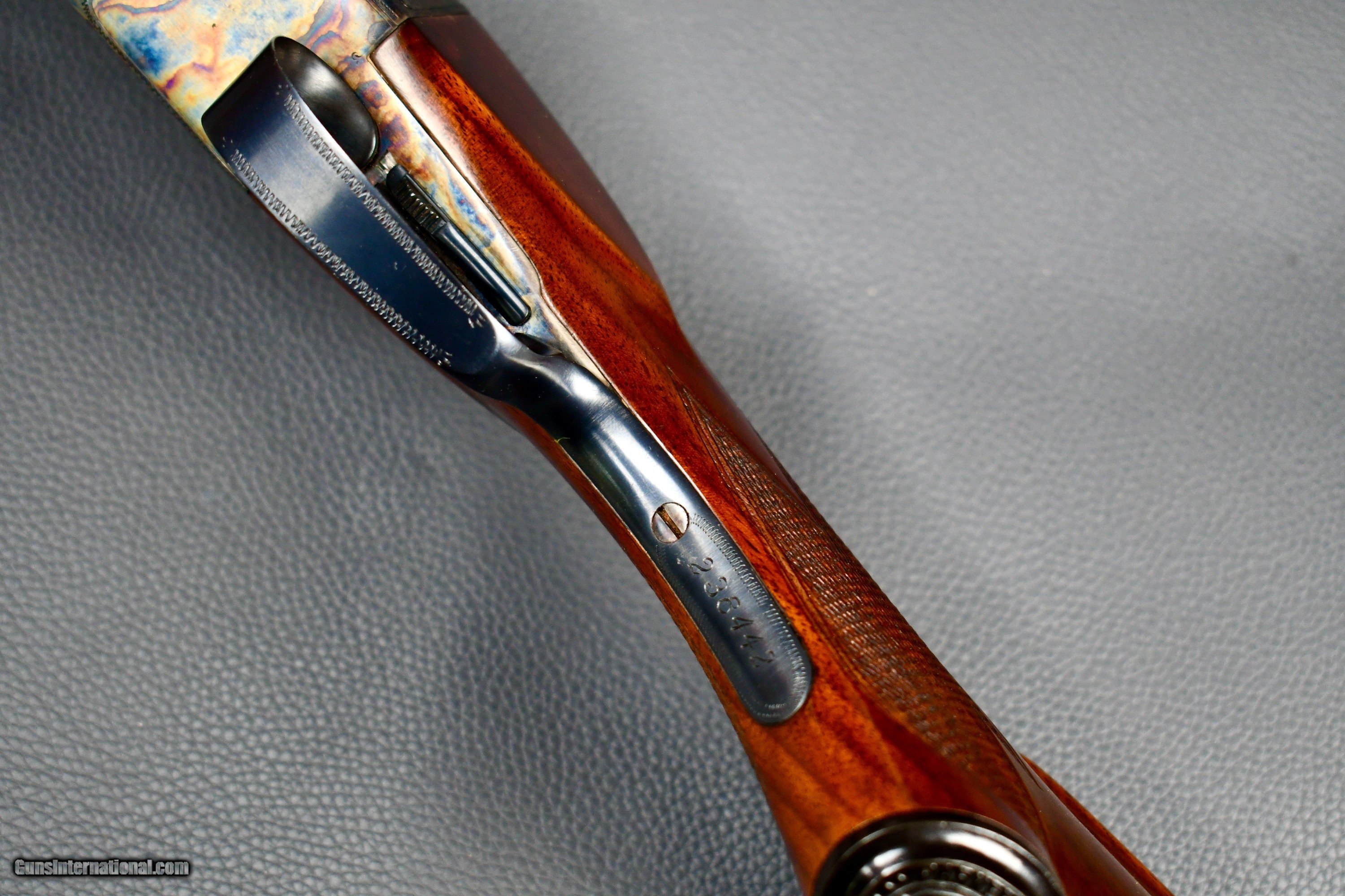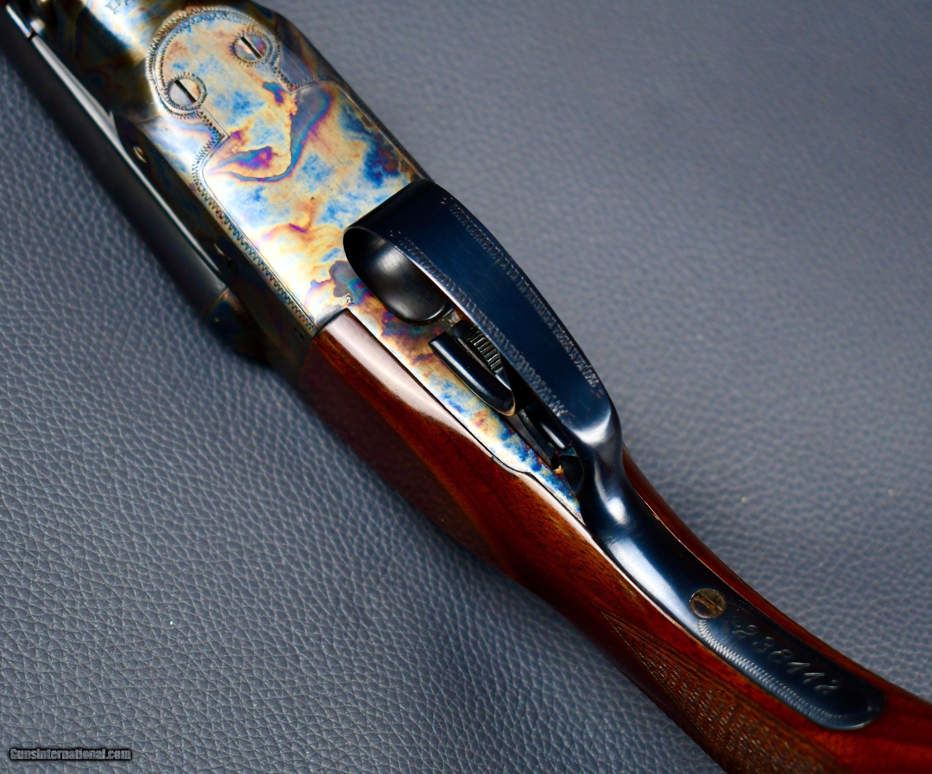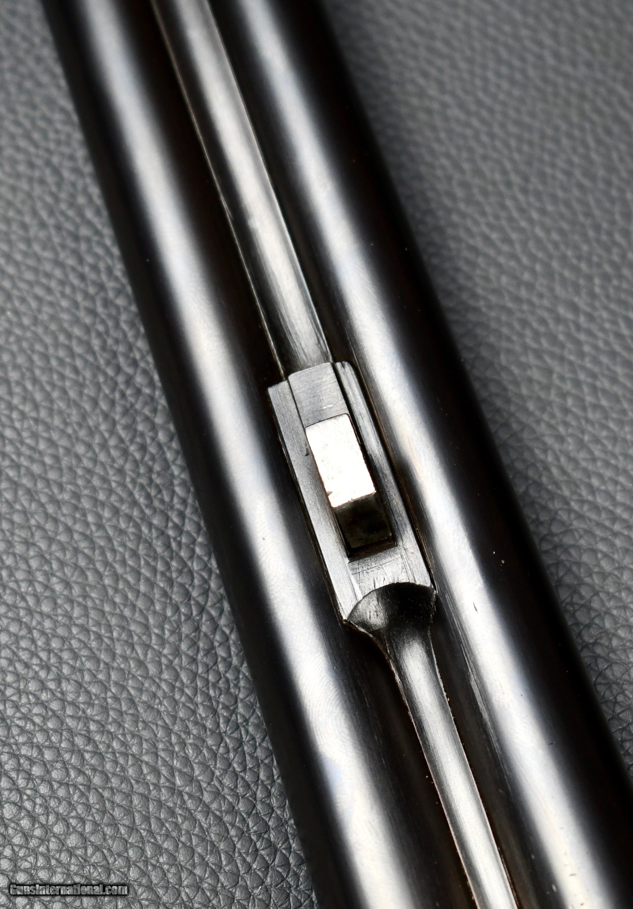 Description: A FACTORY CONFIGURED VHE REMINGTON PARKER "SKEET" 20GA -- ALL SKEET GUNS WERE REVERSED CHOKED BY PARKER -- THIS GUN CARRIES ITS ORIGINAL CHOKES AS ORDERED AT MOD/IC -- REINFORCED BARREL LOOP AND LUG -- RAISED FOREND BOSS -- DOUBLE WHITE BEADS -- 26" BARRELS -- FACTORY SINGLE SELECTIVE TRIGGER -- PISTOL GRIP -- SPLINTER FOREND AND A NON FINISHED BEAVERTAIL FOREND WITH DRAW BOLT -- FOREND IRON IS DRILLED AND TAPPED FOR THE THRU BOLT --SUPER NICE DIMENSIONS -- GUN APPEARS AS NEW AND HAS BEEN REFINISHED AND STOCKED BY LARRY DELGRECO AND SONS AS IT CARRIES EARLY REMINGTON CYANIDE COLORS -- A SUPER RARE IN THE BOOK ALL OPTIONED VHE 20GA THAT WOULD MAKE A GREAT SHOOTER OR HAVE IT RECOLORED AND FOREND FINISHED BY TURNBULL TO PLACE IN THE SAFE...... SELLING IT FOR THE PRICE OF A BANGER 20GA. THIS GUN IS LISTED IN THE SERIALIZATION BOOK AS A #14 OPTION SKEET GUN...... HARD TO FIND AT THIS PRICE AND TIGHT AS NEW -- AT GREENES, WE LITERALLY HAVE ACCESS TO HUNDREDS OF SMALLBORE AMERICAN AND EUROPEAN COLLECTABLE LONGARMS -- FEEL FREE TO CALL WITH YOUR NEEDS -- WHY FIGHT THE EXPENSIVE AND AGGRAVATING CROWDS FOR THAT ONE IN FIFTY CHANCE. WE HAVE THEM AND YOU ARE NOT GOING TO PAY A 20% BUYERS PREMIUM. STOP HITTING THE "BID NOW" BUTTON, PICK UP THE PHONE AND CALL ME! Factory Parker Brothers skeet and field guns..... We have them. Factory Graded Winchester 21's....... Not a problem English and European O/u and SXS's Rare and hard to find Colts and S&W hand guns I have been providing hard to find smallbore American and English long guns to collectors and dealers since 1997. Give us a try call , text or email. you have nothing to lose except 20% of your money! SOLD Shotgun Gauge: 20 Gauge Manufacturer: REMINGTON PARKER Model: VHE Serial Number: 238442 Barrel Length: 26 Chambers: 2 3/4 Ejectors: YES Condition: EXCELLENT AS NEW Metal Condition: EXCELLENT AS NEW Wood Condition: EXCELLENT AS NEW Bore Condition: EXCELLENT Action: SXS Triggers: SINGLE SELECTIVE Stock: FULL PISTOL Stock Comb: 1 1/2 Stock Heel: 2 1/4 Butt Pad: FACTORY PLATE LOP: 14 7/8 Rib: SOLID MATT Finish: CASE COLOR / BLUE Weight: 6lbs 8.5oz Sights: 2 Choke Left: IC Choke Right: MOD Engraving: YES Case: NO |